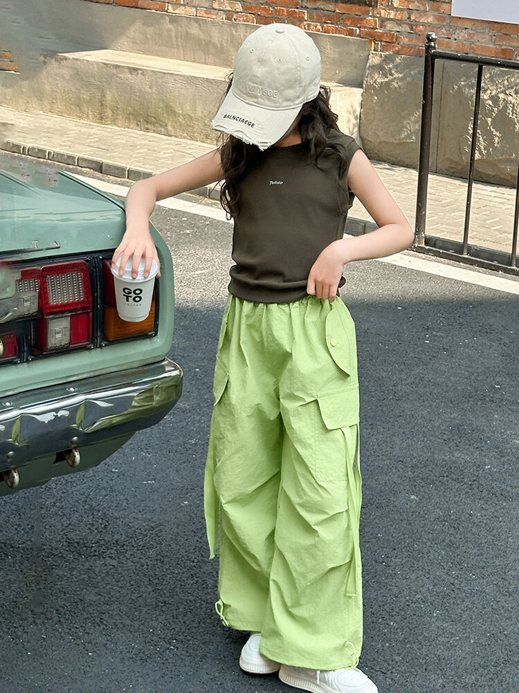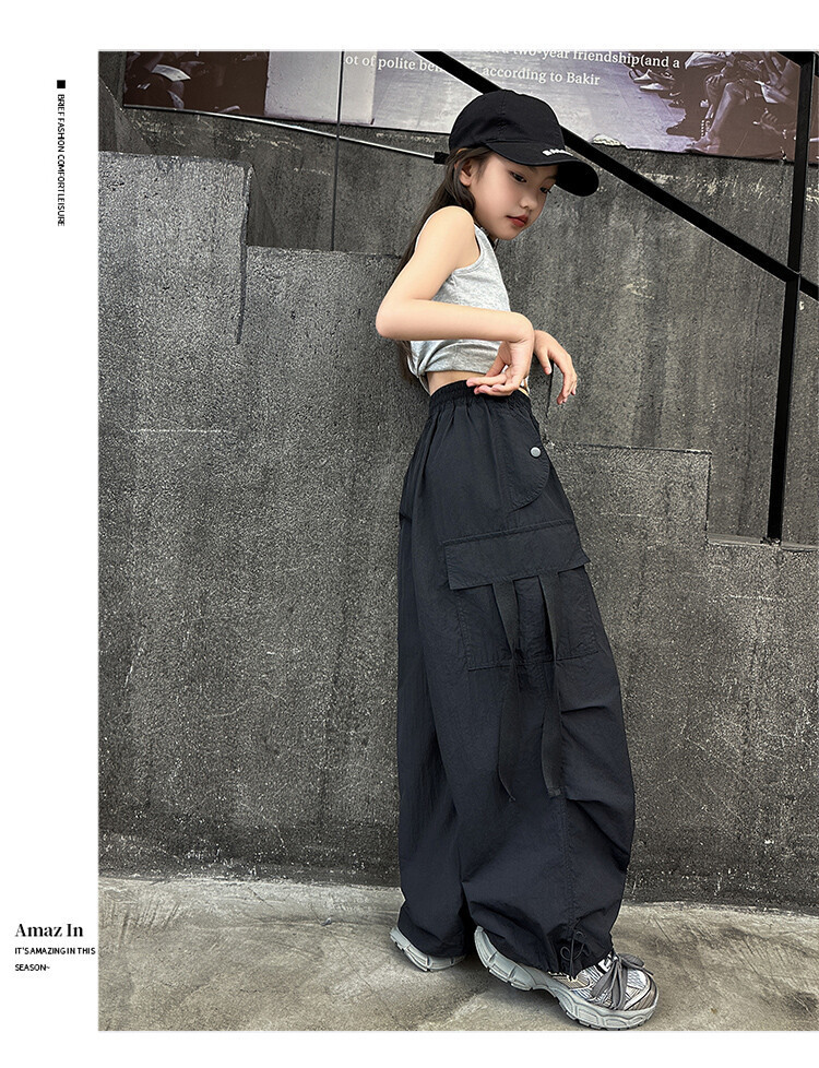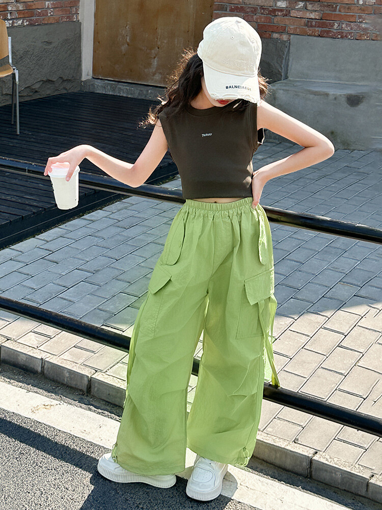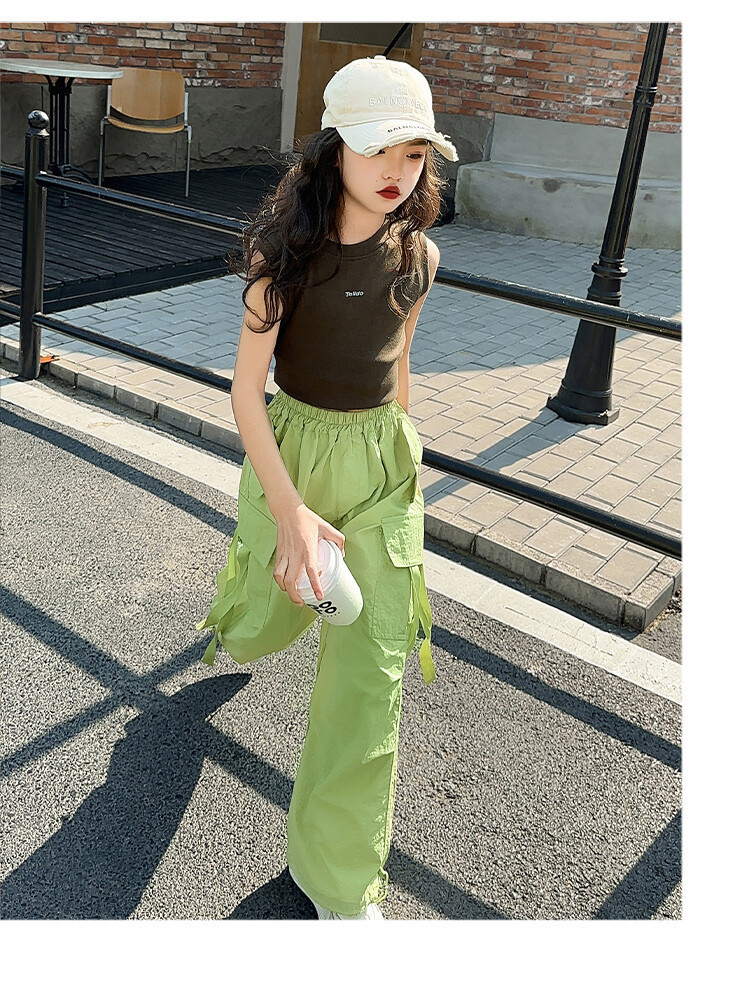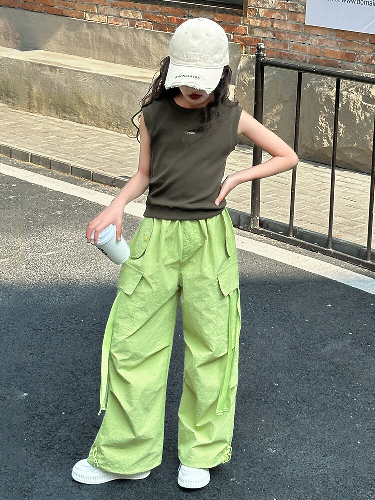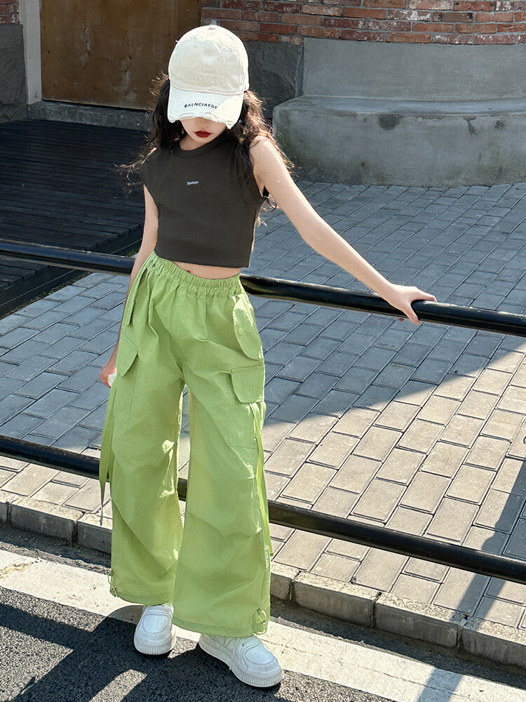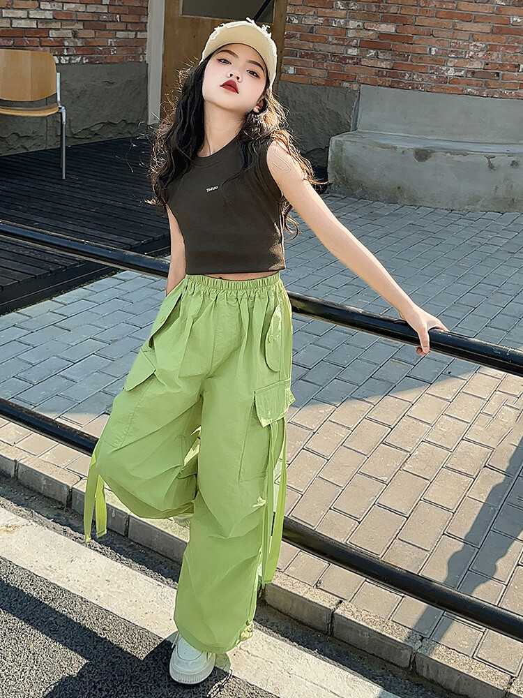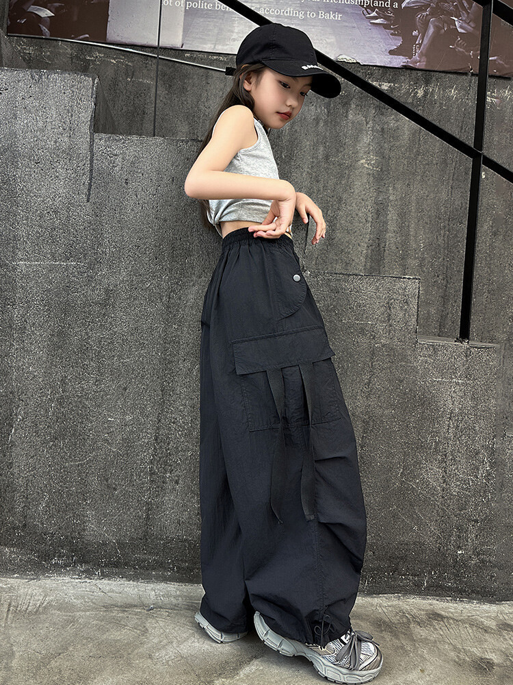 소녀 크로크웨어 바지 조끼 세트 여름 어린이 스트리트 댄스 스포츠웨어 트렌디 쿨 패션 키즈 재즈 댄스 투피스 세트