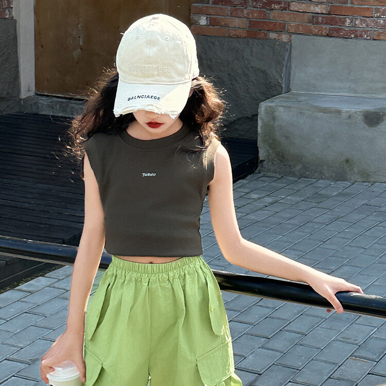 소녀 크로크웨어 바지 조끼 세트 여름 어린이 스트리트 댄스 스포츠웨어 트렌디 쿨 패션 키즈 재즈 댄스 투피스 세트스토어 가기