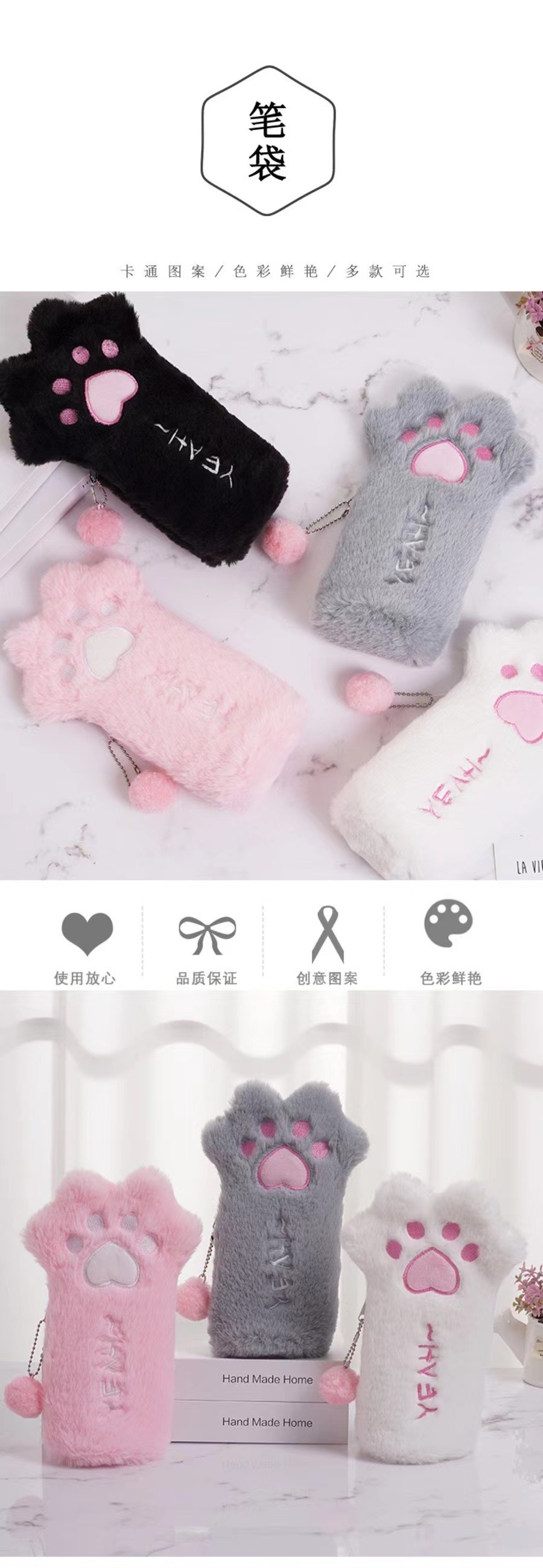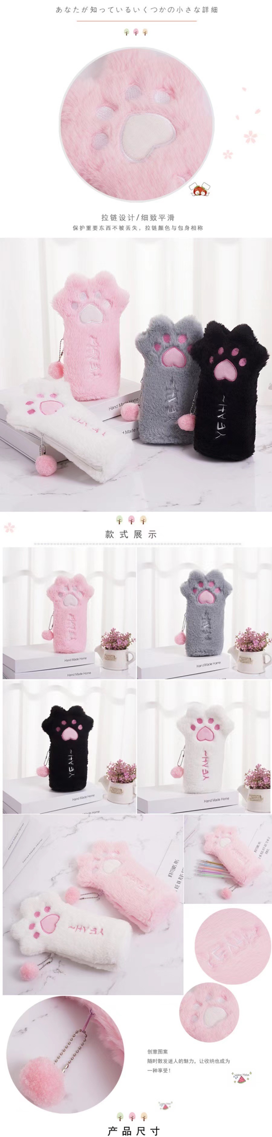 귀여운 봉제 연필 케이스 만화 고양이의 발톱 대용량 연필 케이스 심플 인 중학교 학생 문구 보관 연필 케이스스토어 가기