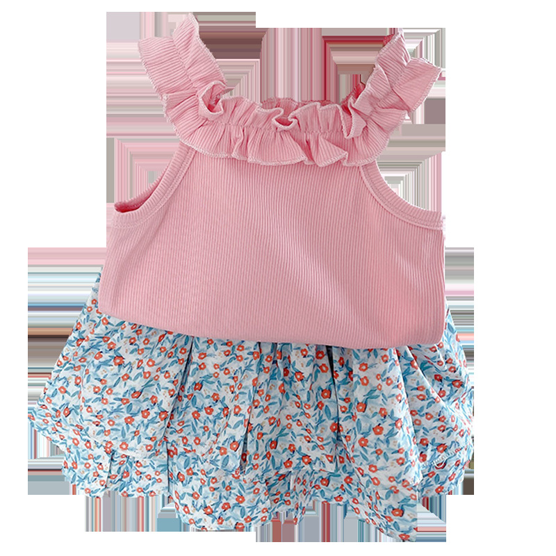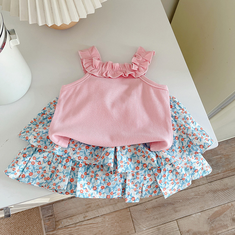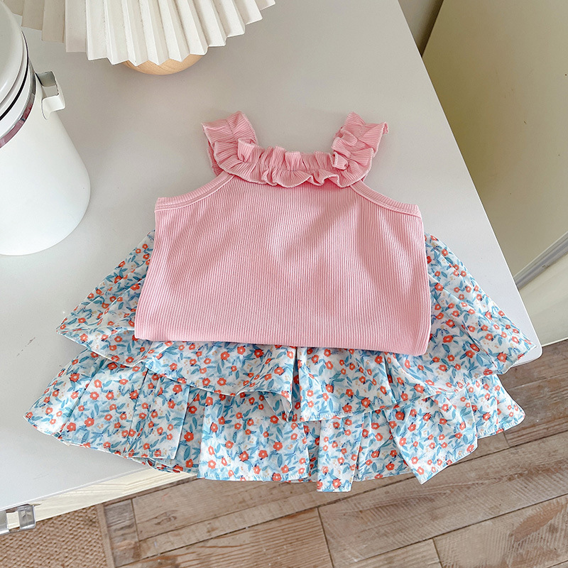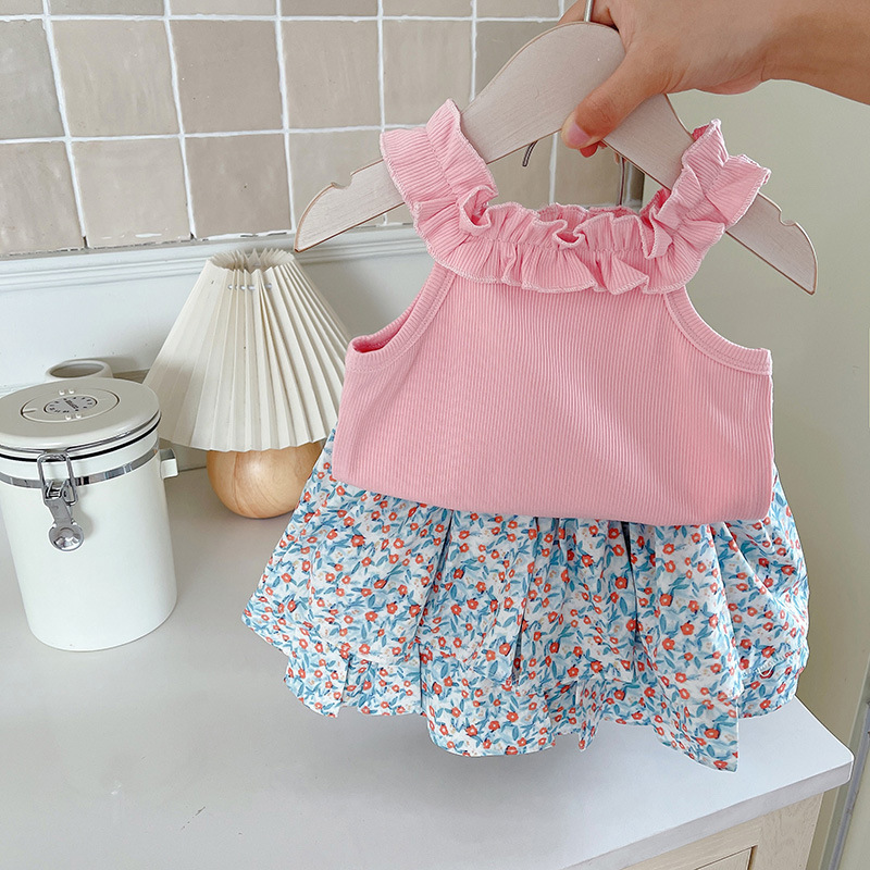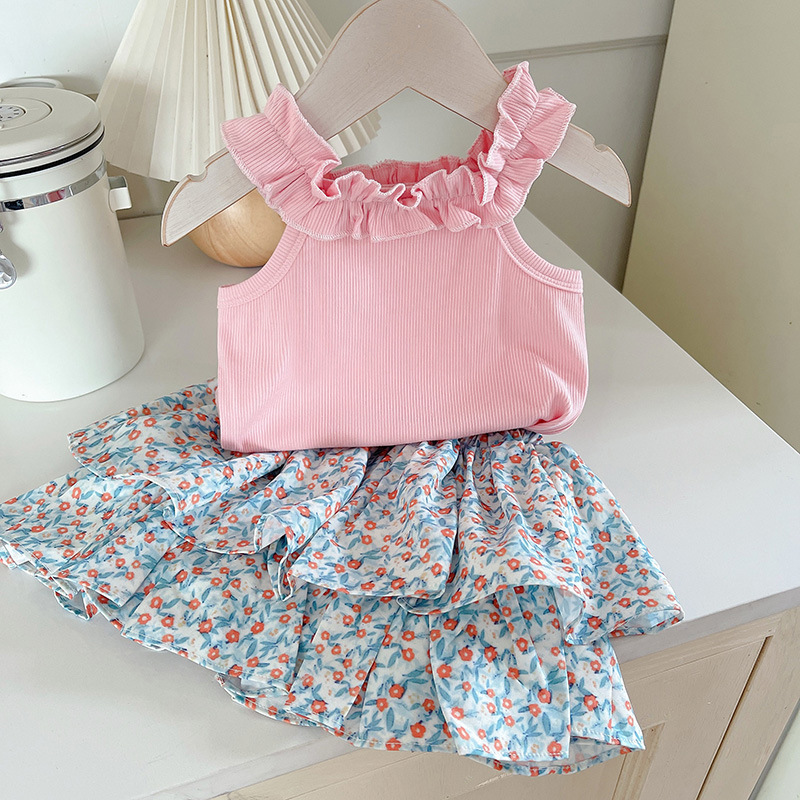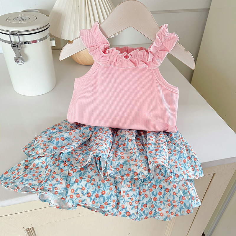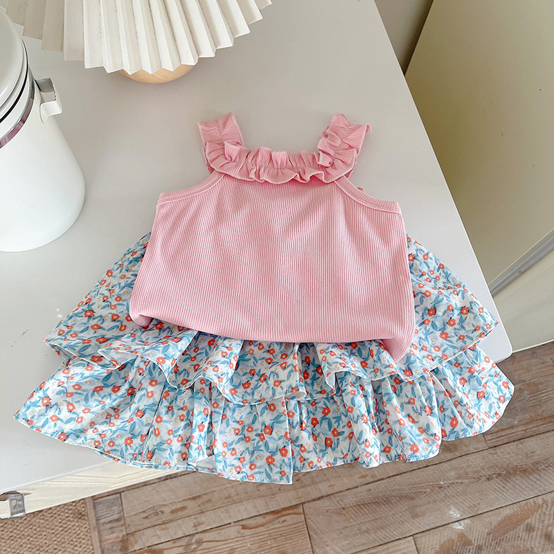 여자 세트 2024 여름 새 스타일 여성의 보물 한국 스타일 여름 캐주얼 레이스 슬링 꽃 문화 세트