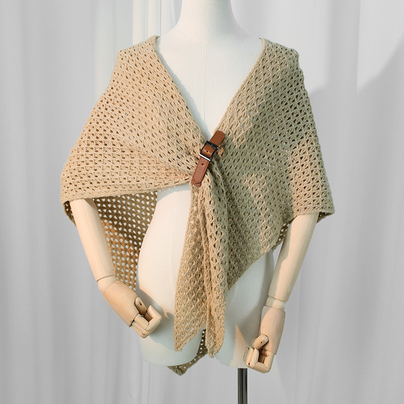 니트 모직 가죽 버클 삼각형 스카프 목도리 여성 에어컨 룸 따뜻한 사무실 앞 유리 스카프 이중 목적