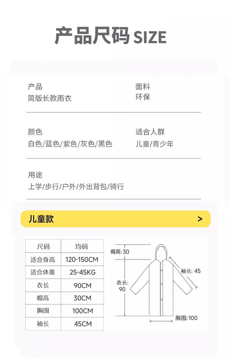 일회용 어린이 어린이 패션 비옷 EVA 야외 여행 학교 판초 휴대용 표류 학생 비옷스토어 가기