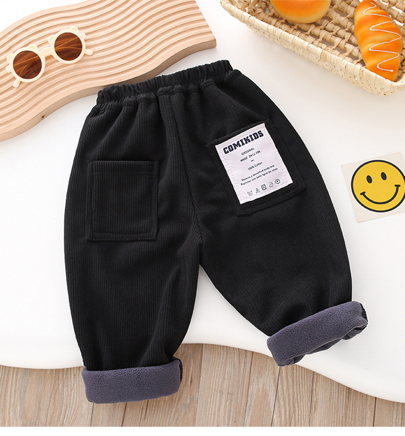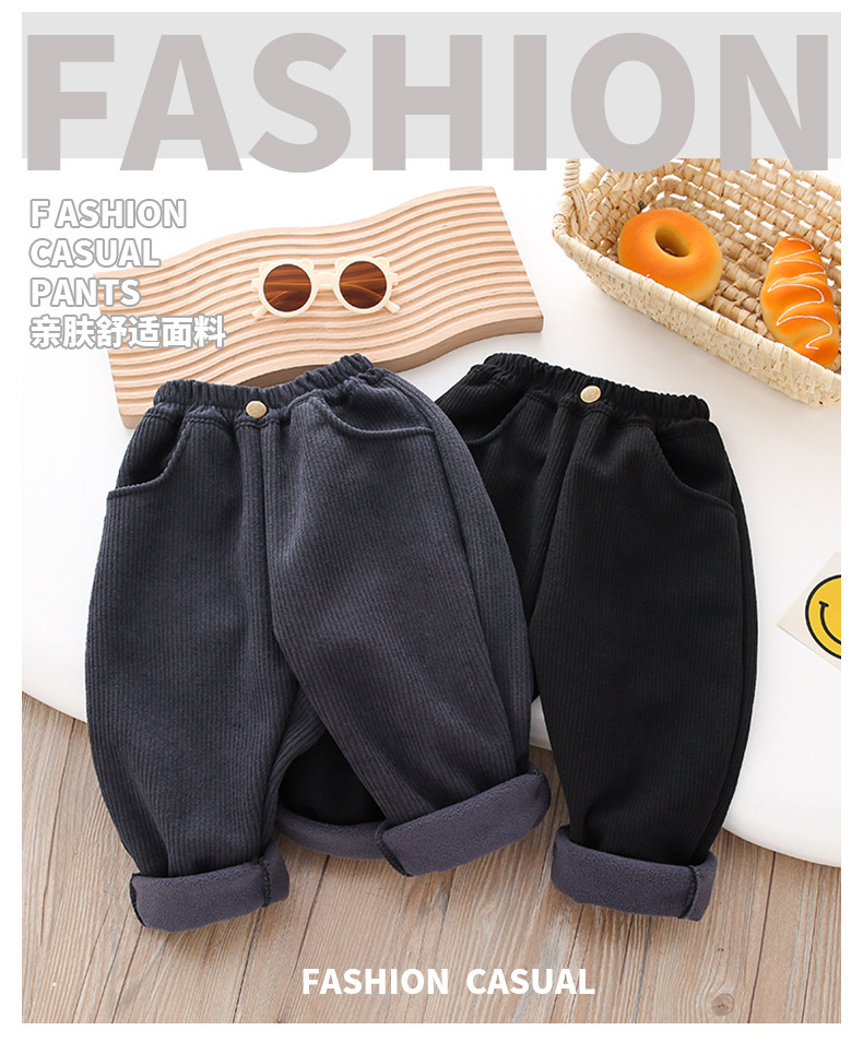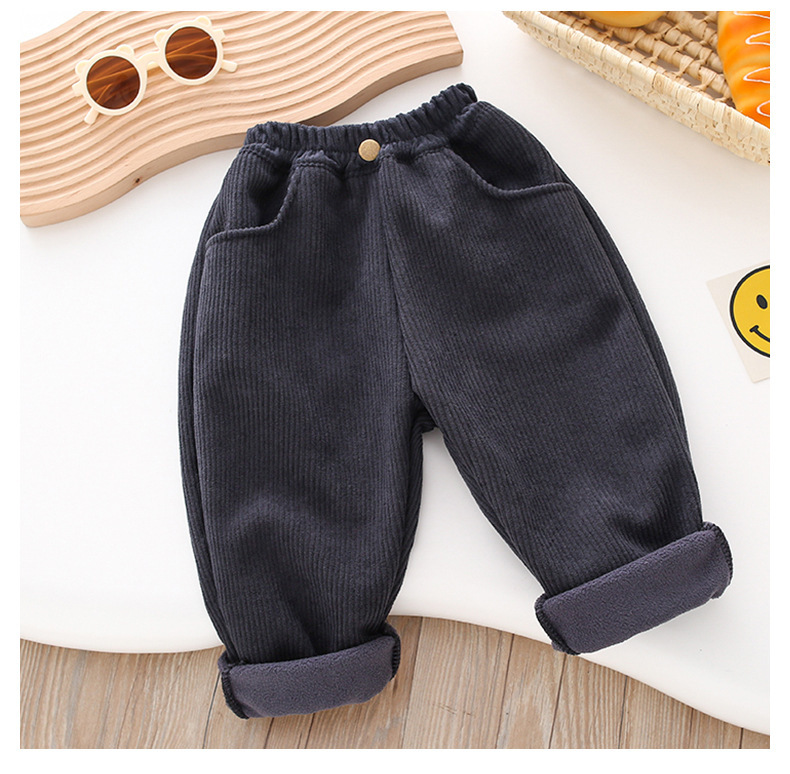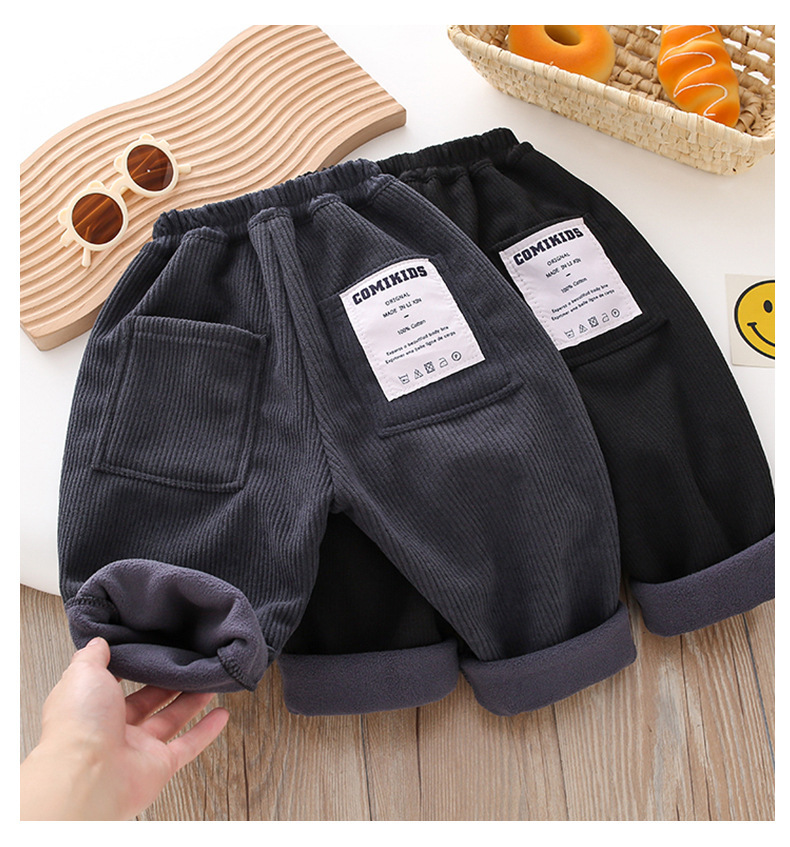남아용 겨울 기모 바지 2025 아동용 코듀로이 스타일 두꺼운 가을 겨울 일체형 기모 캐주얼 바지스토어 가기
