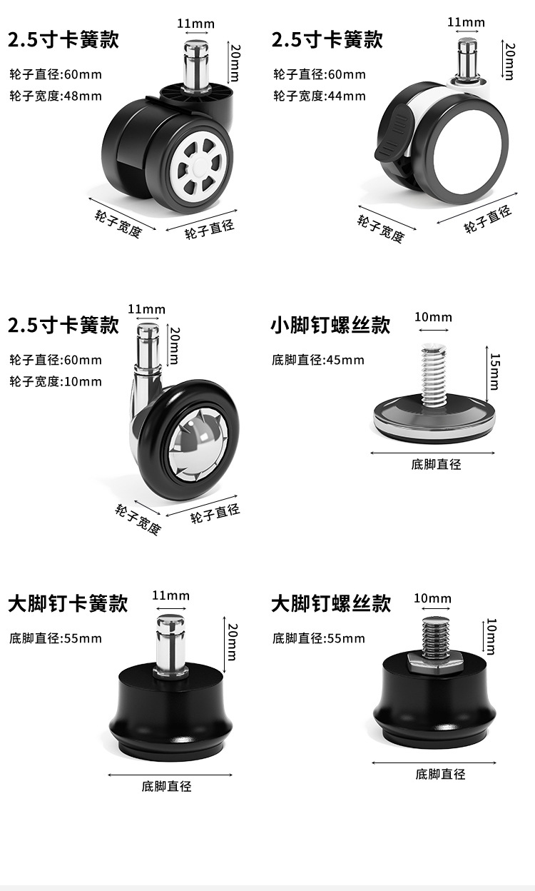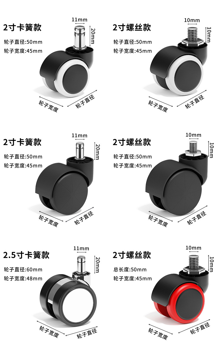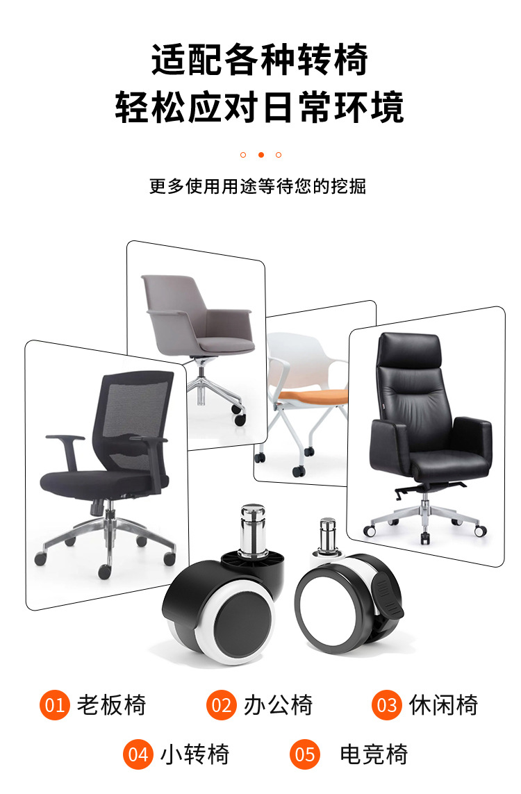 범용 회전의자용 바퀴, 대형 작업 의자, 게이밍 의자용 바퀴, 부드럽고 조용한 바퀴, 컴퓨터 의자용 바퀴, 의자 다리