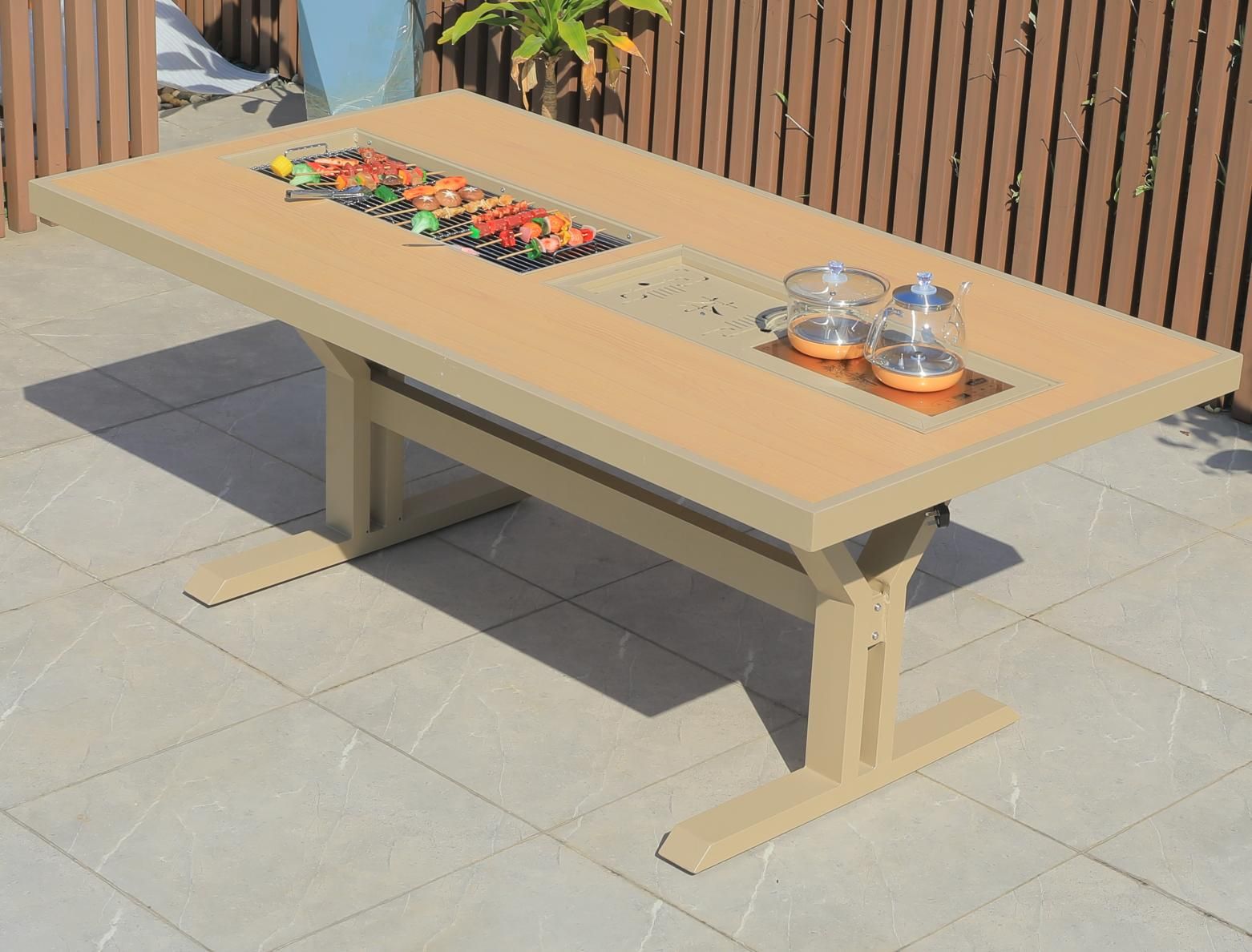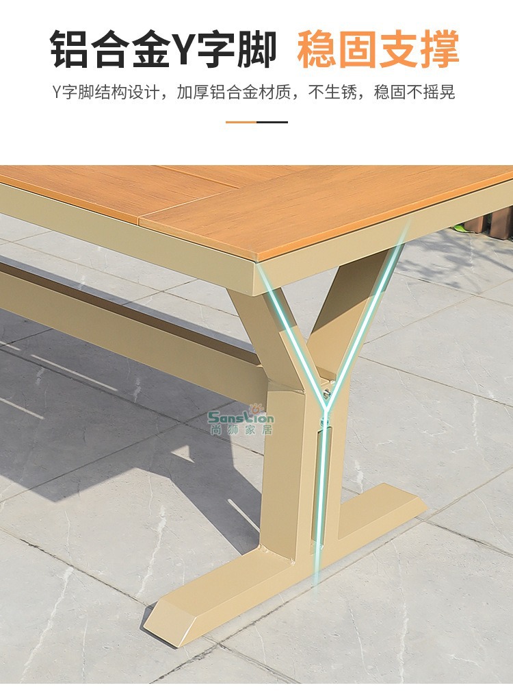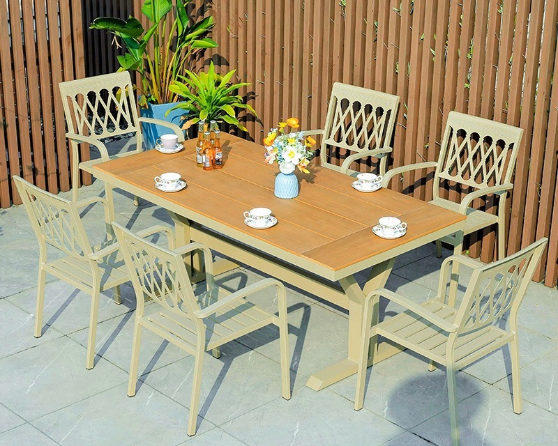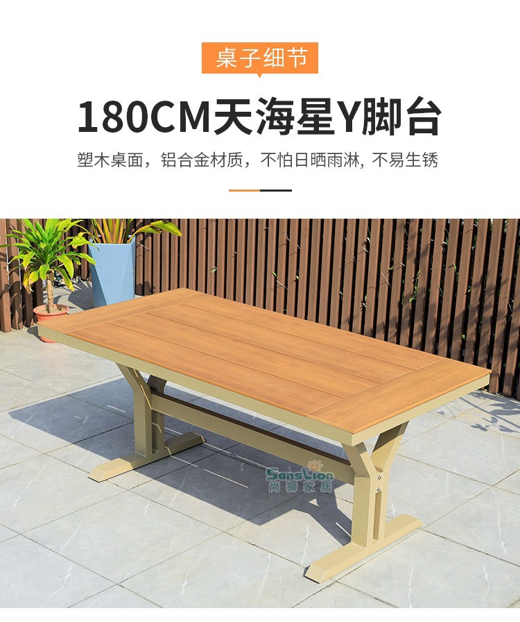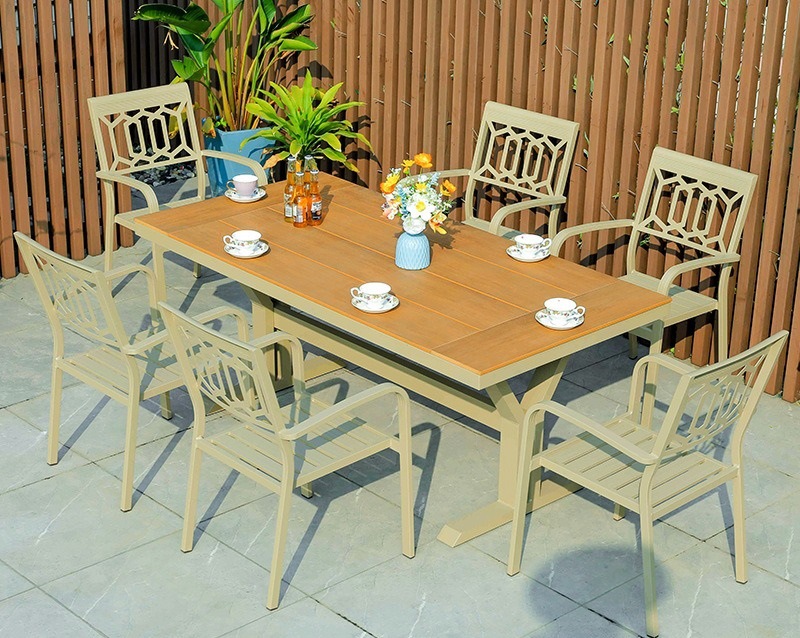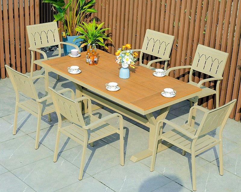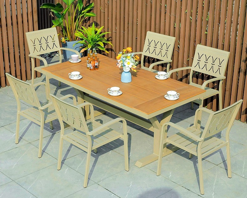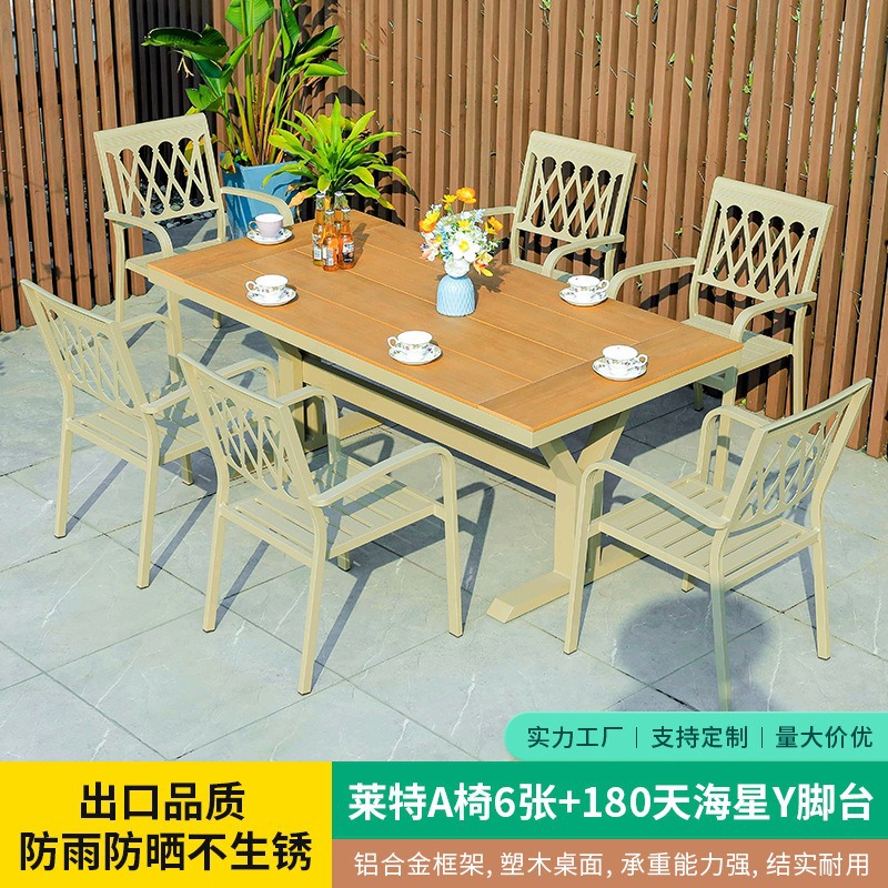 야외 테이블 및 의자 플라스틱 목재 알루미늄 합금 조합 정원 안뜰 바베큐 식사 테이블과 의자 우유 차 가게 외부 간단한 레저 의자