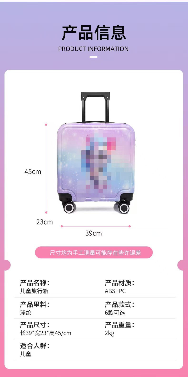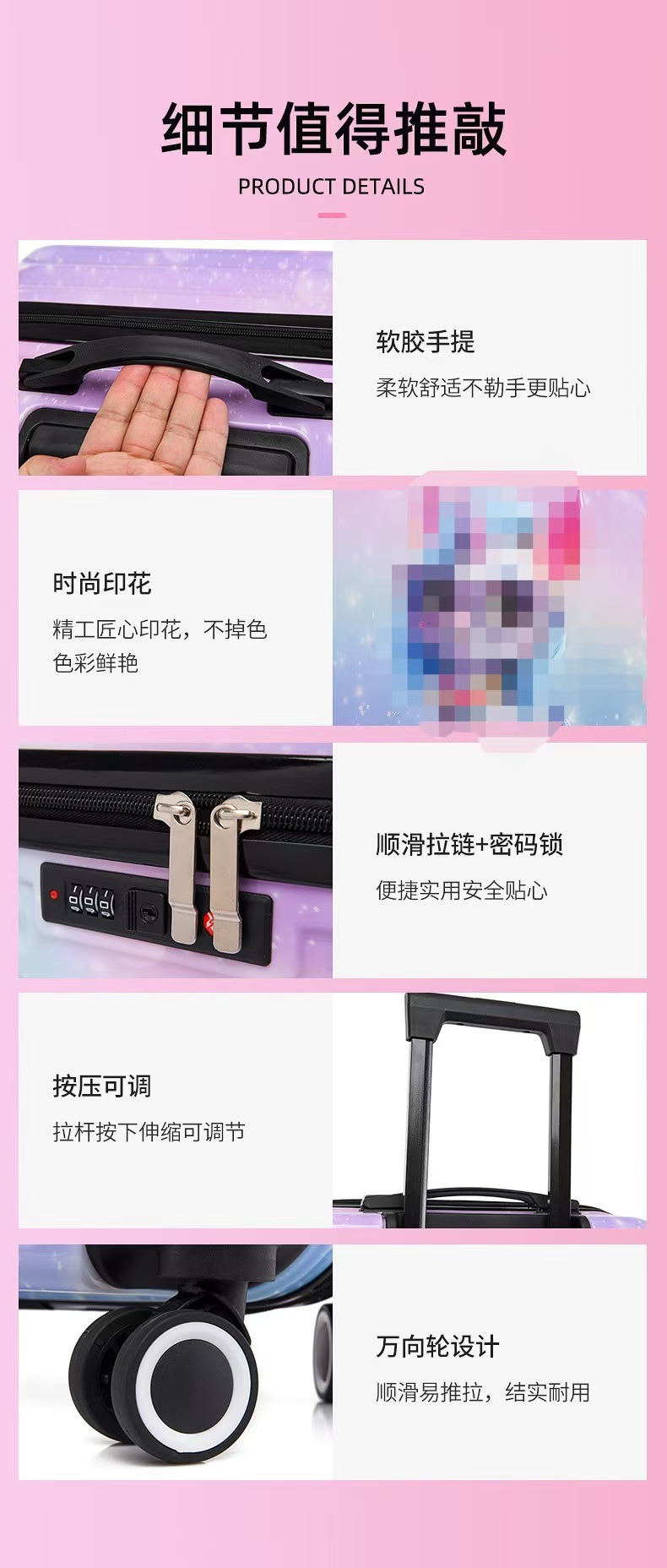 만화 20 인치 어린이 수하물 조합 잠금 음소거 휠 대용량 트롤리 케이스 레저 여행 탑승 가방