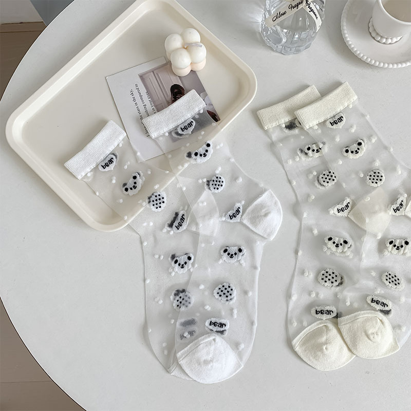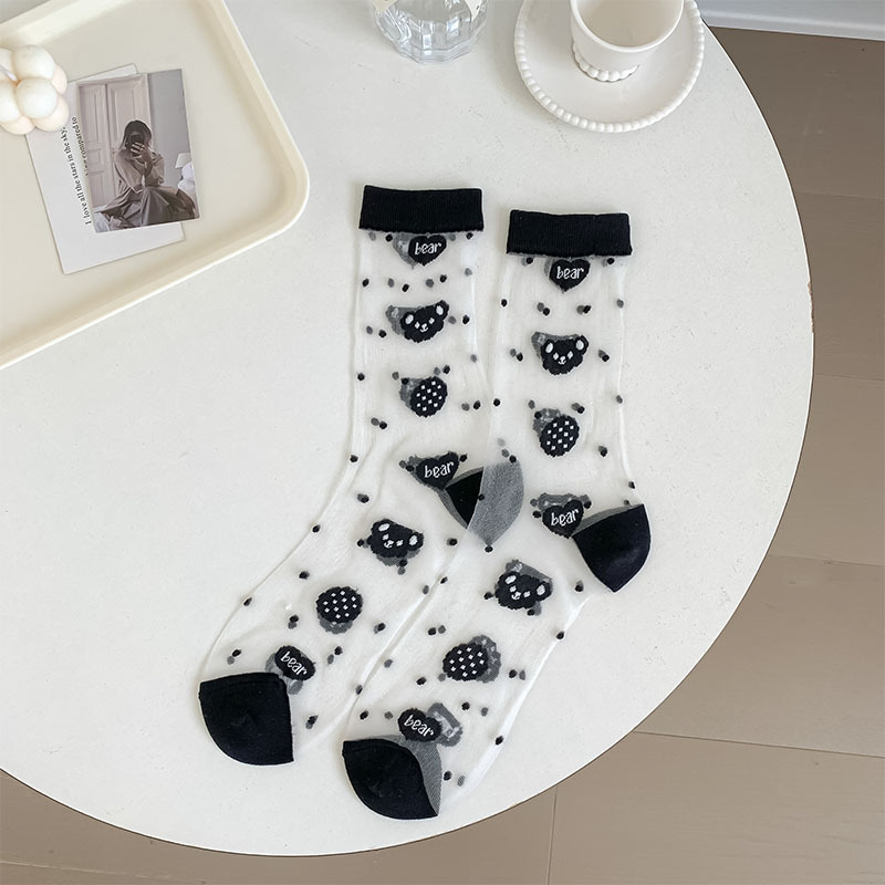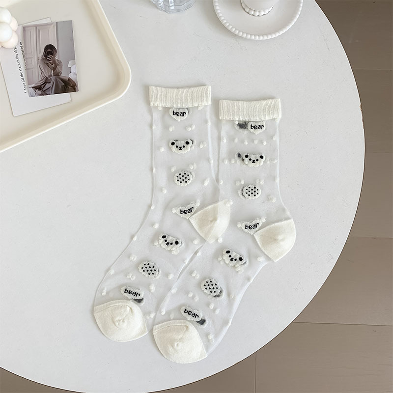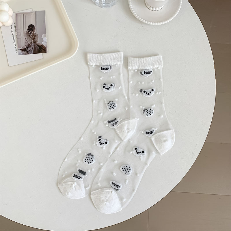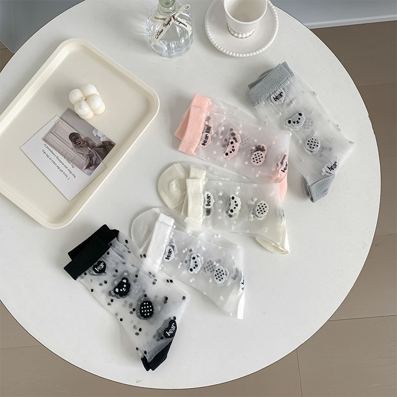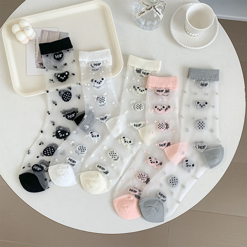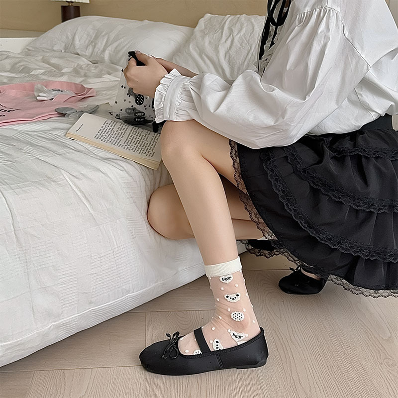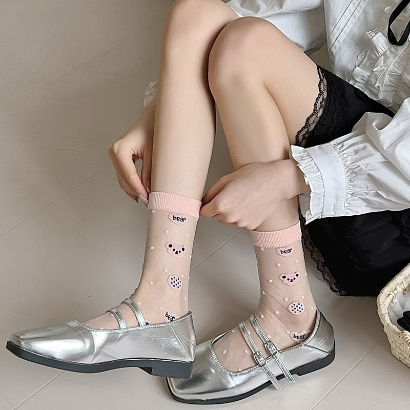 일본 스타일 소녀 스타일 달콤한 핑크 유리 실크 중간 길이 스타킹 여성 여름 얇은 매칭 메리 제인 신발 크리스탈 스타킹