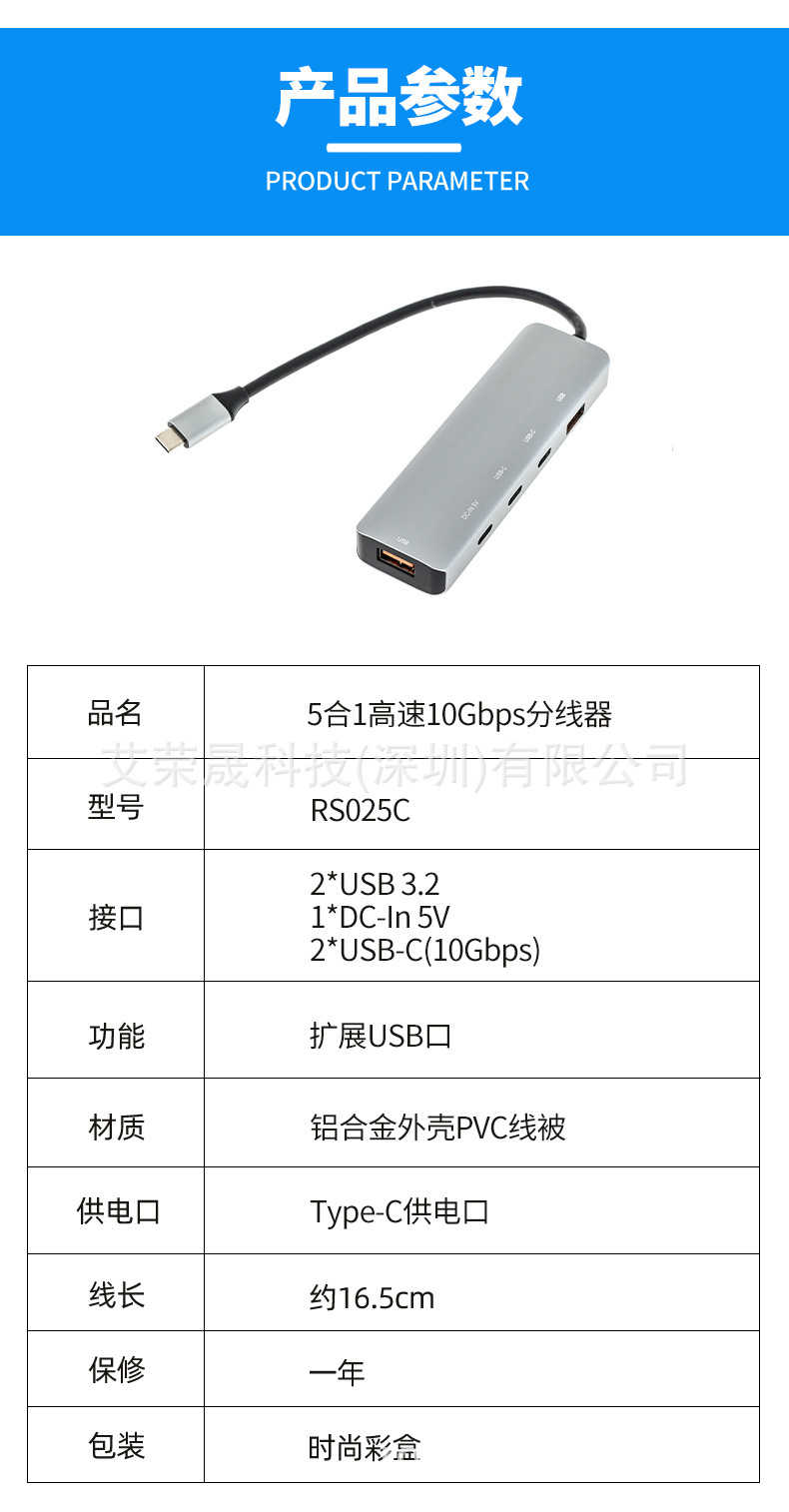 Ai Rongsheng 개인 모델 USB 3.2 GEN2 스플리터 10GB DC 5V 전원 공급 장치 재고 10Gbps 허브