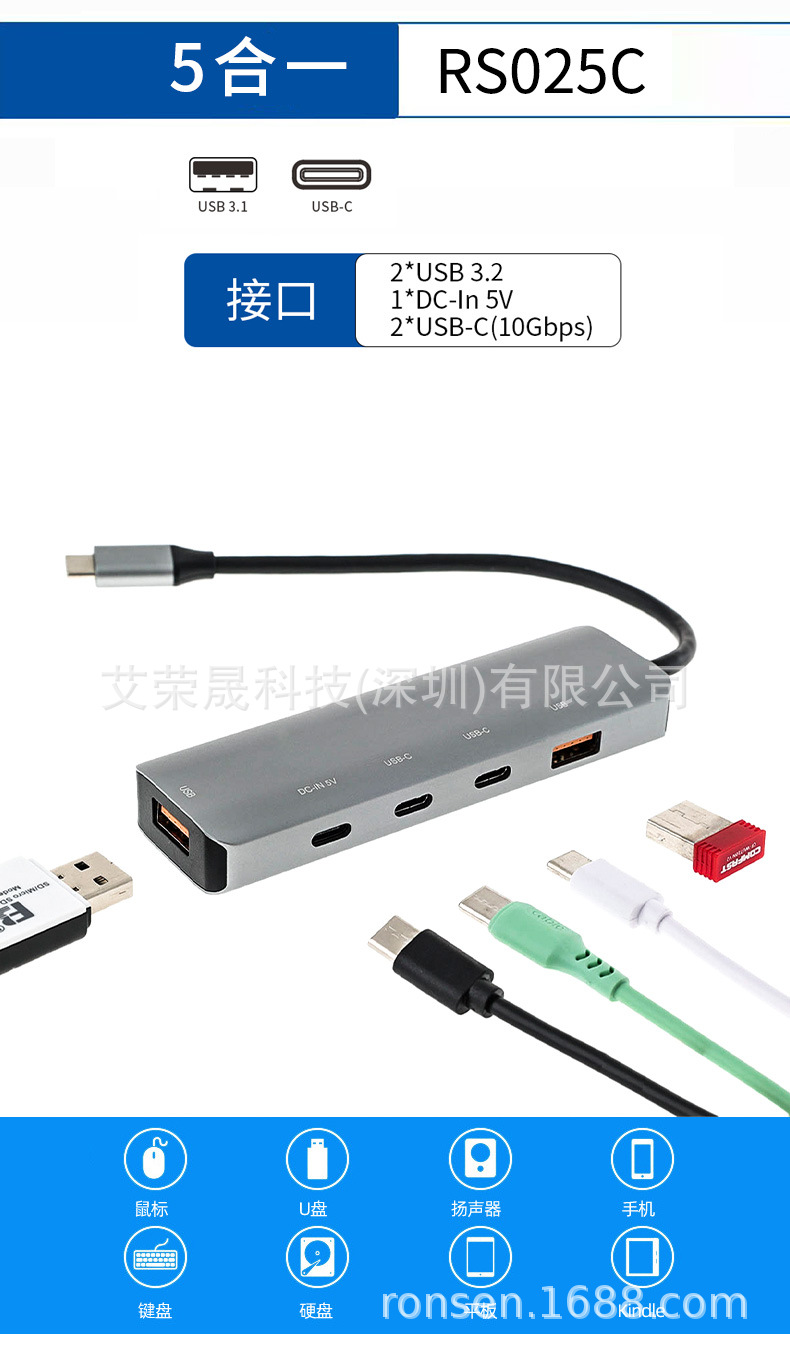 Ai Rongsheng 개인 모델 USB 3.2 GEN2 스플리터 10GB DC 5V 전원 공급 장치 재고 10Gbps 허브스토어 가기