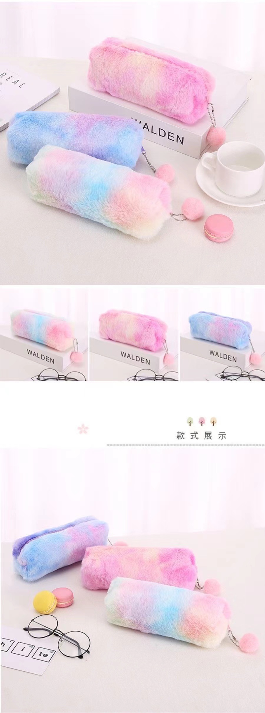 그라데이션 색상의 창의적인 필통, 소녀들을 위한 귀여운 봉제 팔각형 필통, 심플한 캔디 스타일 문구, 소녀 감성 학습용