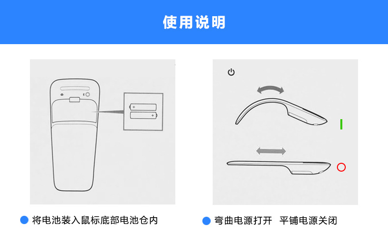 Arc Touch 접이식 초박형 무선 Bluetooth 마우스 표면 디자이너 Blue Shadow Office스토어 가기