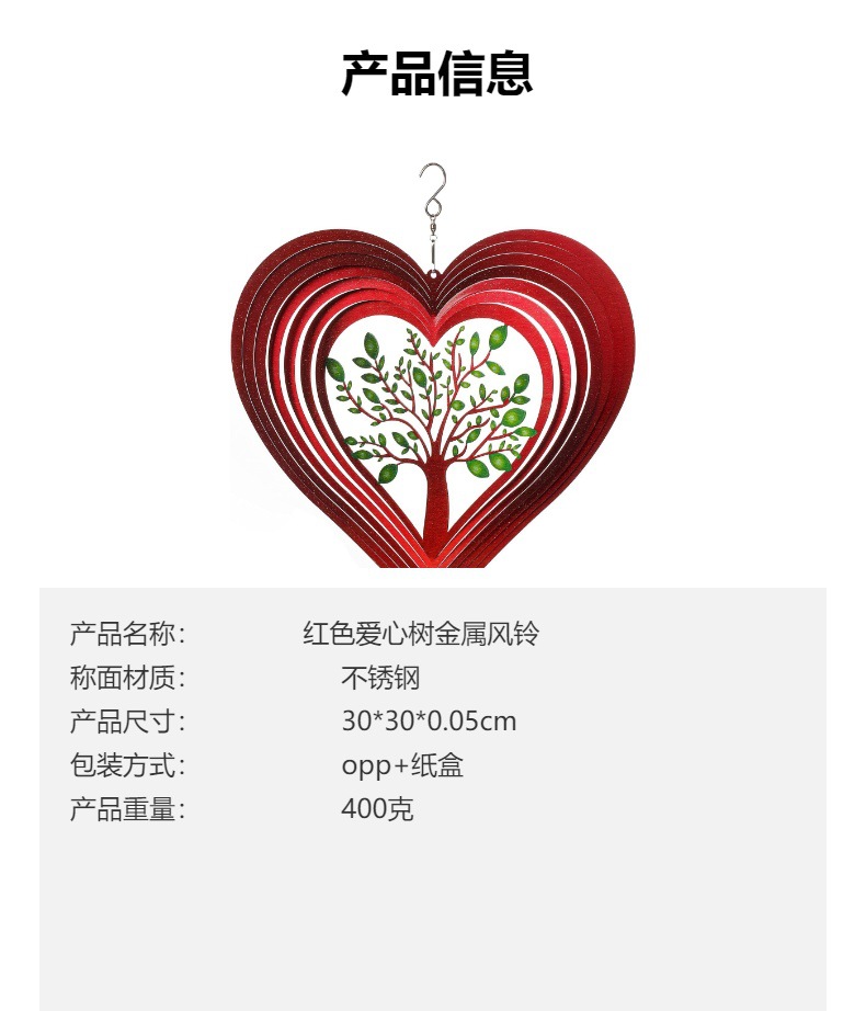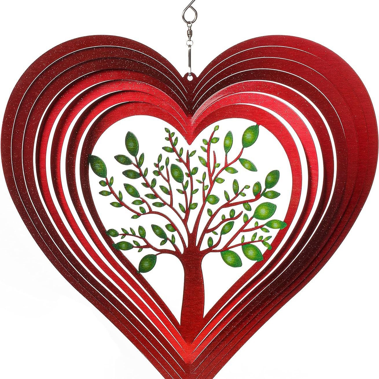 붉은 사랑 나무 바람 스피너 안뜰 정원 하트 모양의 바람 스피너 정원 장식 금속 장식