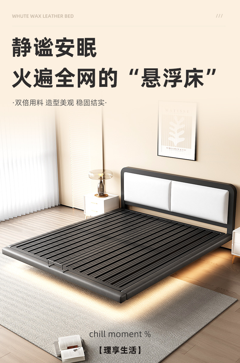 L & 서스펜션 침대 현대 간단한 홈 마스터 침실 더블 침대 없음 침대 옆 스틸 프레임 서스펜션 침대 룸 싱글 아이언스토어 가기