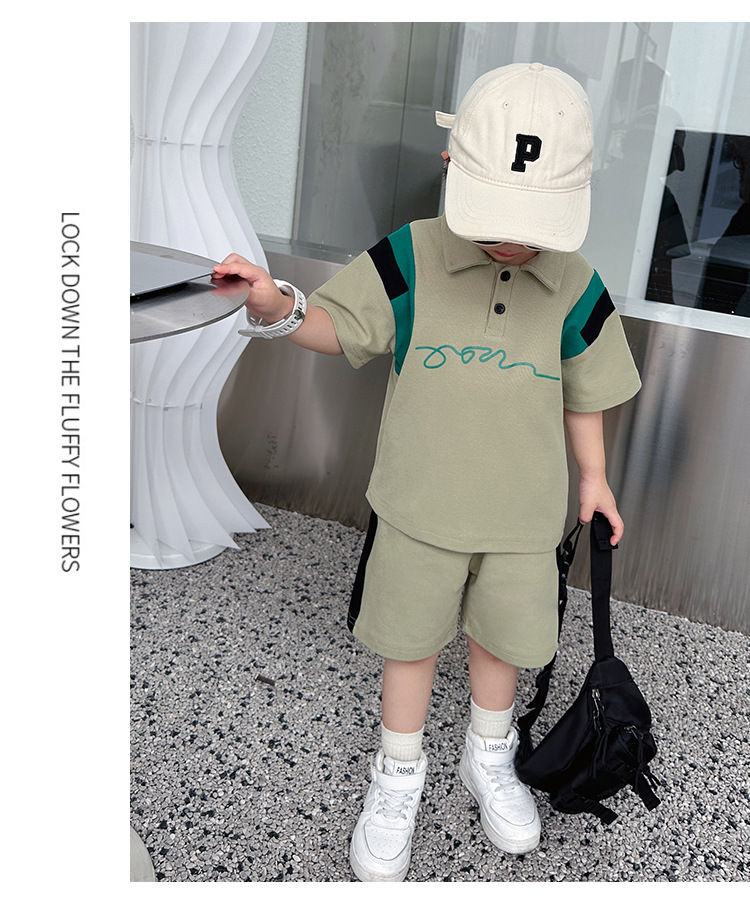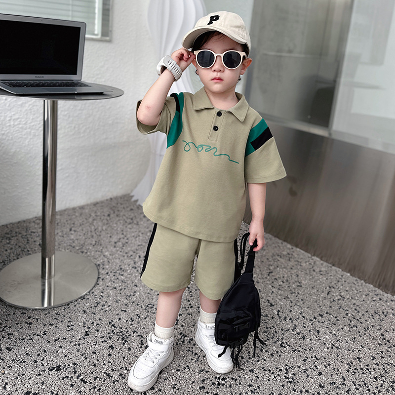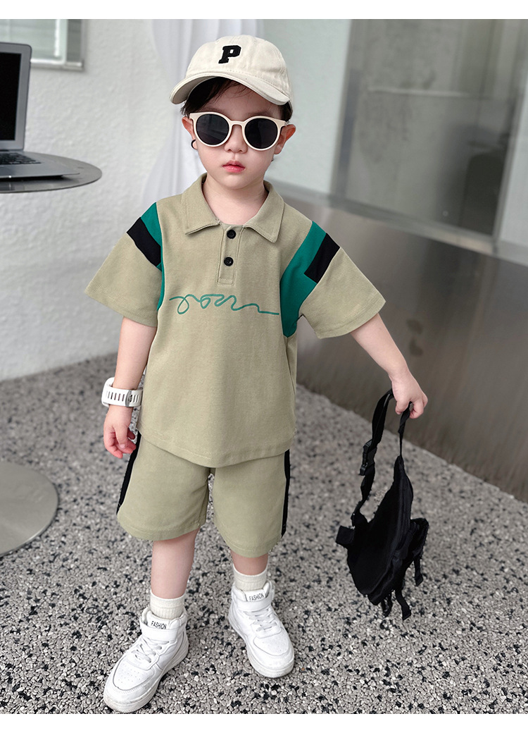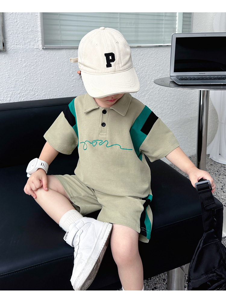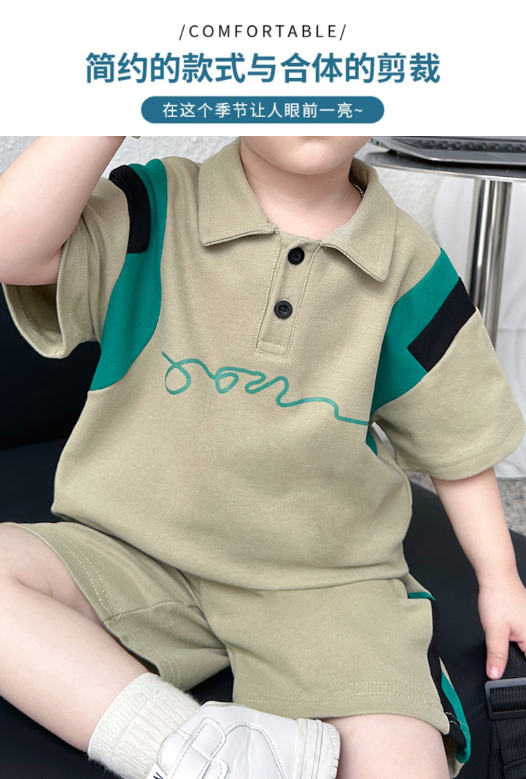어린이 여름 원피스 컬러 매칭 폴로 셔츠 짧은 소매 세트 2024 여름 새로운 멋진 소년 아기 캐주얼 대외 무역 아동복스토어 가기