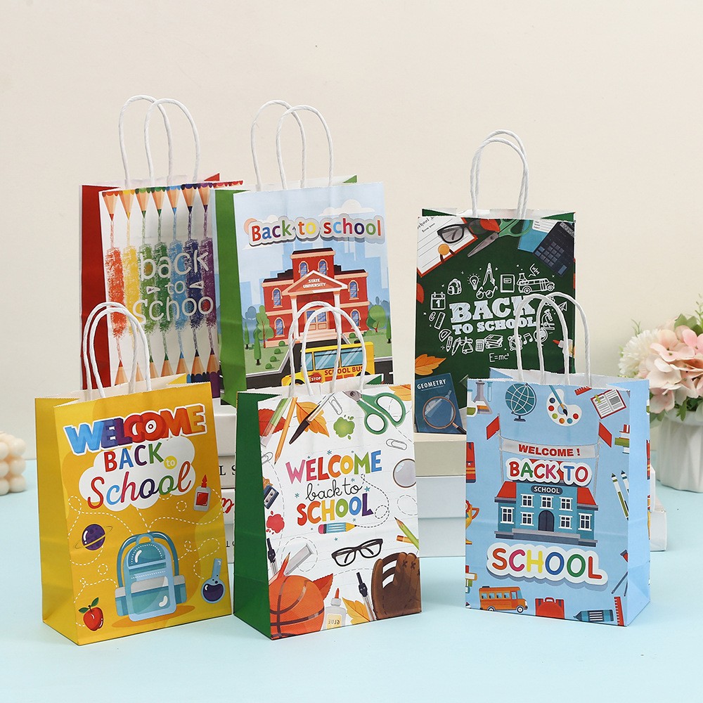 어린이 어린이 선물 가방 종이 가방 도매 파티 크래프트 종이 포장 가방 학교 시즌 선물 가방 인쇄 토트 가방