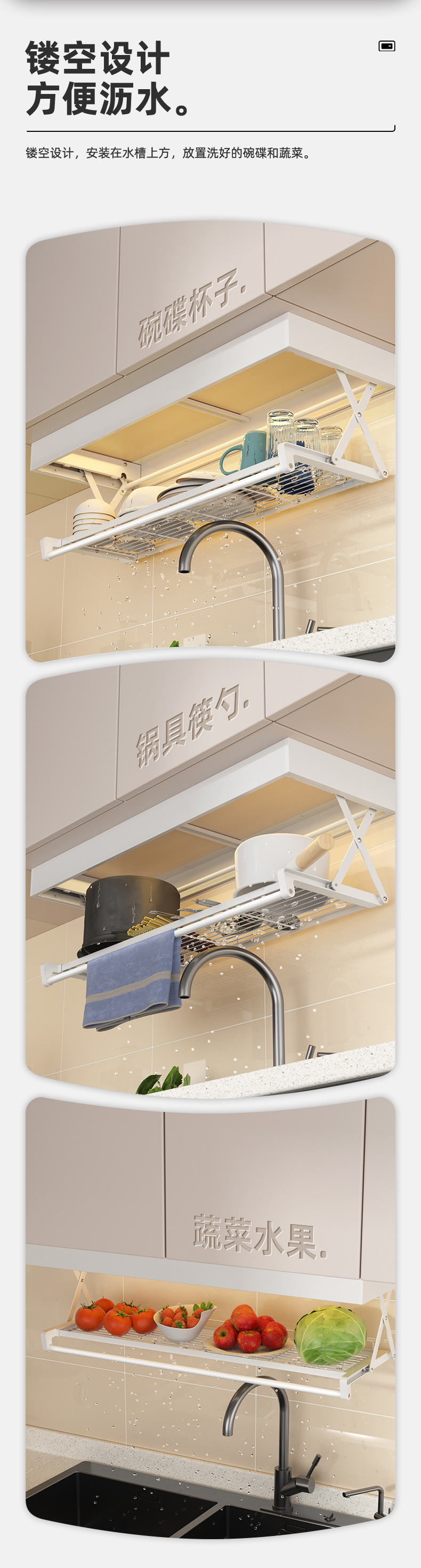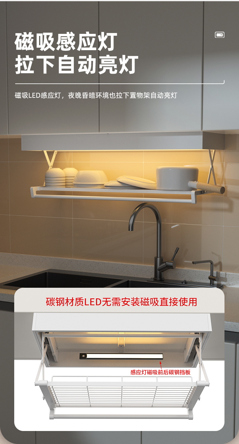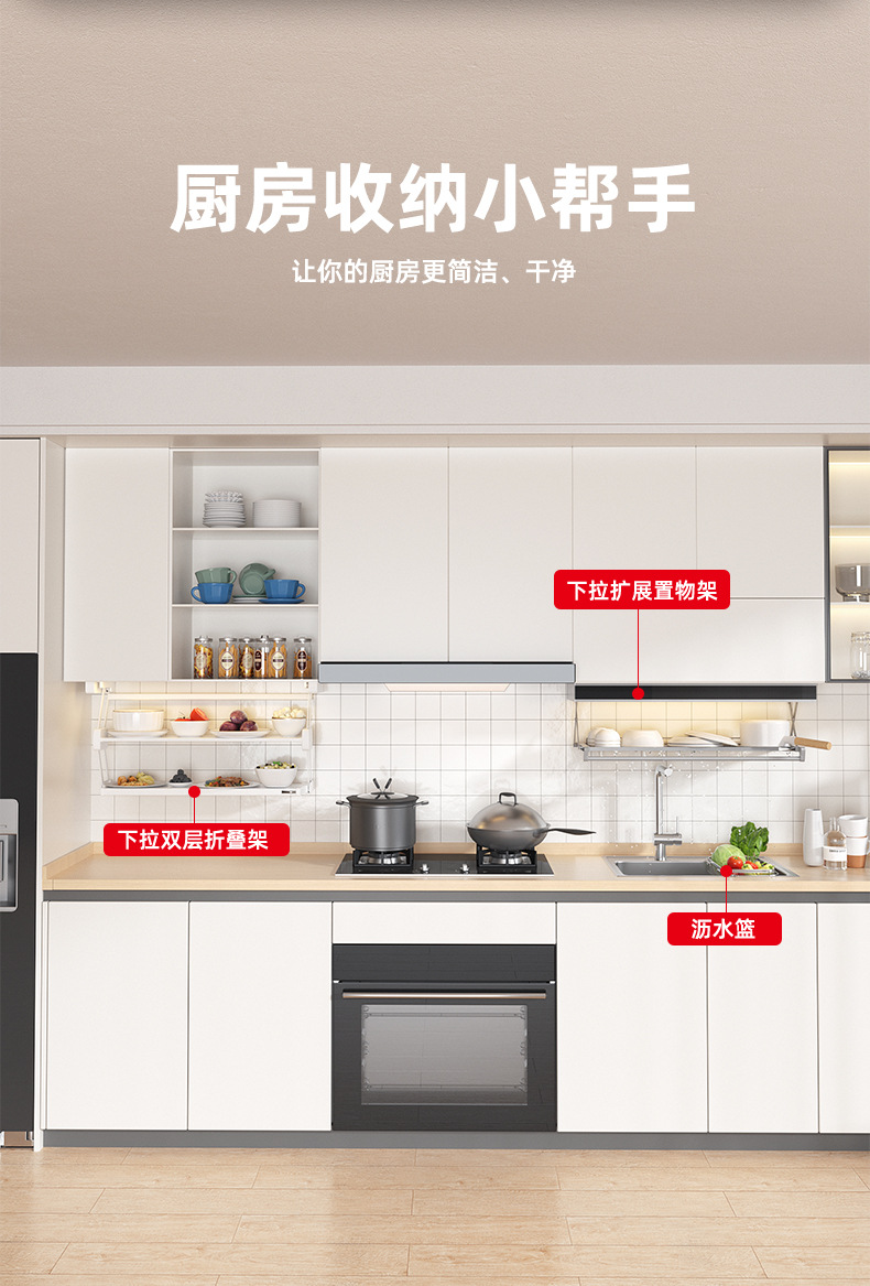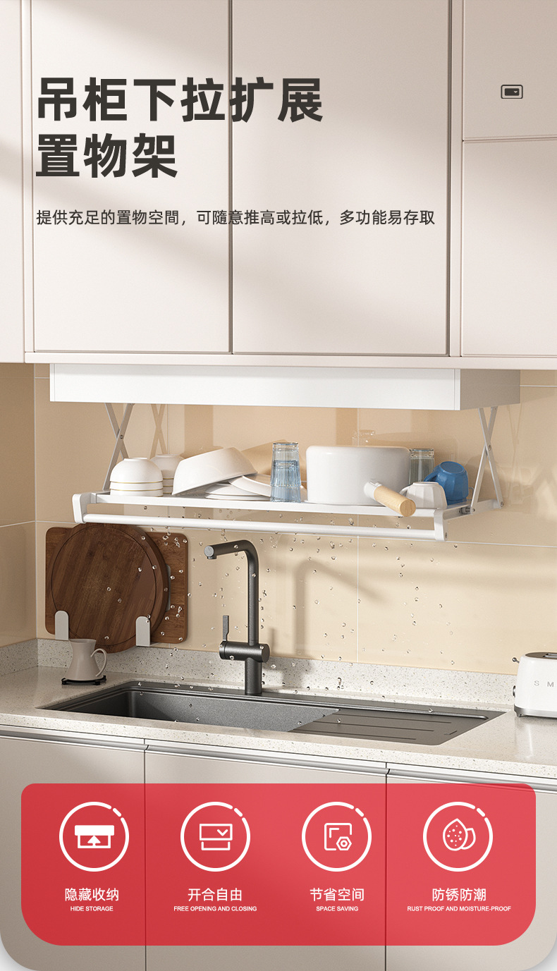 주방 스토리지 랙 벽걸이 형 교수형 캐비닛 풀다운 확장 스토리지 멀티 기능 선반 배수 랙 포트 팩 포트 팩 랙