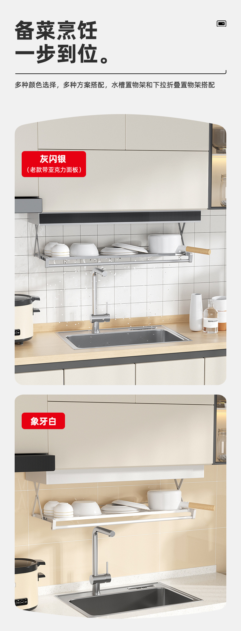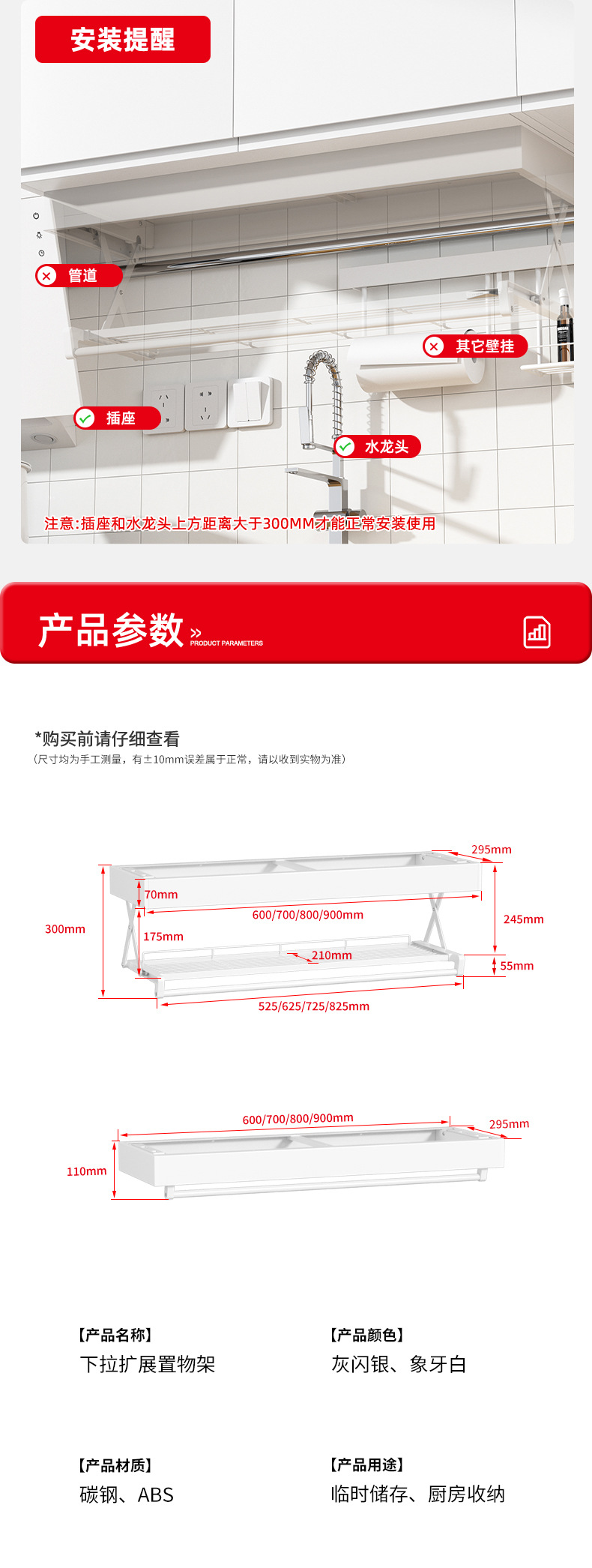 • 풀다운 확장 스토리지 랙 아이보리 화이트 900mm