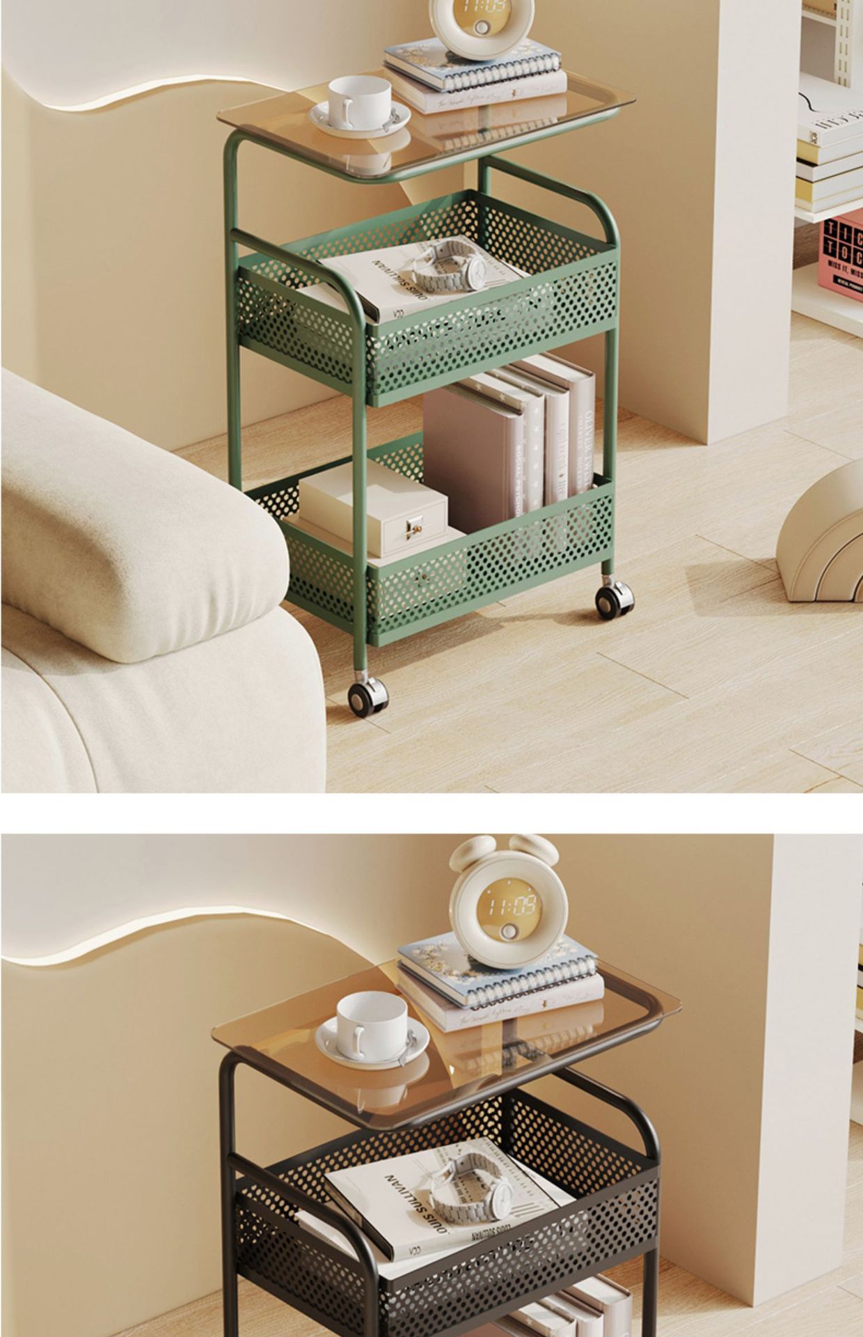L & 크림 스타일 거실 소파 사이드 테이블 이동식 침실 침실 테이블 트롤리 커피 테이블 저장 랙 다층 보관스토어 가기