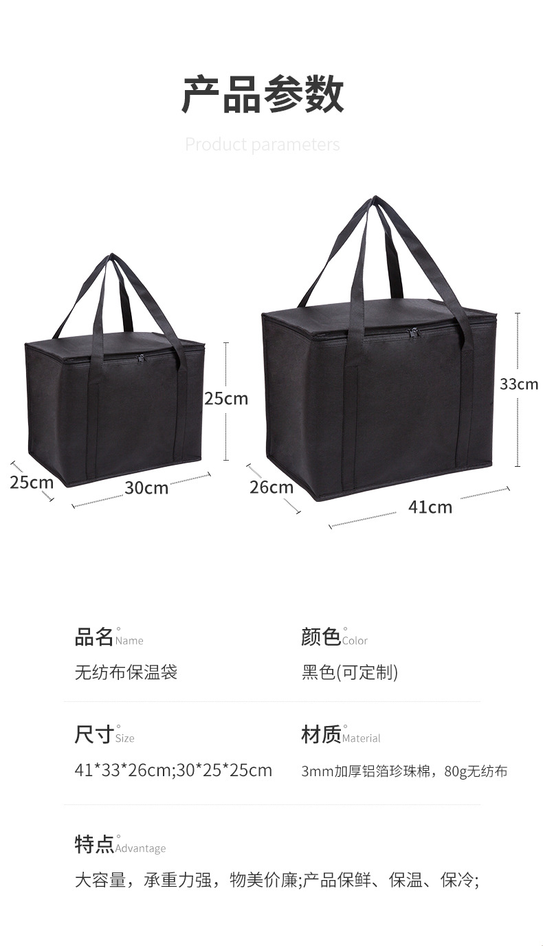 국경 간 부직포 단열 가방 대용량 두꺼운 얼음 가방 신선한 차가운 테이크 아웃 단열 가방 도매