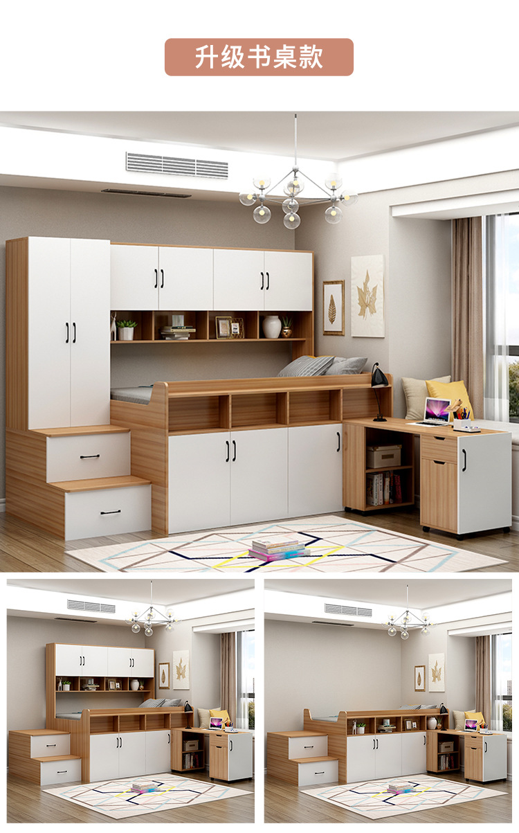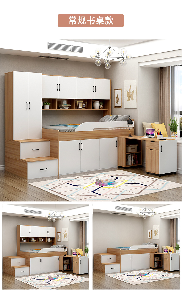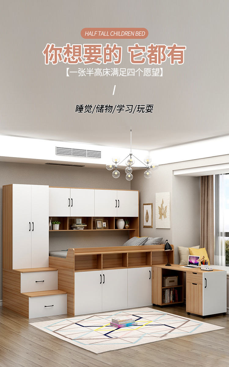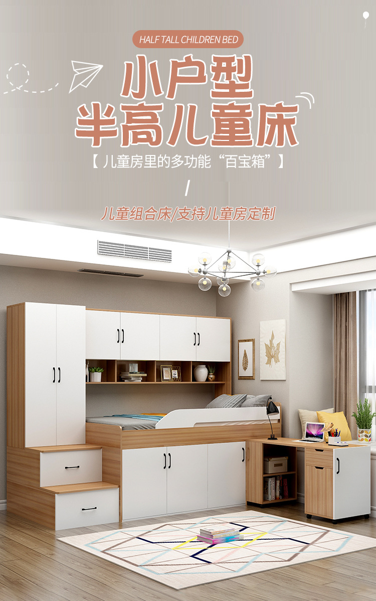 Q * 어린이 침대 반 높이 침대 책상 옷장 통합 다기능 조합 침대 세트 침실 작은 아파트 공간 절약 보관스토어 가기