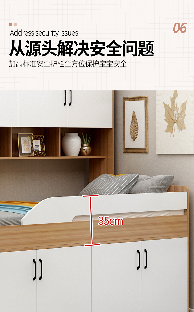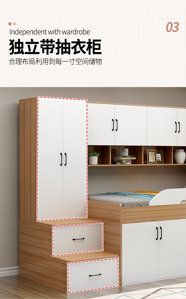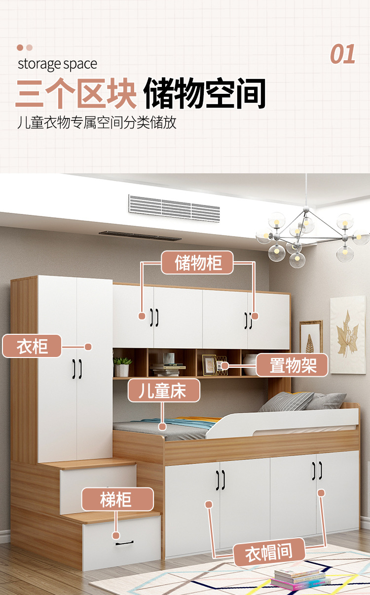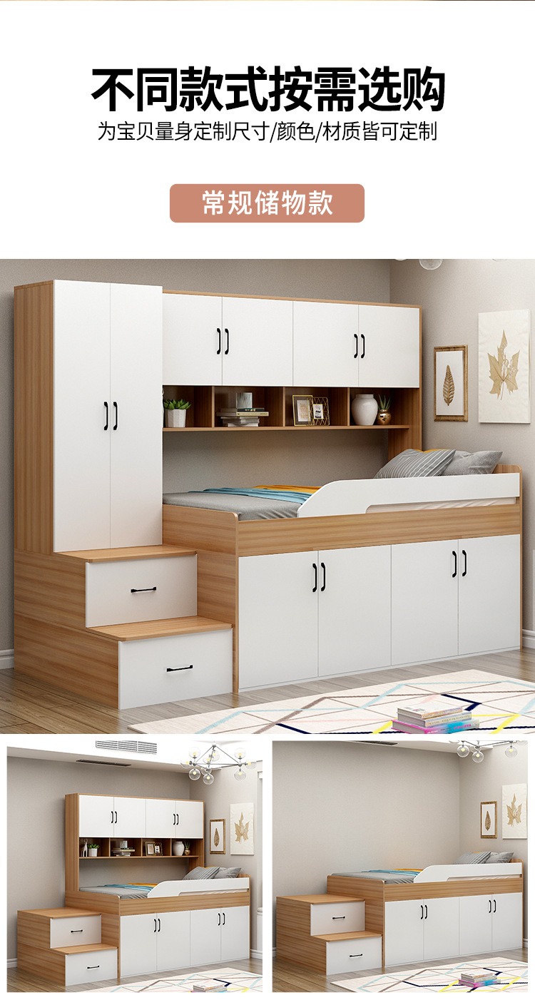 Q * 어린이 침대 반 높이 침대 책상 옷장 통합 다기능 조합 침대 세트 침실 작은 아파트 공간 절약 보관스토어 가기