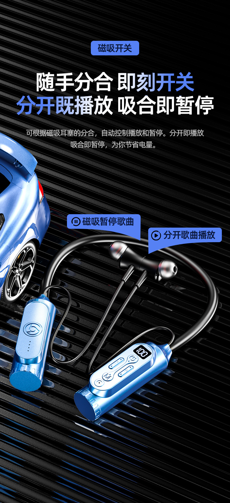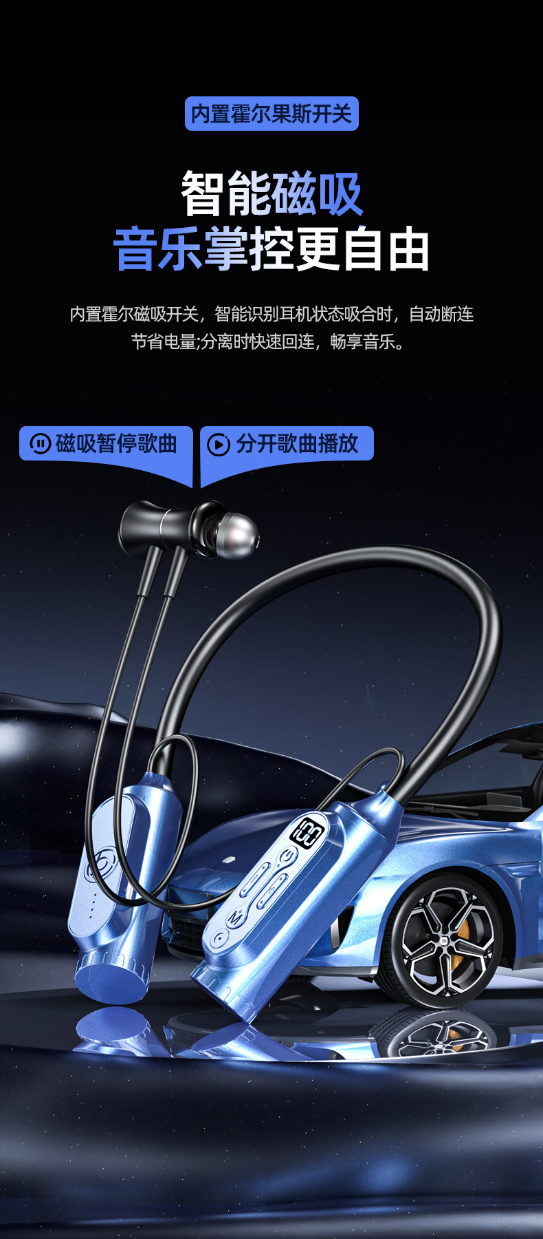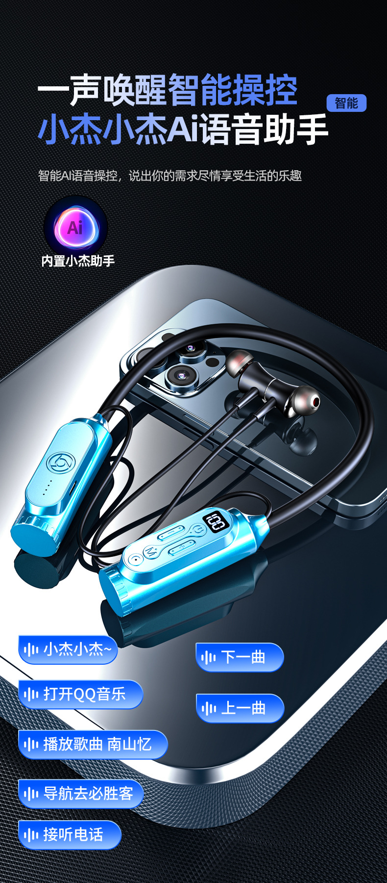 새로운 스마트 음성 제어 자기 흡입 스위치 충전 보물 목 블루투스 헤드셋 화웨이 샤오 미 안드로이드 유니버설