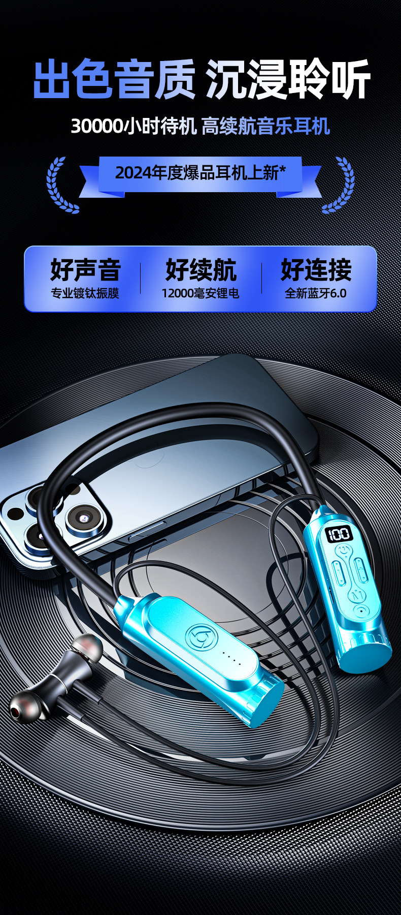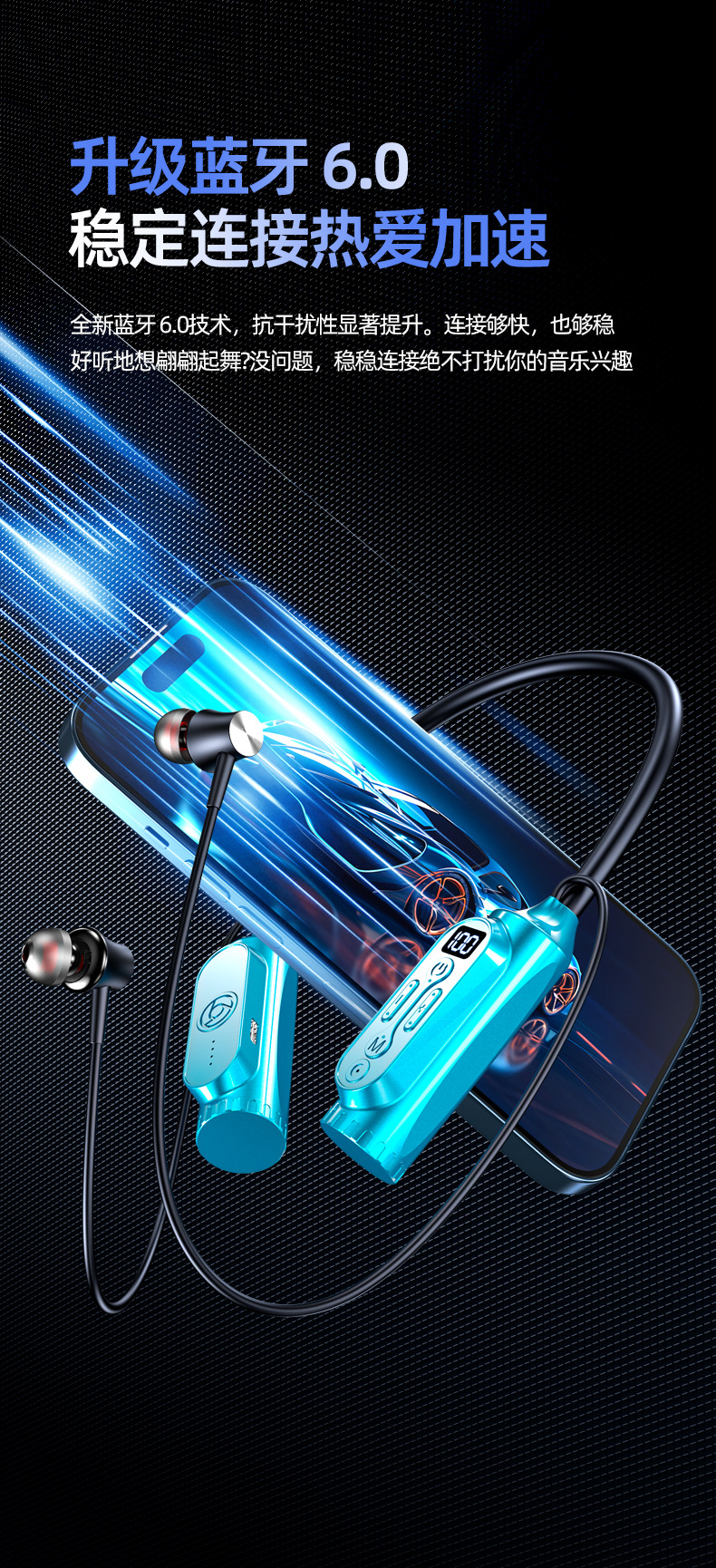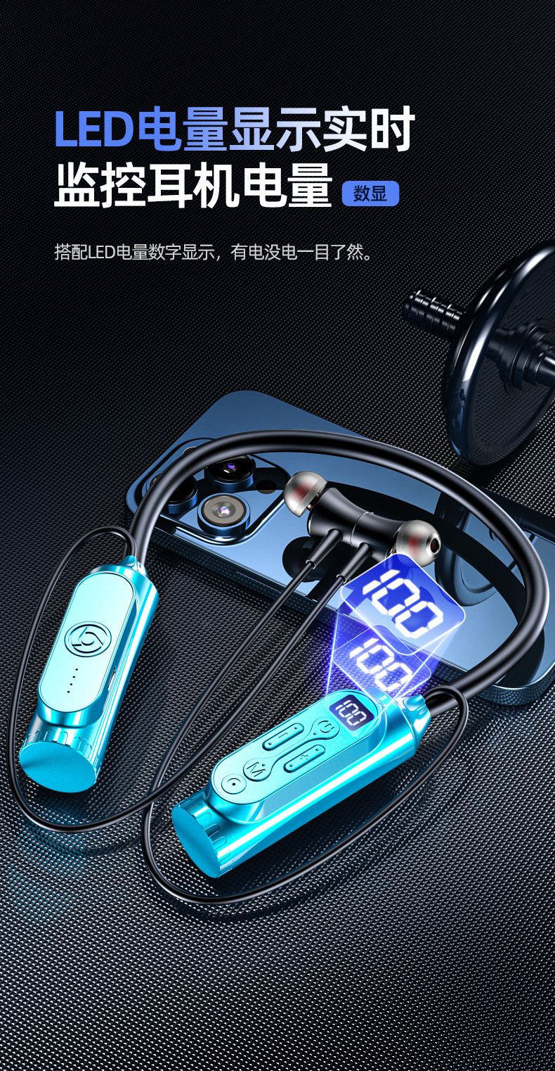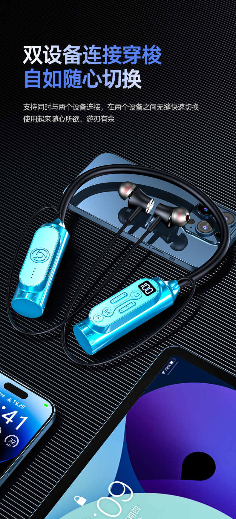 새로운 스마트 음성 제어 자기 흡입 스위치 충전 보물 목 블루투스 헤드셋 화웨이 샤오 미 안드로이드 유니버설