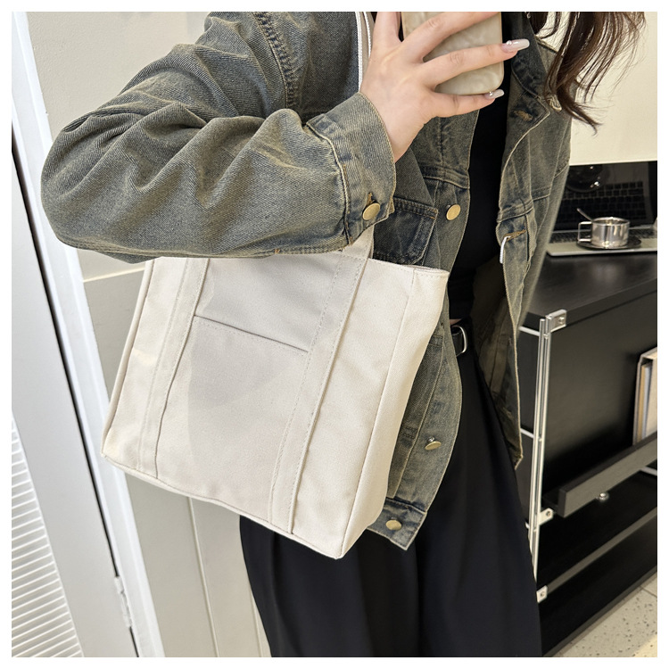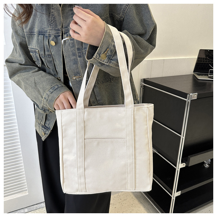 대용량 핸드 캔버스 가방 휴대용 새로운 핸드 토트 백 학생 예술적 어깨 가방 여성 빈 캔버스 가방스토어 가기