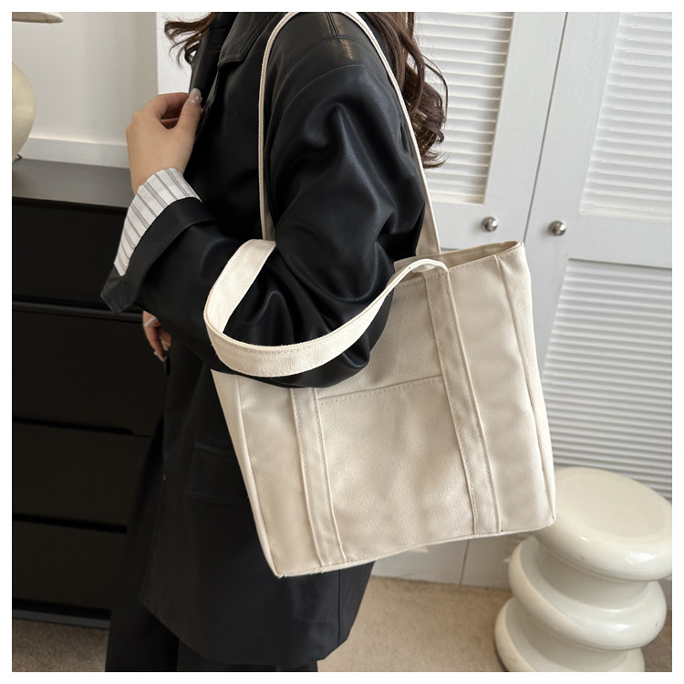 대용량 핸드 캔버스 가방 휴대용 새로운 핸드 토트 백 학생 예술적 어깨 가방 여성 빈 캔버스 가방