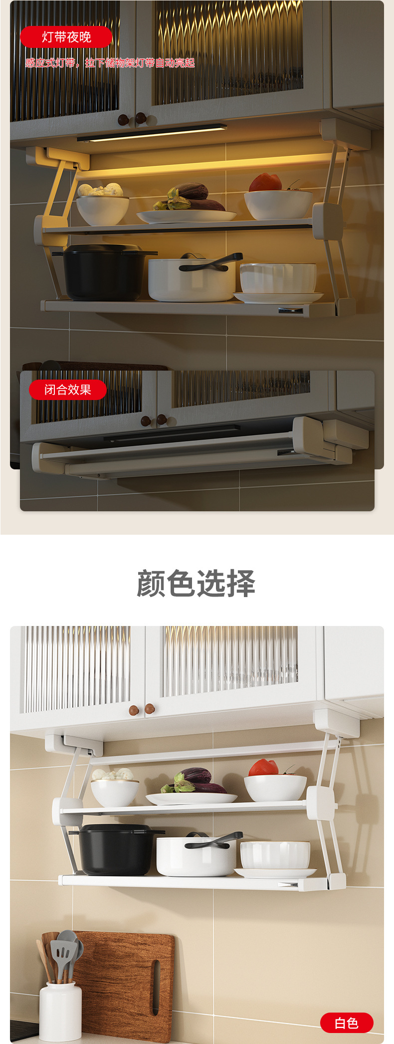 주방 야채 선반 교수형 캐비닛 풀다운 접이식 보관 랙 스테인레스 스틸 다층 주방 야채 저장 랙 공장 국경스토어 가기