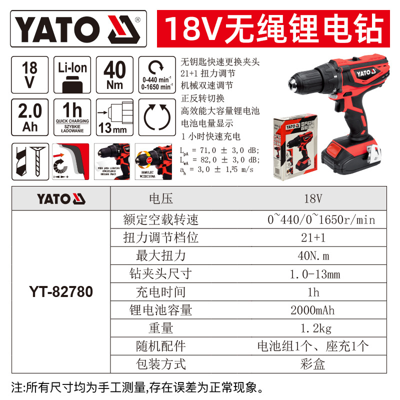 • YT-82780 [전기 1 개 및 충전 1 개] 간단한 팩