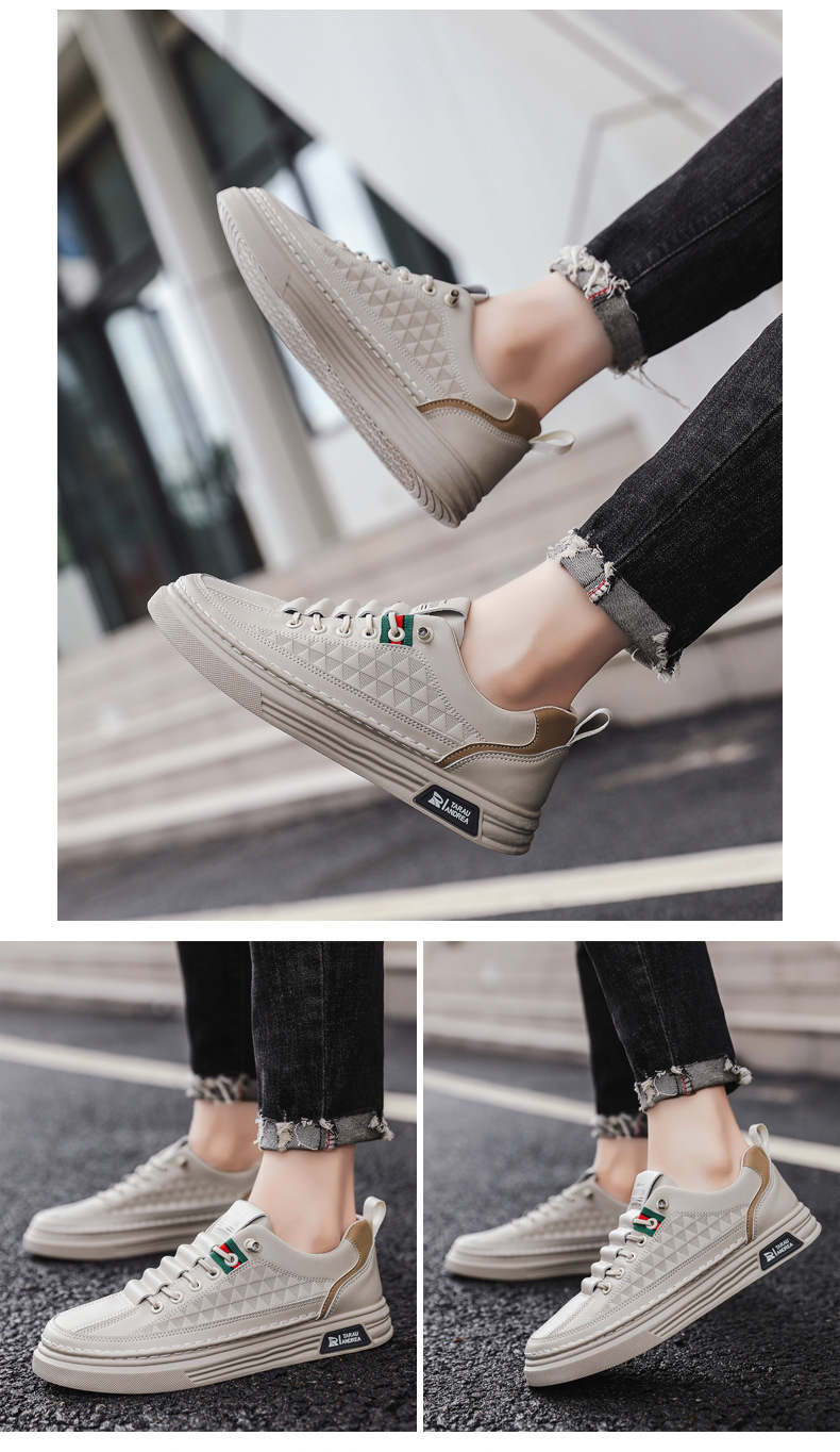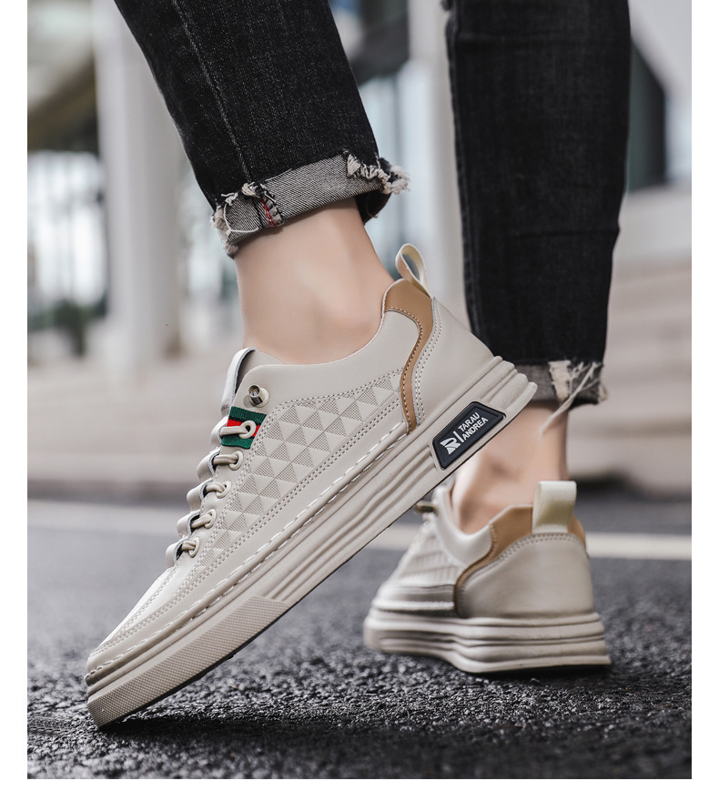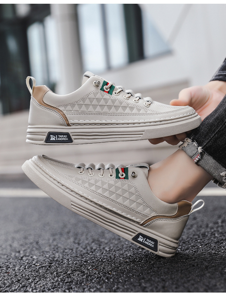 남성용 신발 여름 얇은 통기성 캐주얼 가죽 신발 남성용 경량 올매치 보드 신발 유행 소프트 하단 화이트 신발 슬립 온 통기성스토어 가기