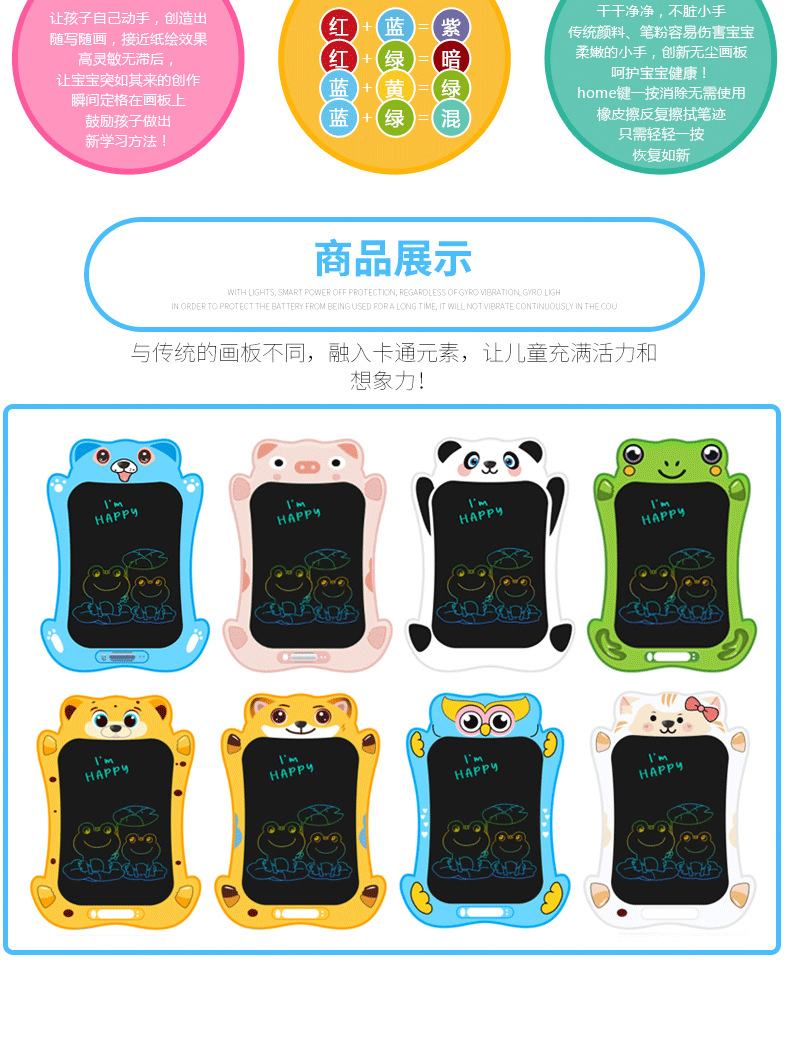 LCD 전자 드로잉 보드 동물 만화 어린이 드로잉 보드 선물 드로잉 보드 LCD 필기 보드