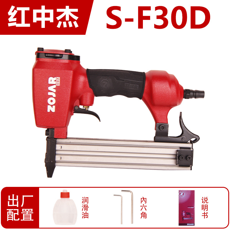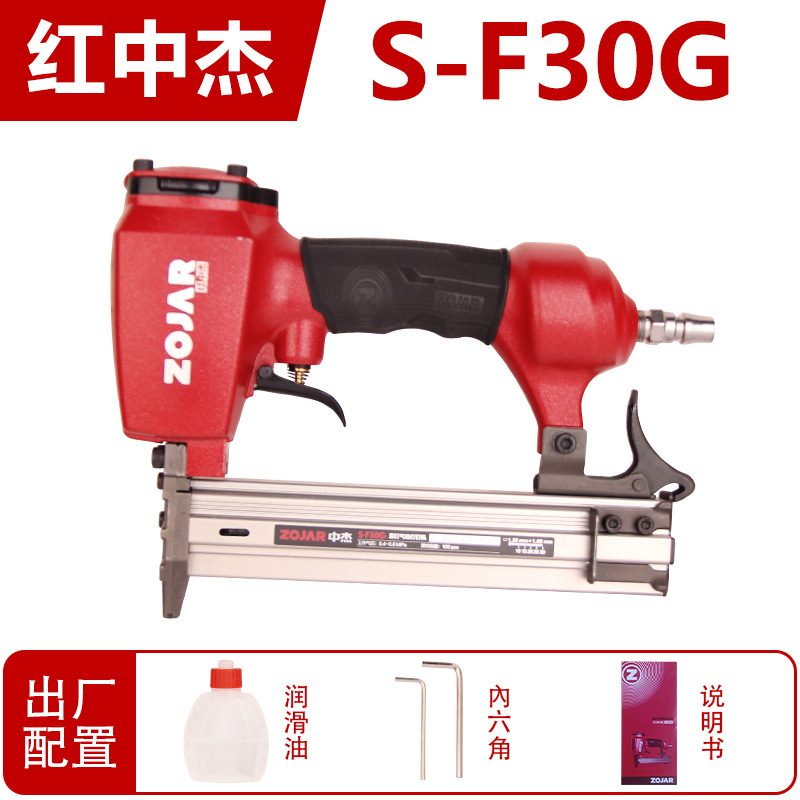 레드 Zhongjie F30G 비 스테이플 공압 스트레이트 네일 건 목공 네일 건 장식 에어 네일 건 30 스트레이트 행 네일 건 도구스토어 가기