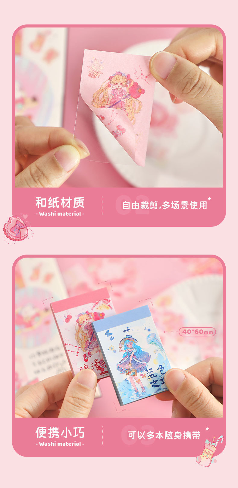 소녀의 심장 만화 귀여운 수채화 바람 완두콩 스티커 미니 카드 스티커 어린이 어린 소녀의 손 계정 책