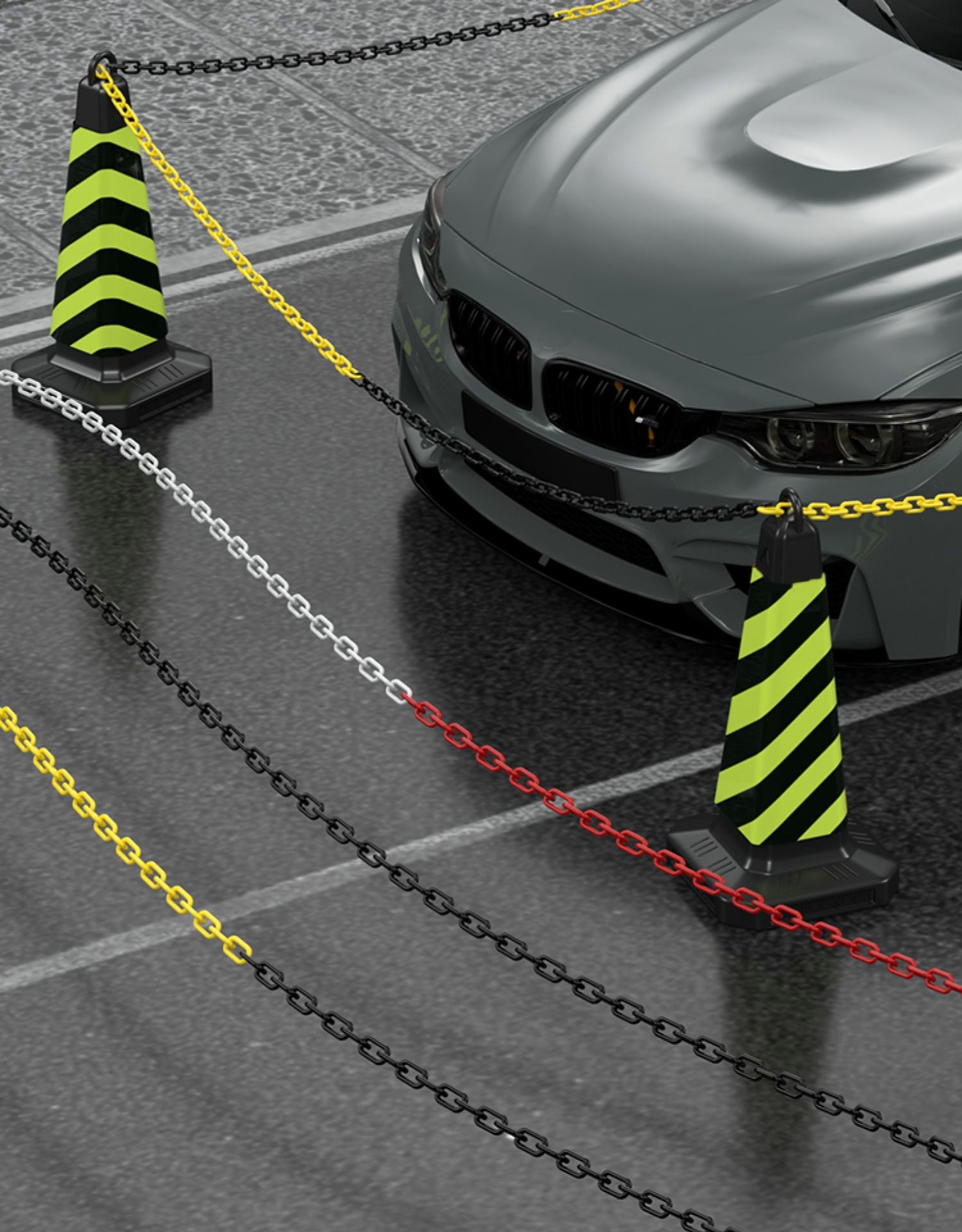 로드 콘 도로 콘 아이스크림 버킷 링크 연결 플라스틱 체인 옐로우 블랙/레드 화이트 6mm/8mm 경고 체인 격리