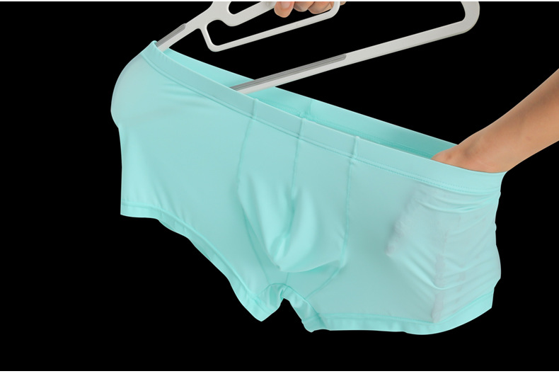 새로운 남성 속옷 아이스 실크 벌거 벗은 재미 복서 스포츠 섹시한 초박형 투명 통기성 강한 복서 바지 도매스토어 가기