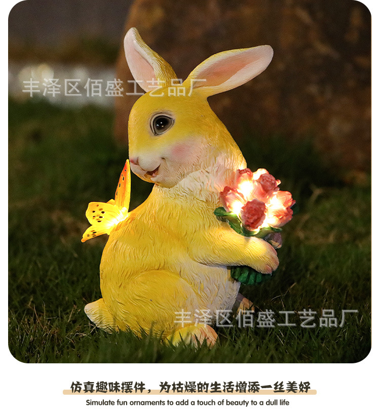 꽃 나비 토끼 장식품 야외 동물 태양 광 수지 공예품을 들고 국경 간 안뜰 정원 장식스토어 가기