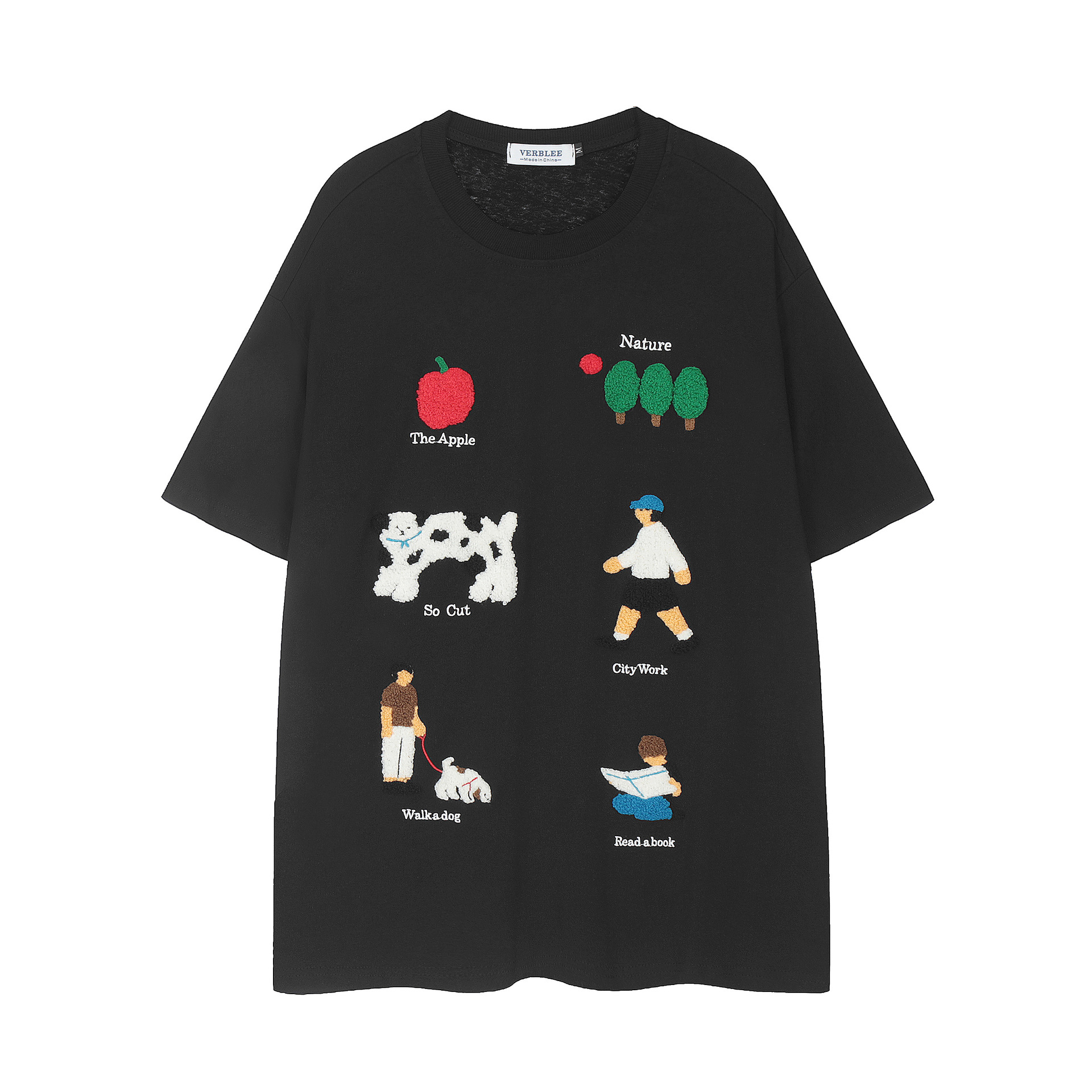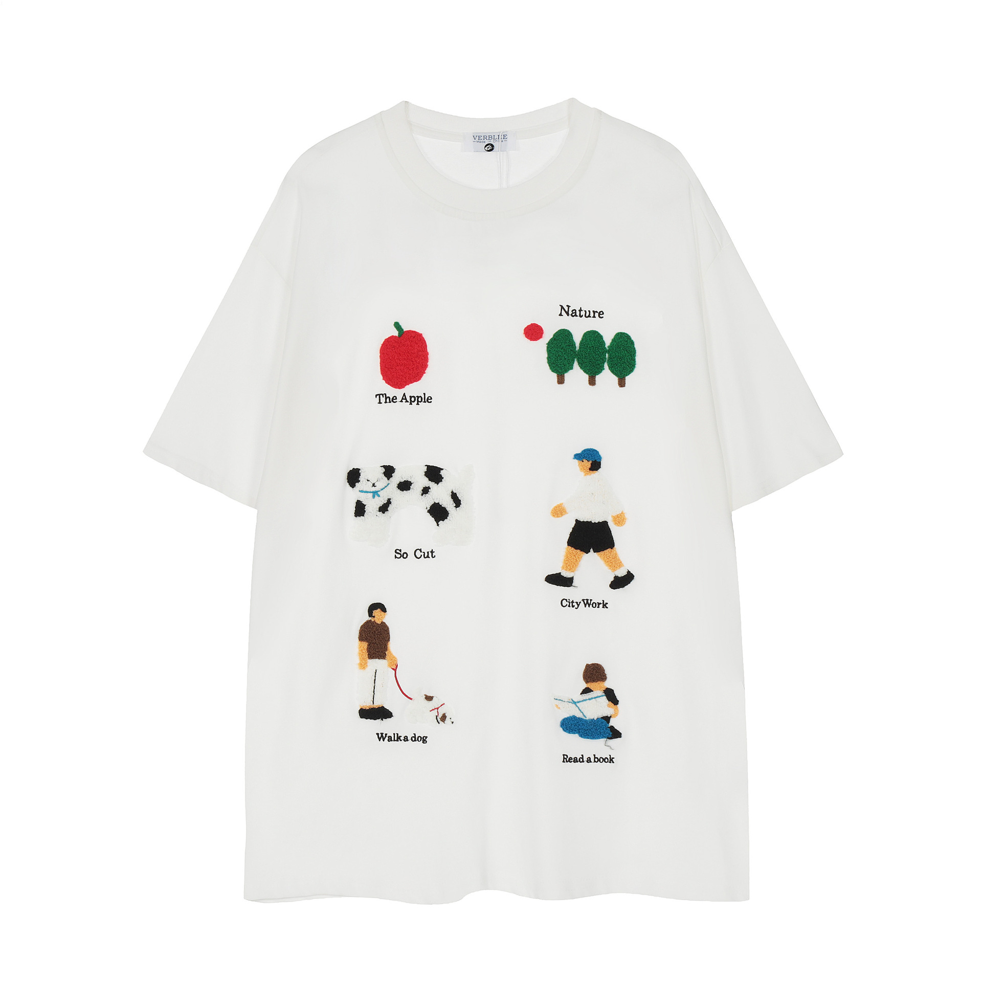 스트리트 트렌디 한 3 차원 수건 수 놓은 짧은 t 하프 슬리브 탑 남성과 여성의 느슨한 연인 미국 패션 브랜드 반팔 티셔츠스토어 가기