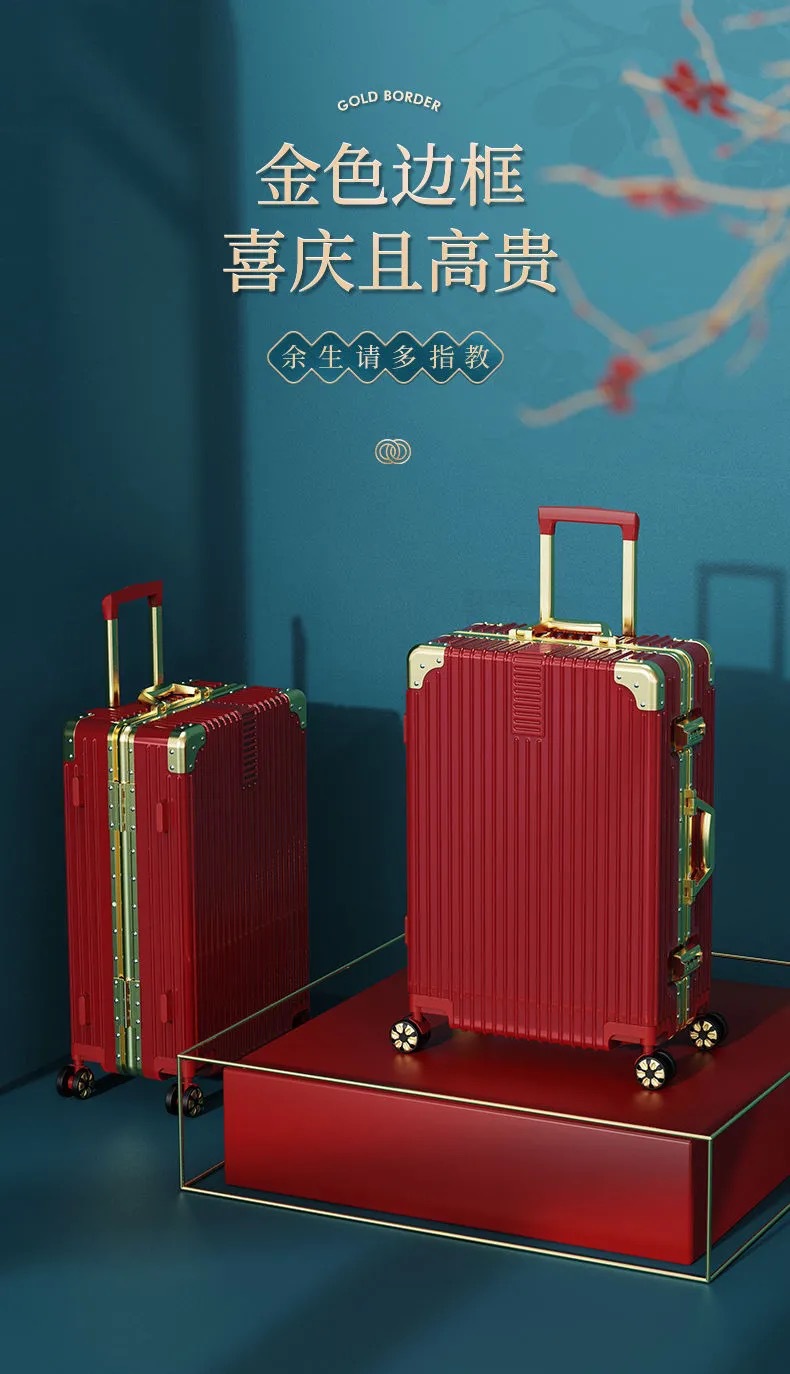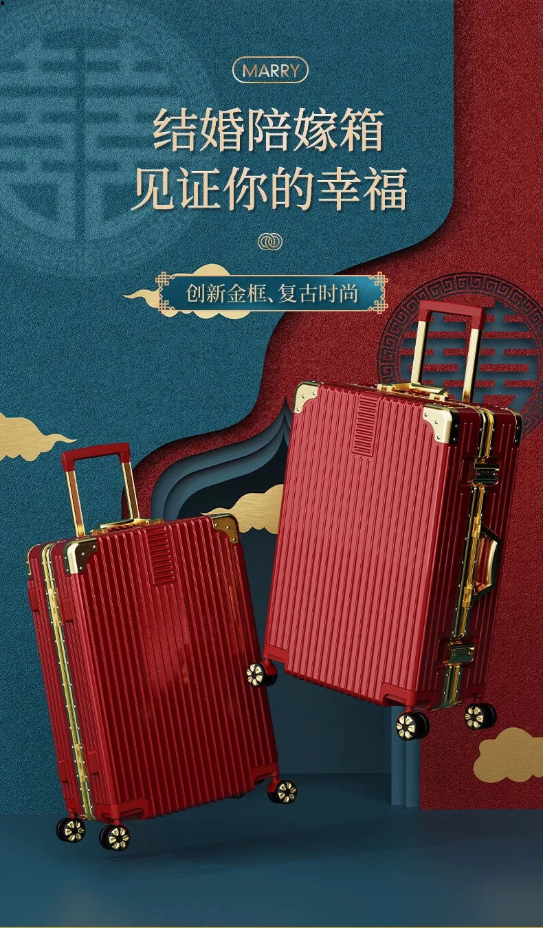 2025 새로운 빅 레드 여행 가방, 웨딩 가방, 신부를 위한 트롤리 가방, 결혼 가방, 여성용 가죽 가방스토어 가기