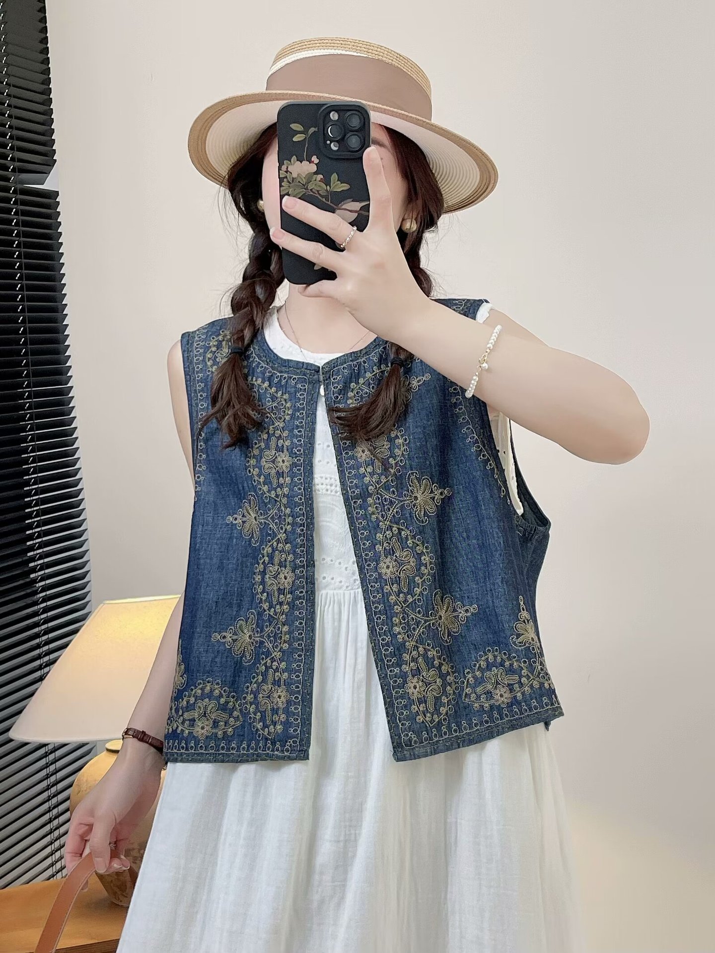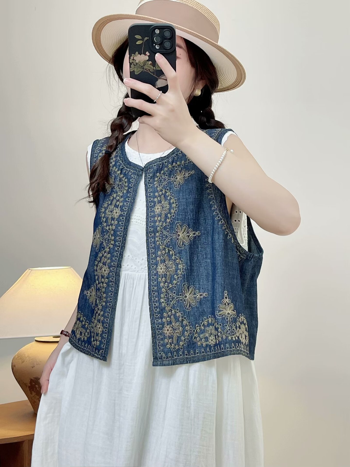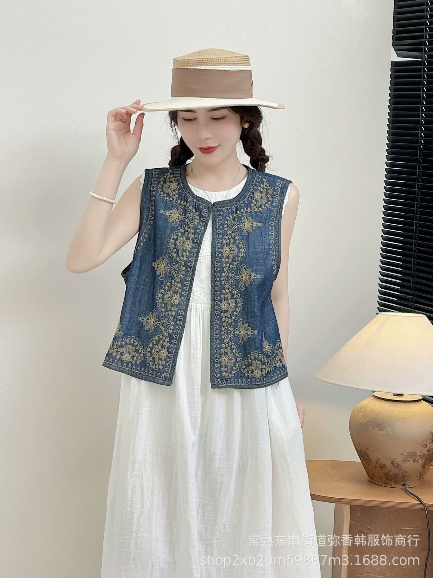 새로운 중국 스타일 국가 스타일 디자인 자수 데님 조끼 2024 여성 여름 새로운 우아한 올 매치 탑스토어 가기