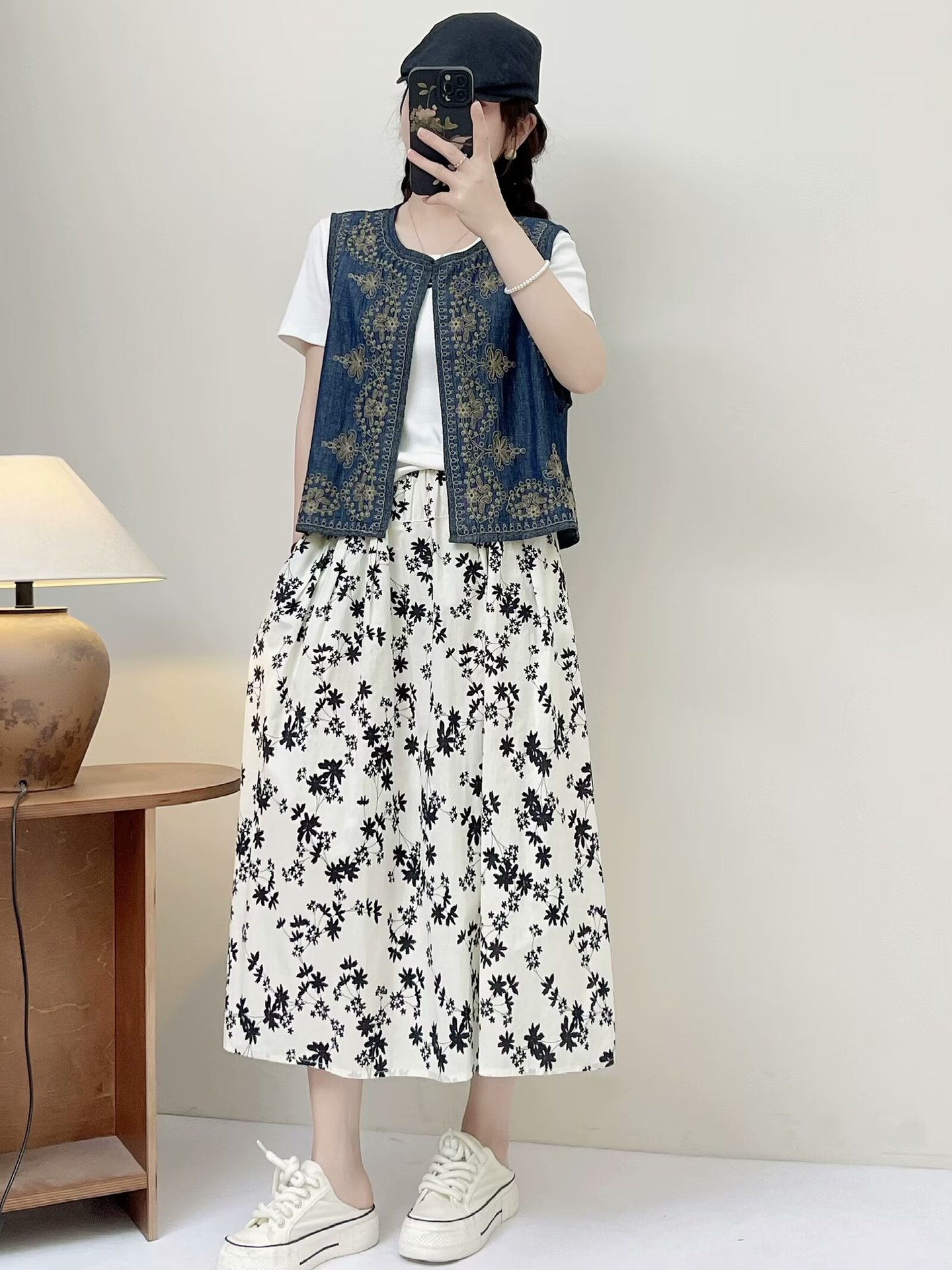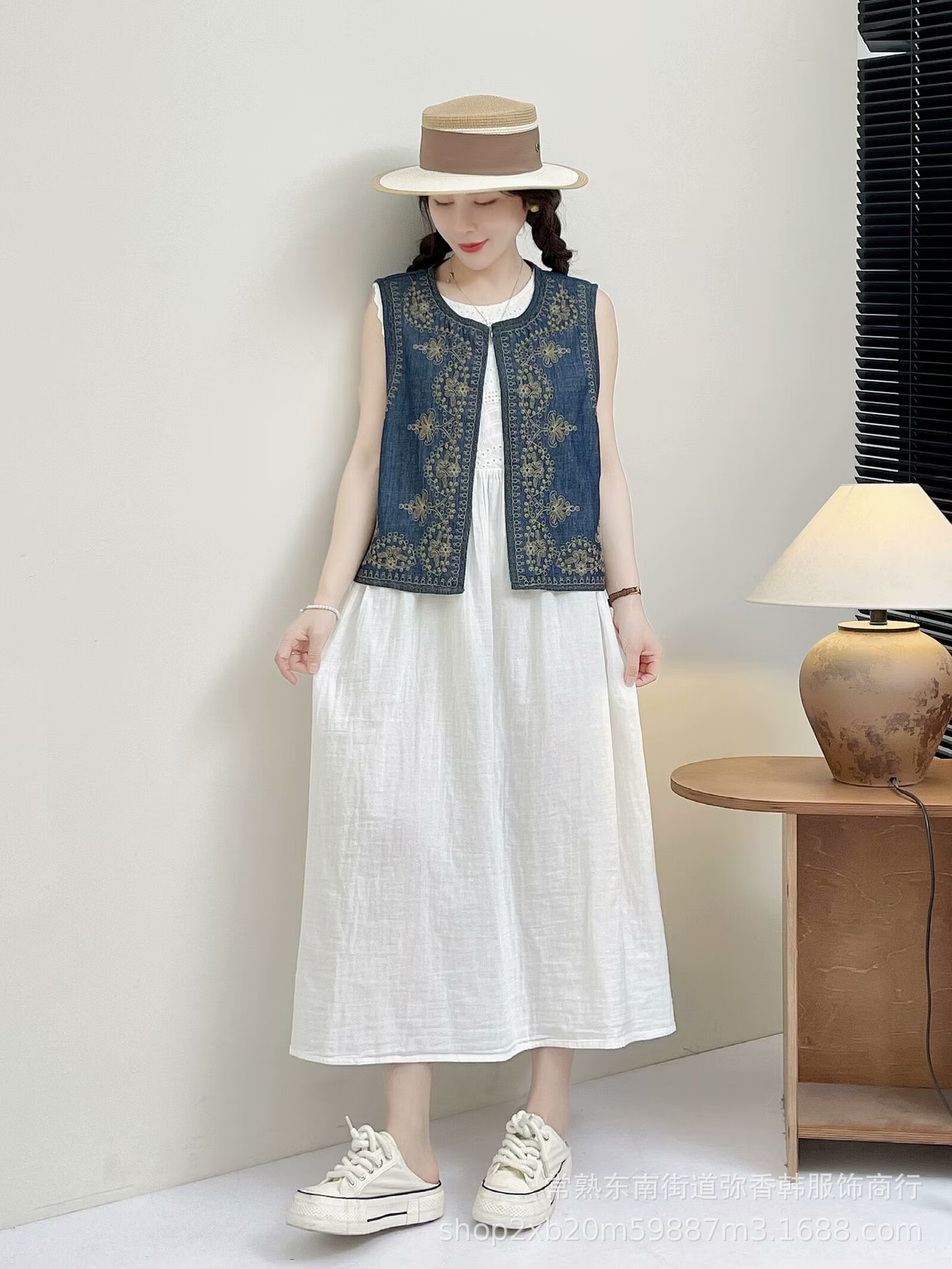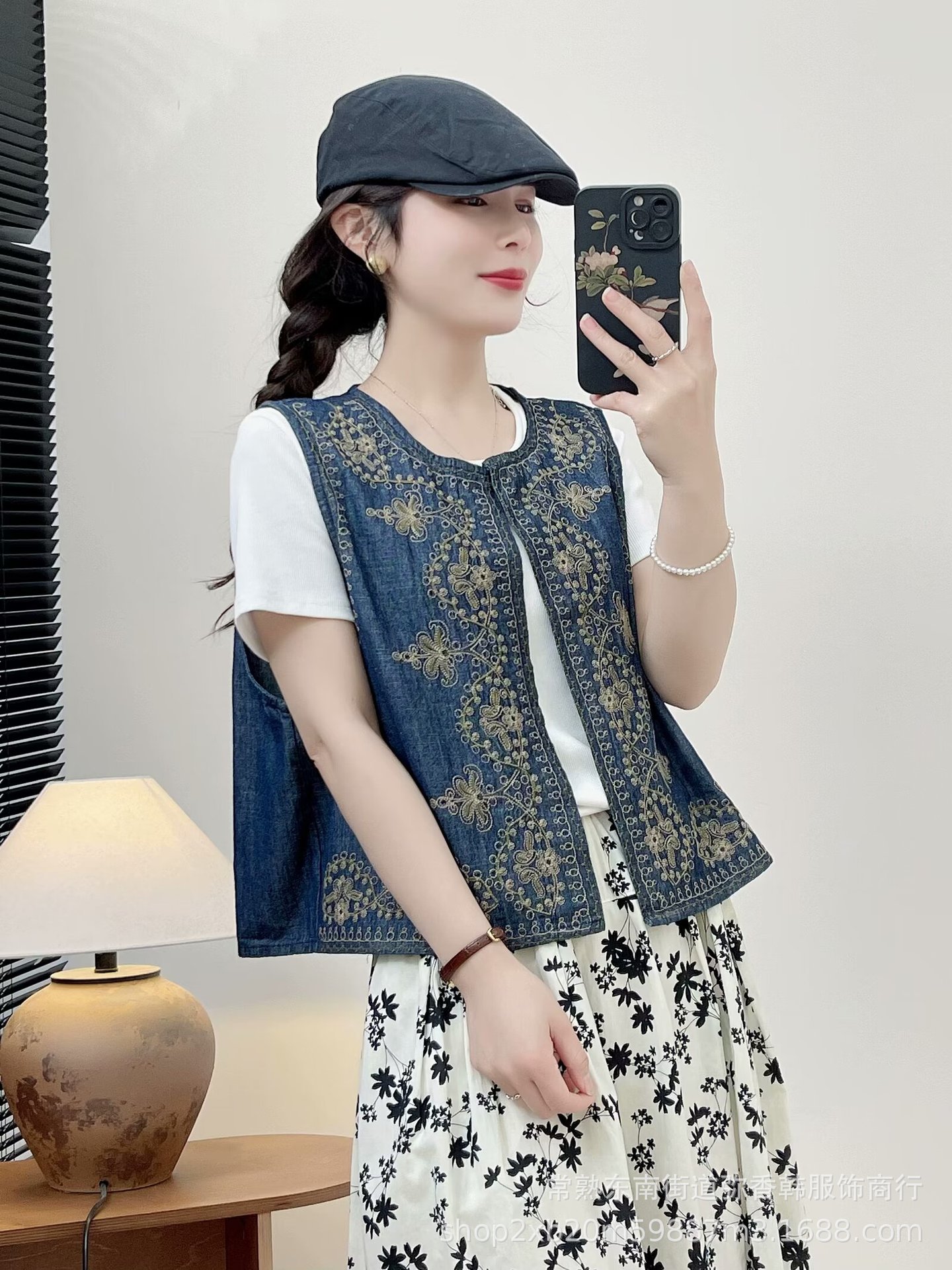 새로운 중국 스타일 국가 스타일 디자인 자수 데님 조끼 2024 여성 여름 새로운 우아한 올 매치 탑스토어 가기