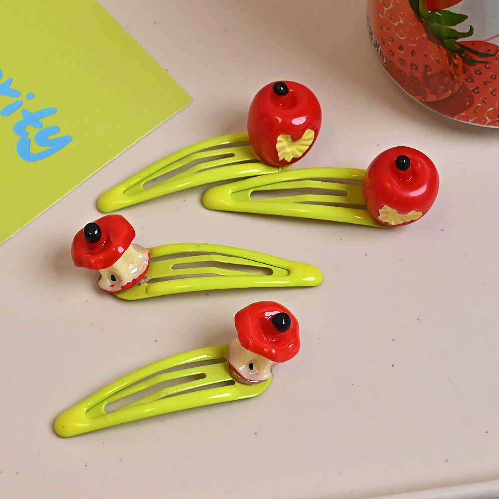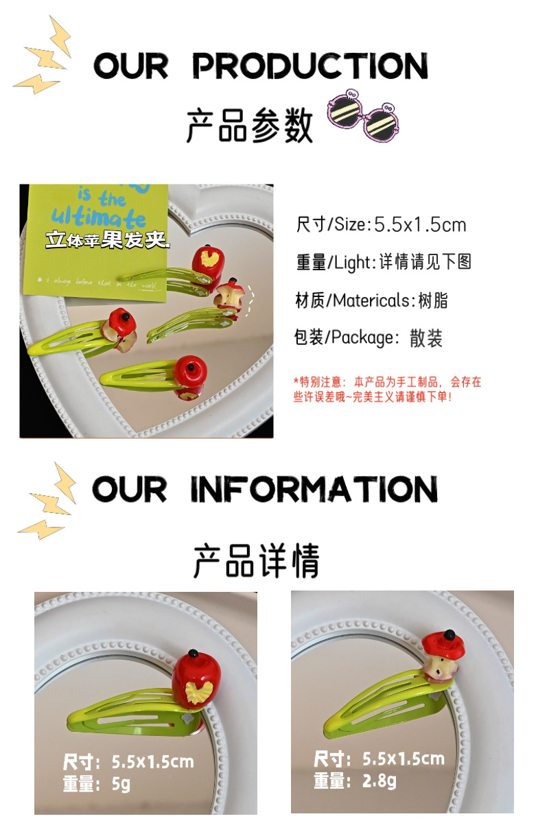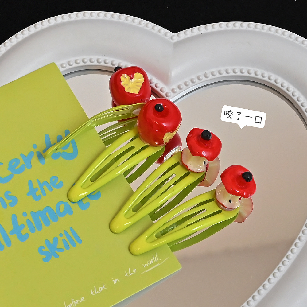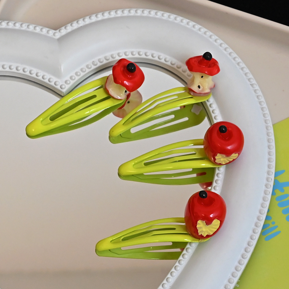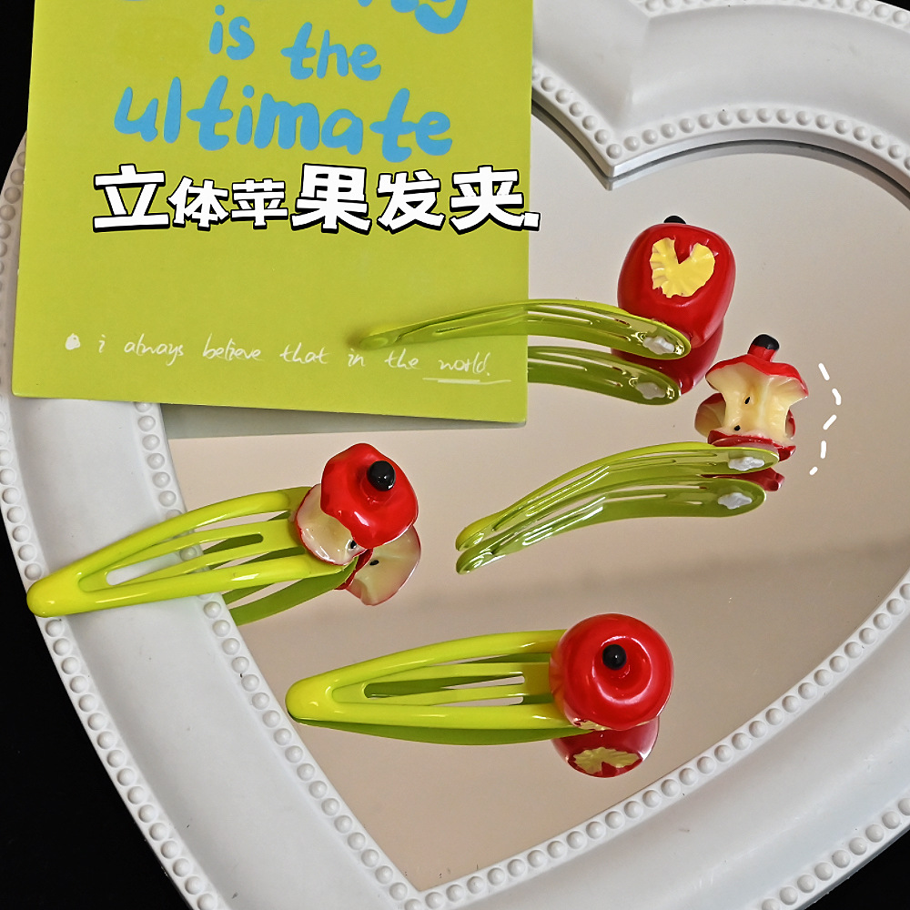 애플 재미있는 헤어핀 인 애플 깨진 헤어 뱅이 BB 클립 헤어 액세서리 대조 컬러 일본 달콤한 쿨 스타일 사이드 클립