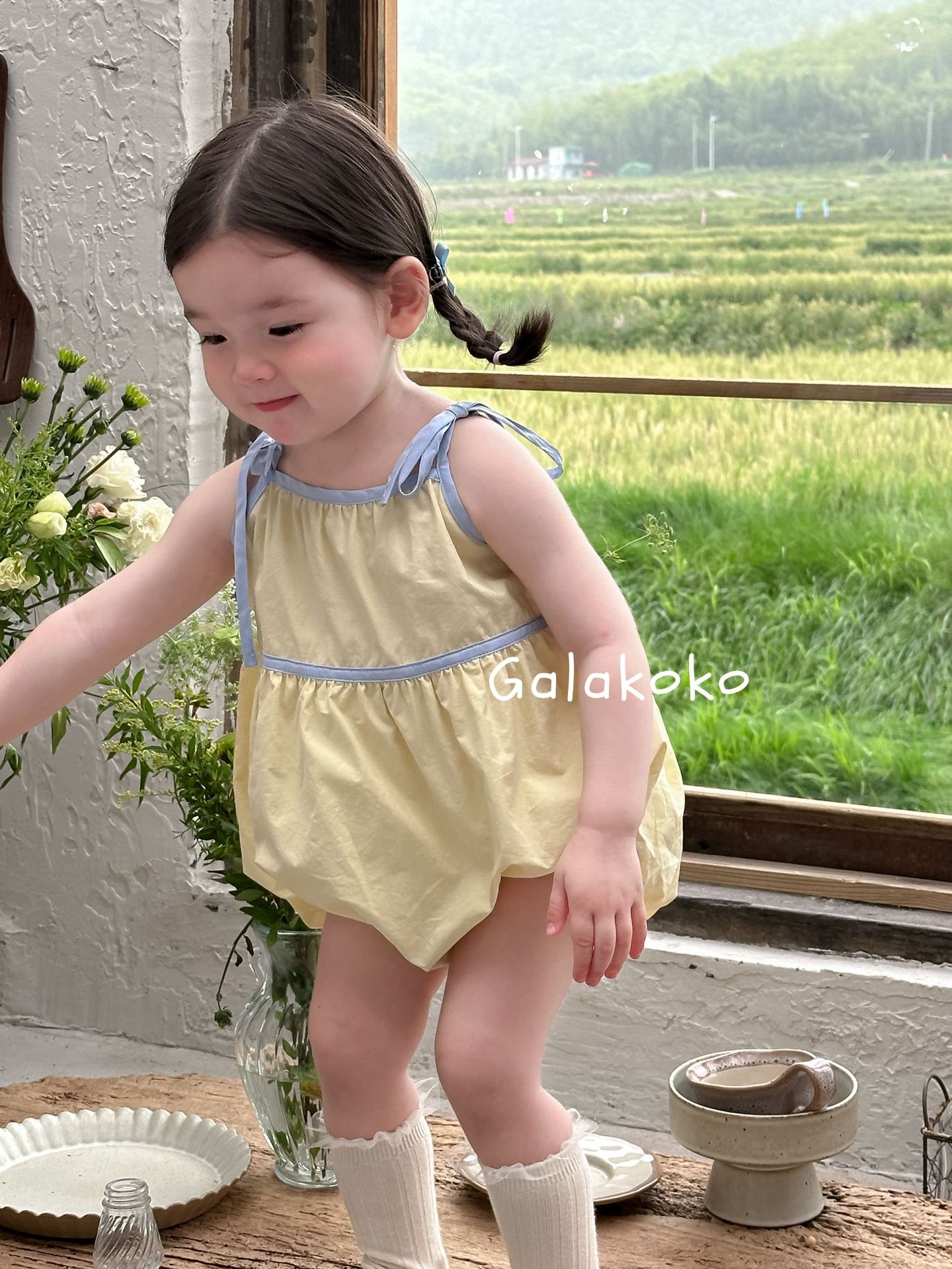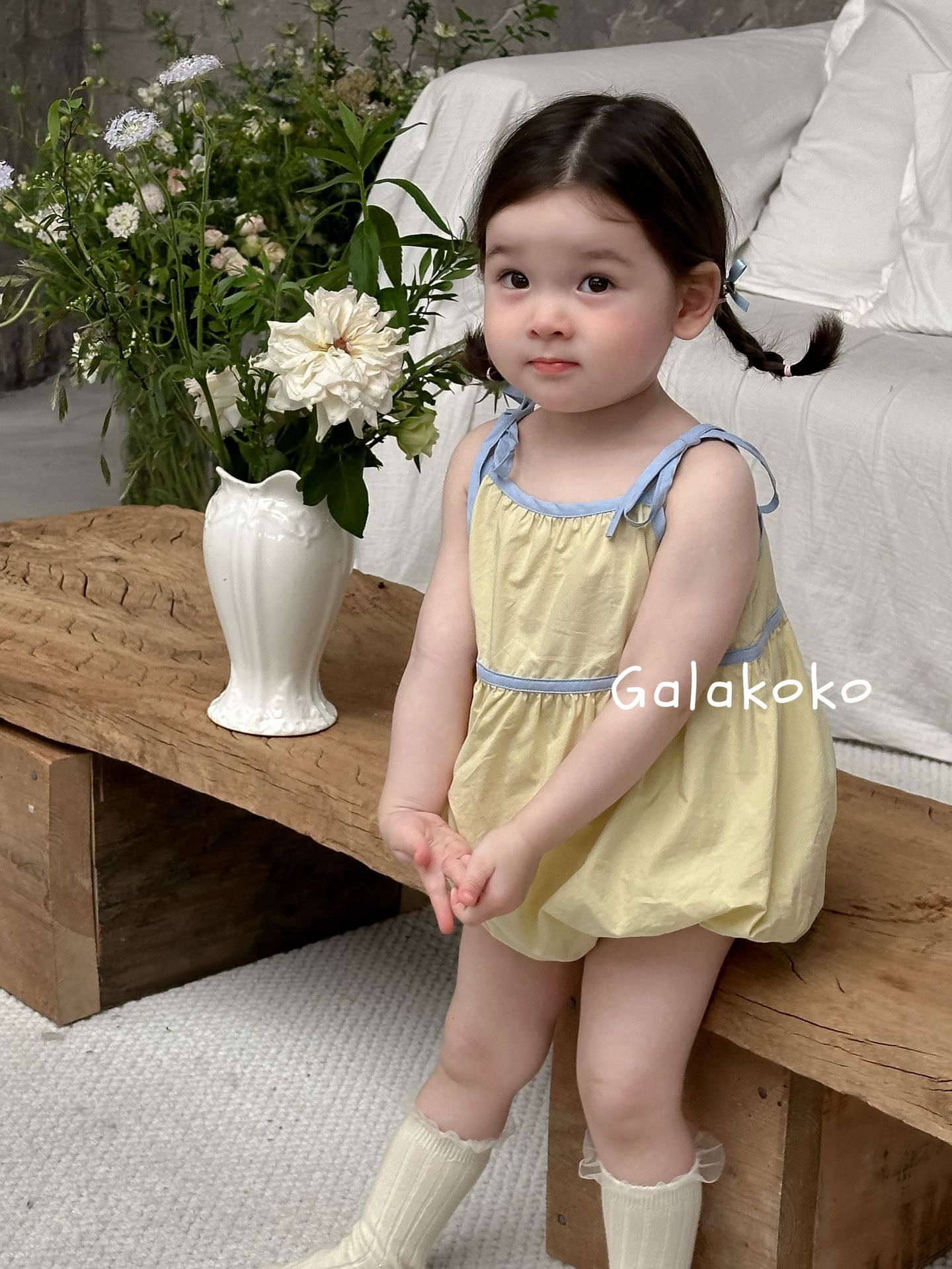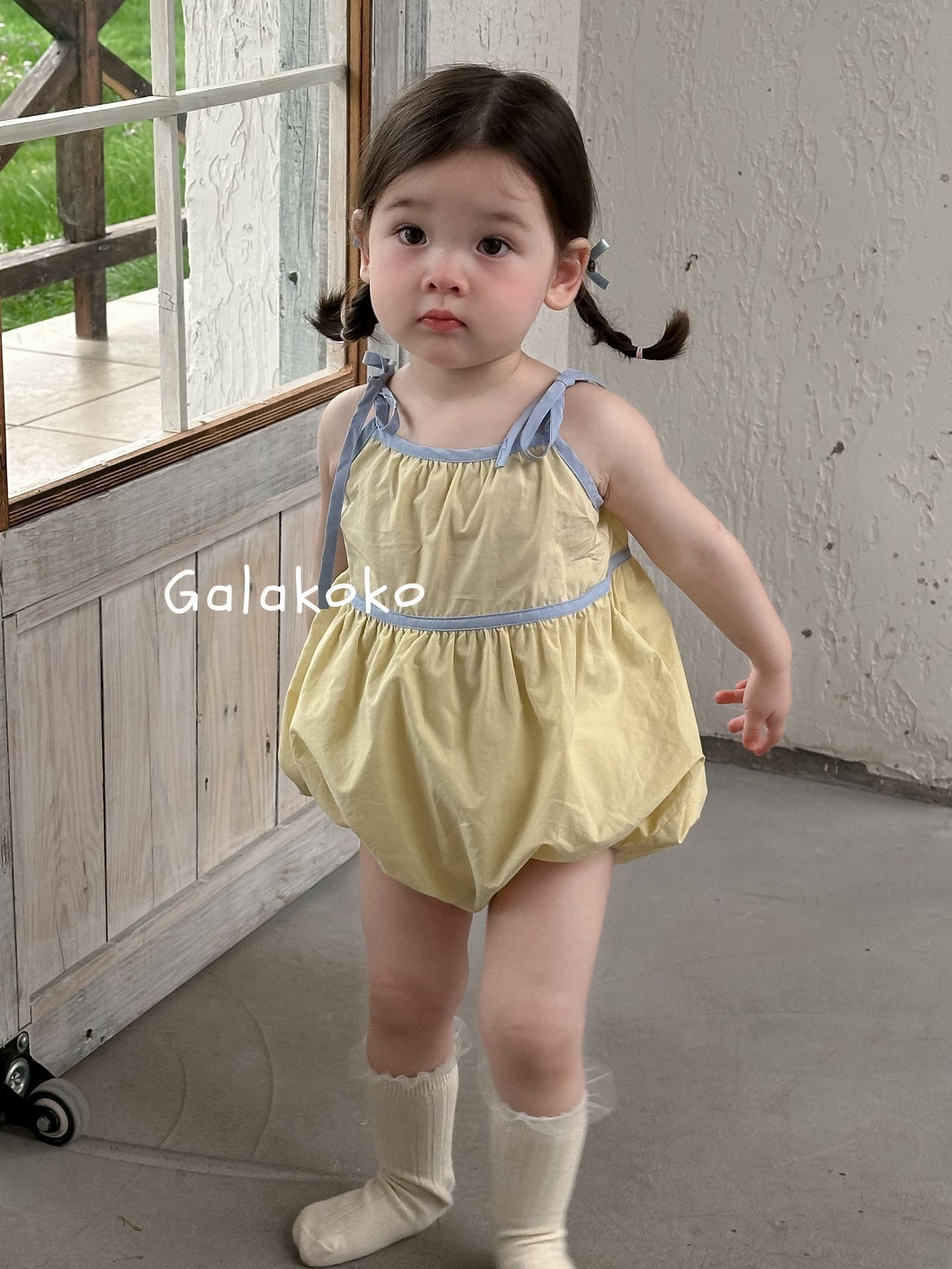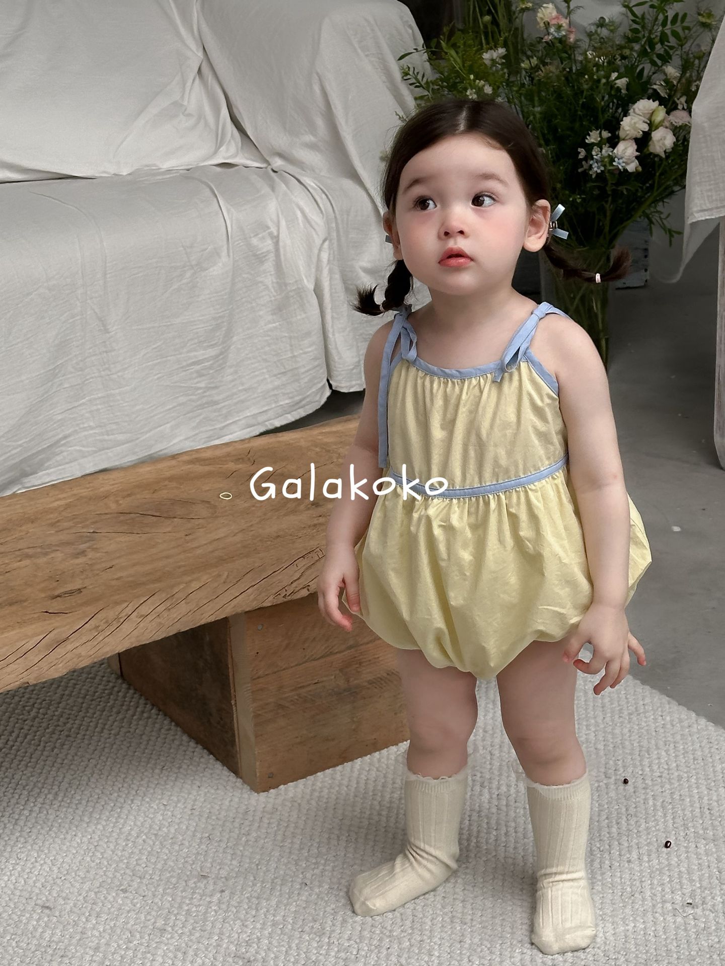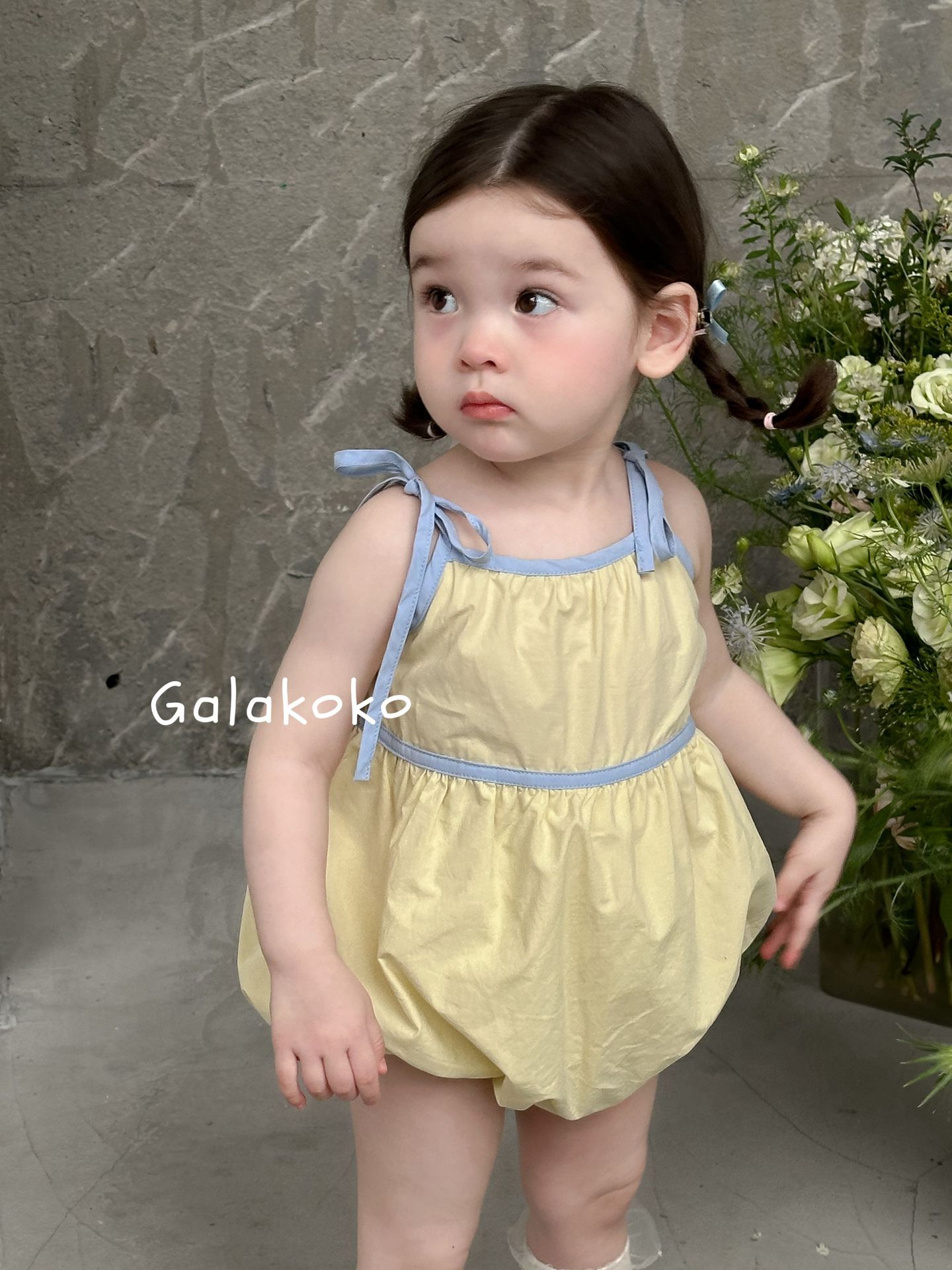 갈라코코 여름 아기 마카롱 컬러 끈달린 리본 바디수트 귀여운 바디수트 여아용