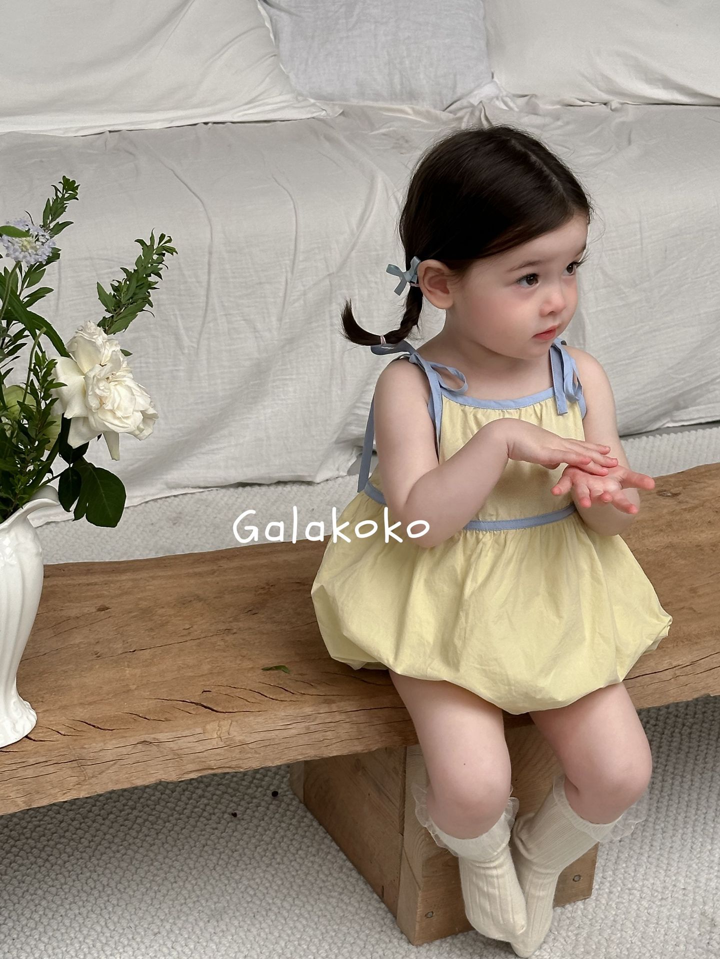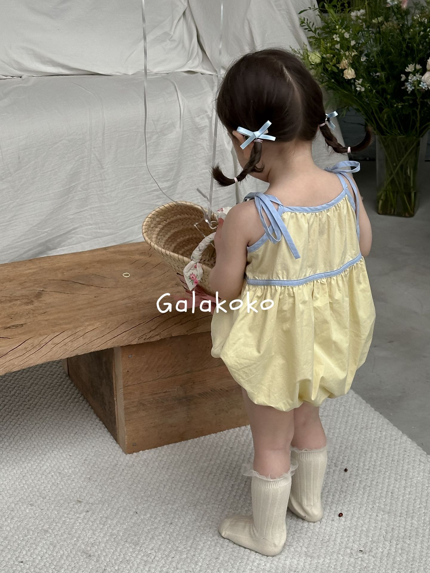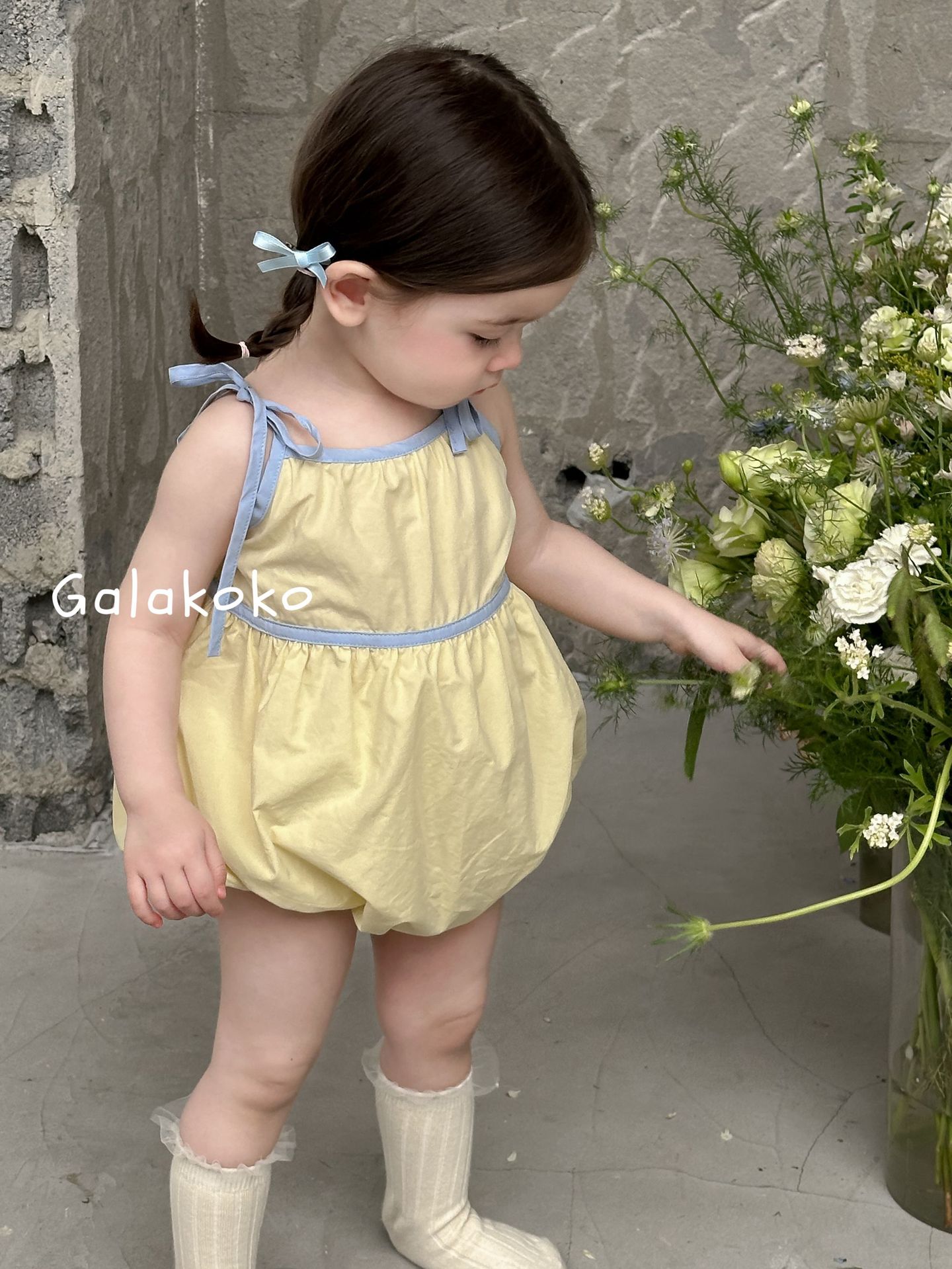 갈라코코 여름 아기 마카롱 컬러 끈달린 리본 바디수트 귀여운 바디수트 여아용스토어 가기