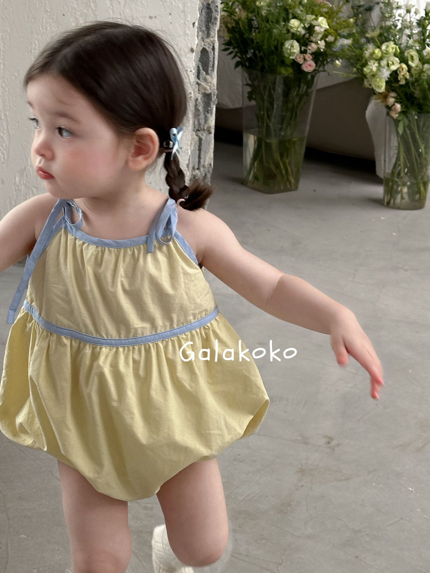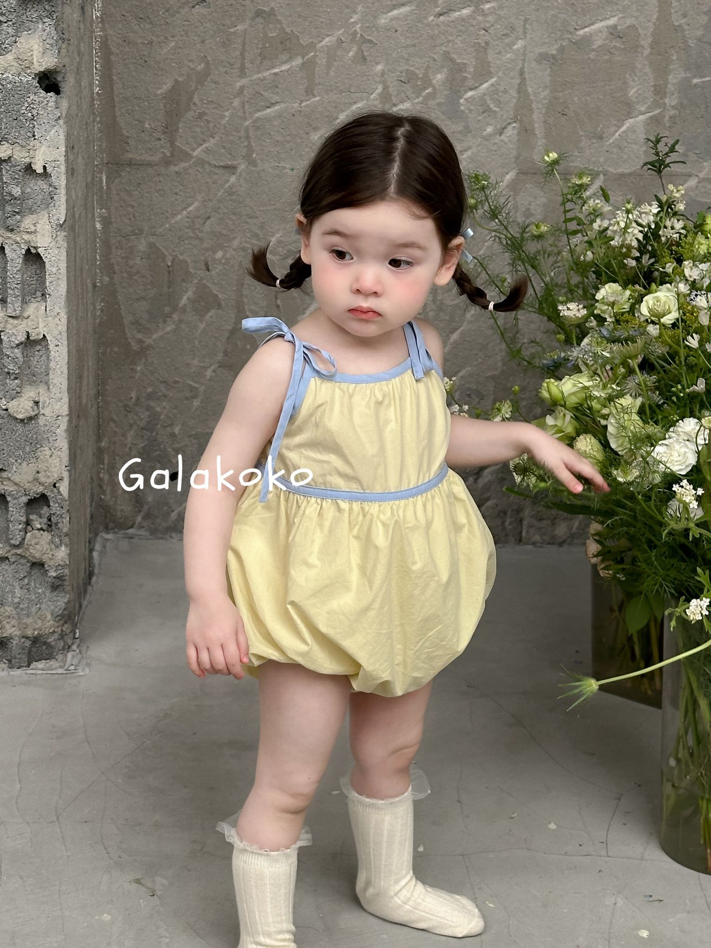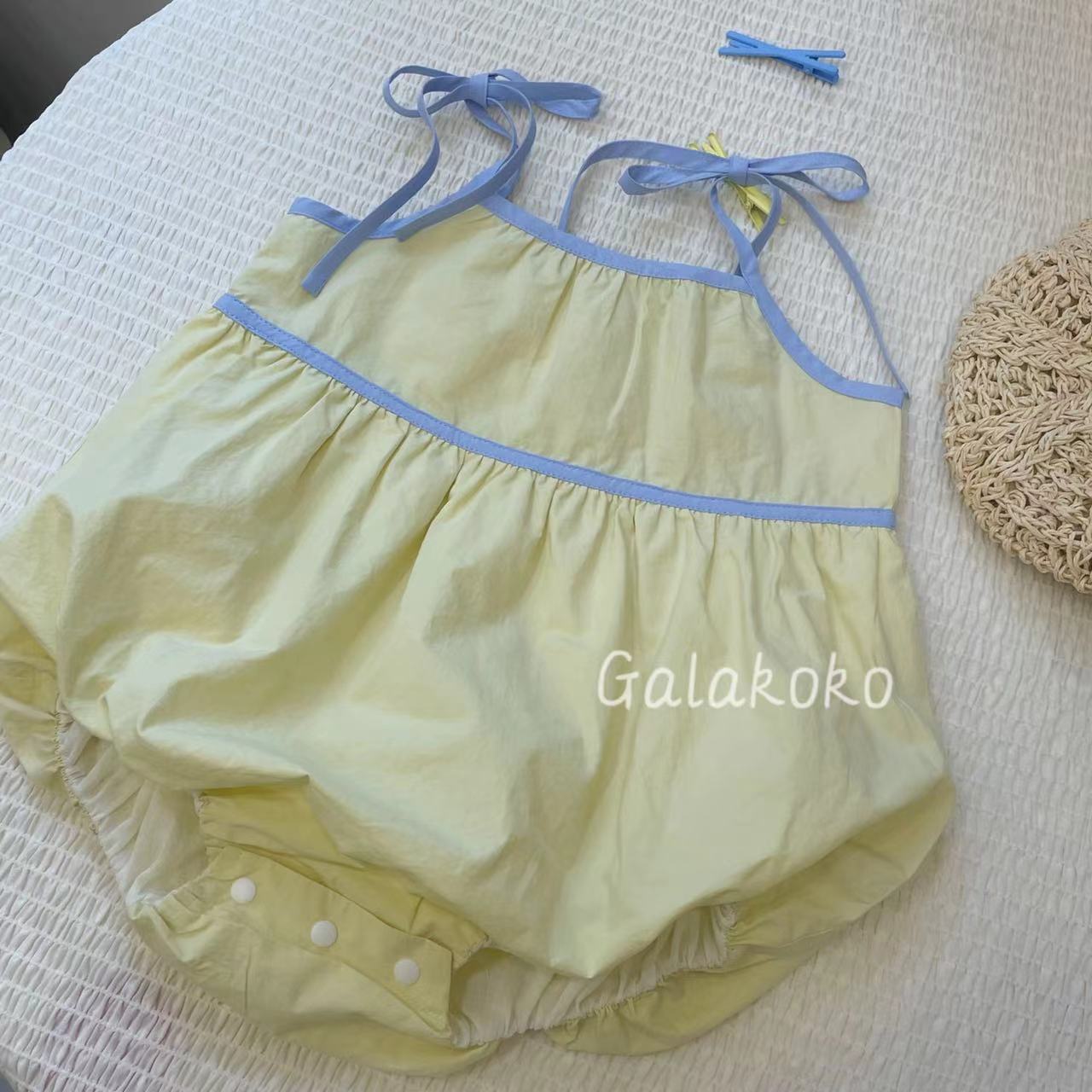 갈라코코 여름 아기 마카롱 컬러 끈달린 리본 바디수트 귀여운 바디수트 여아용스토어 가기