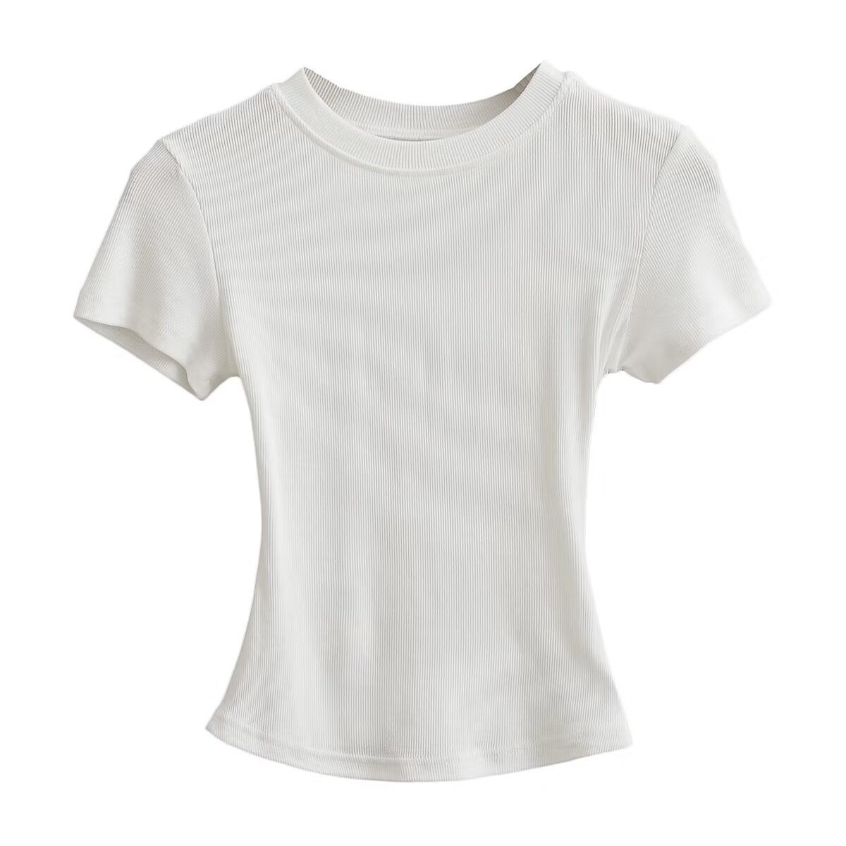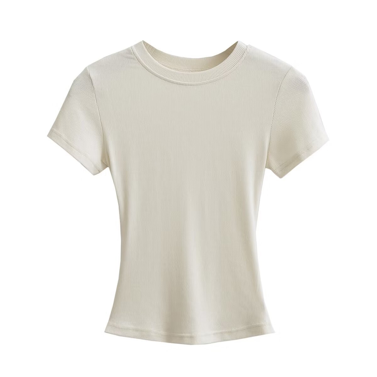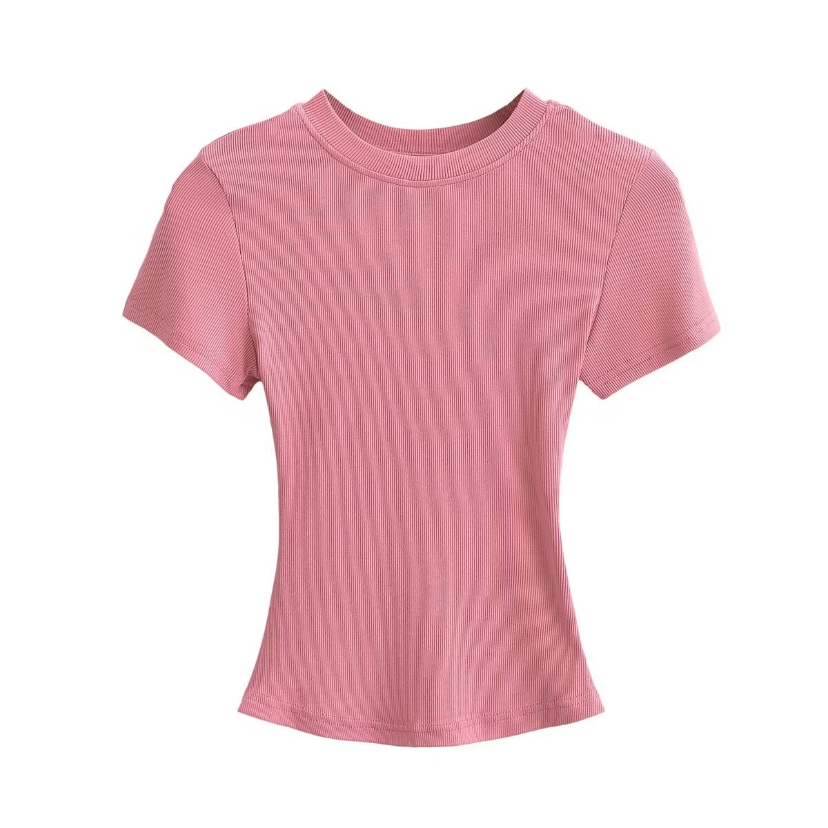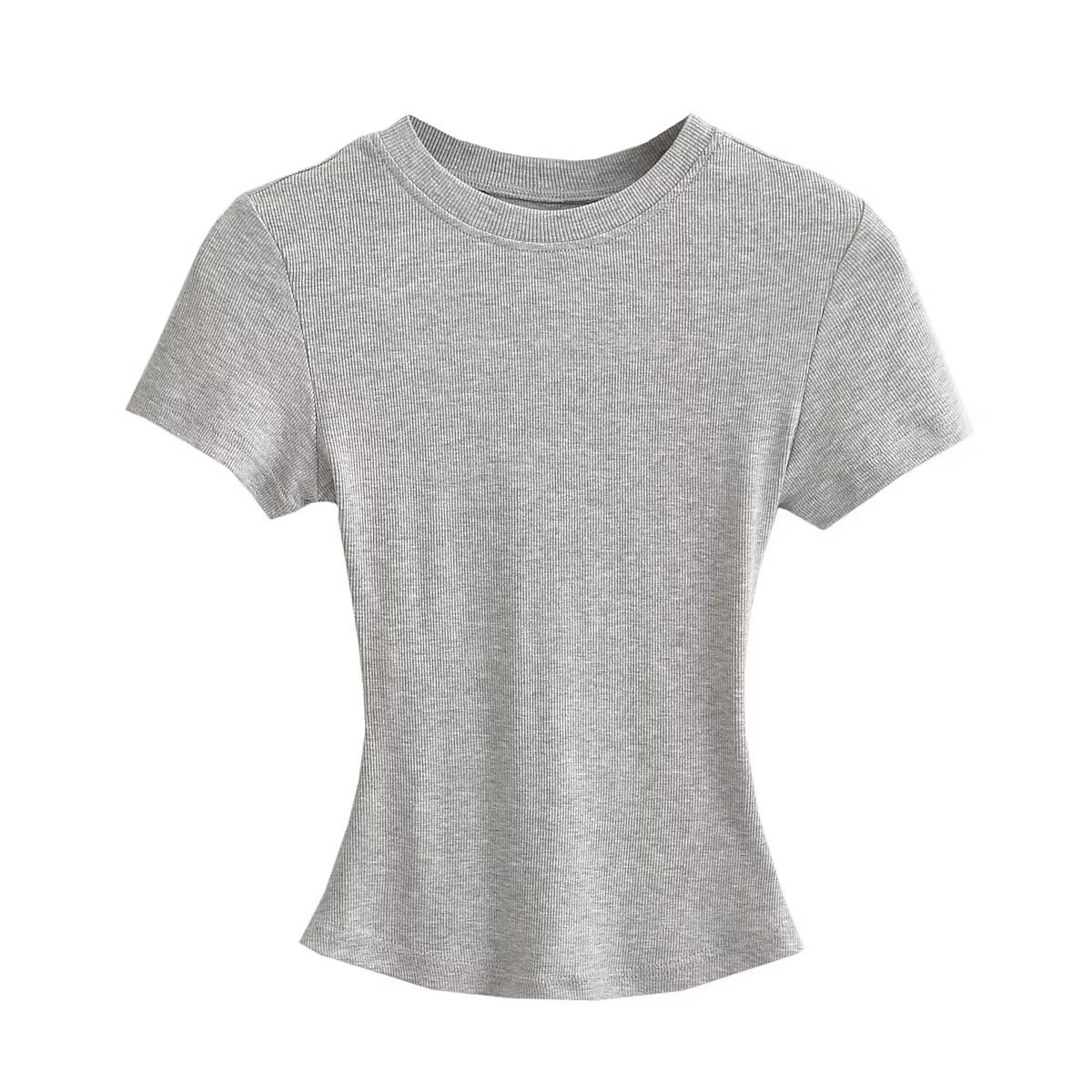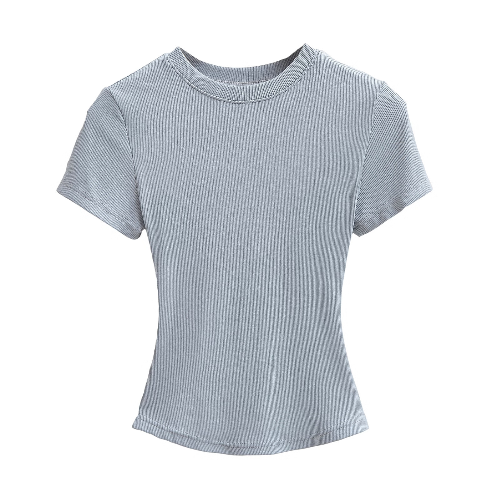 유럽과 미국의 카다시안 스타일 섹시한 작은 둥근 목 반팔 티셔츠 여성의 2024 여름 스킴 단색 기본 스레드 탑스토어 가기
