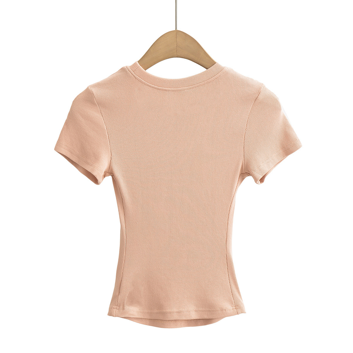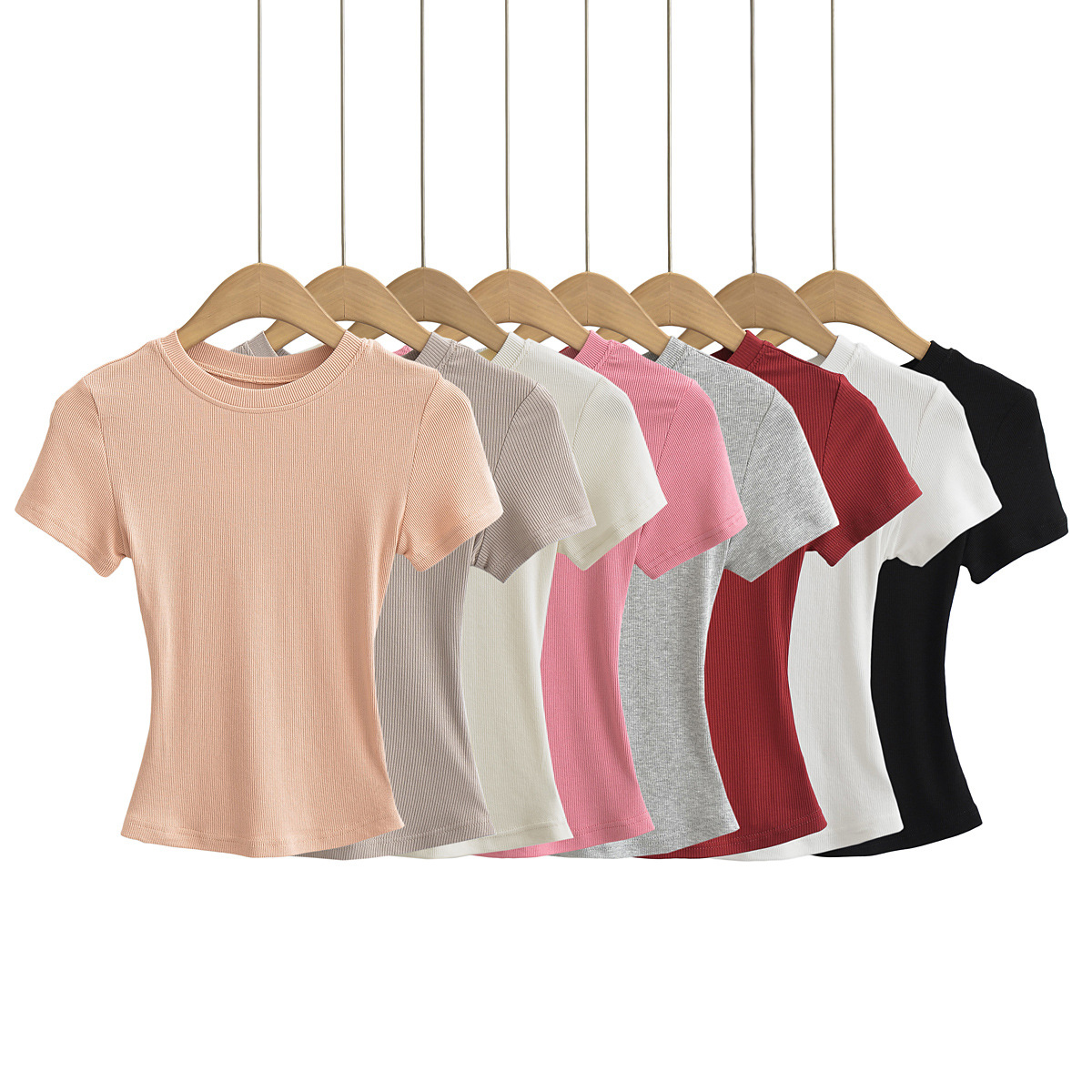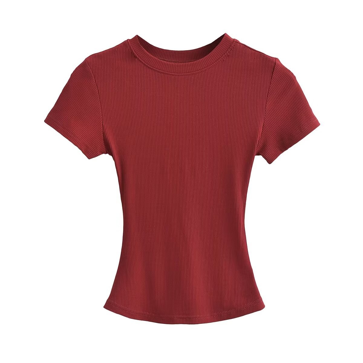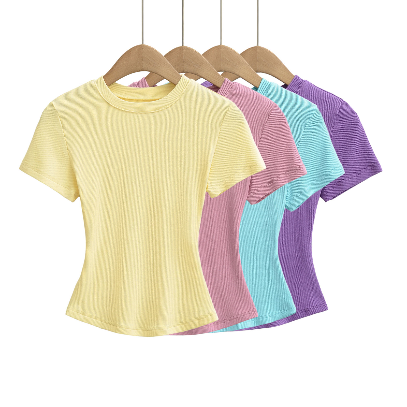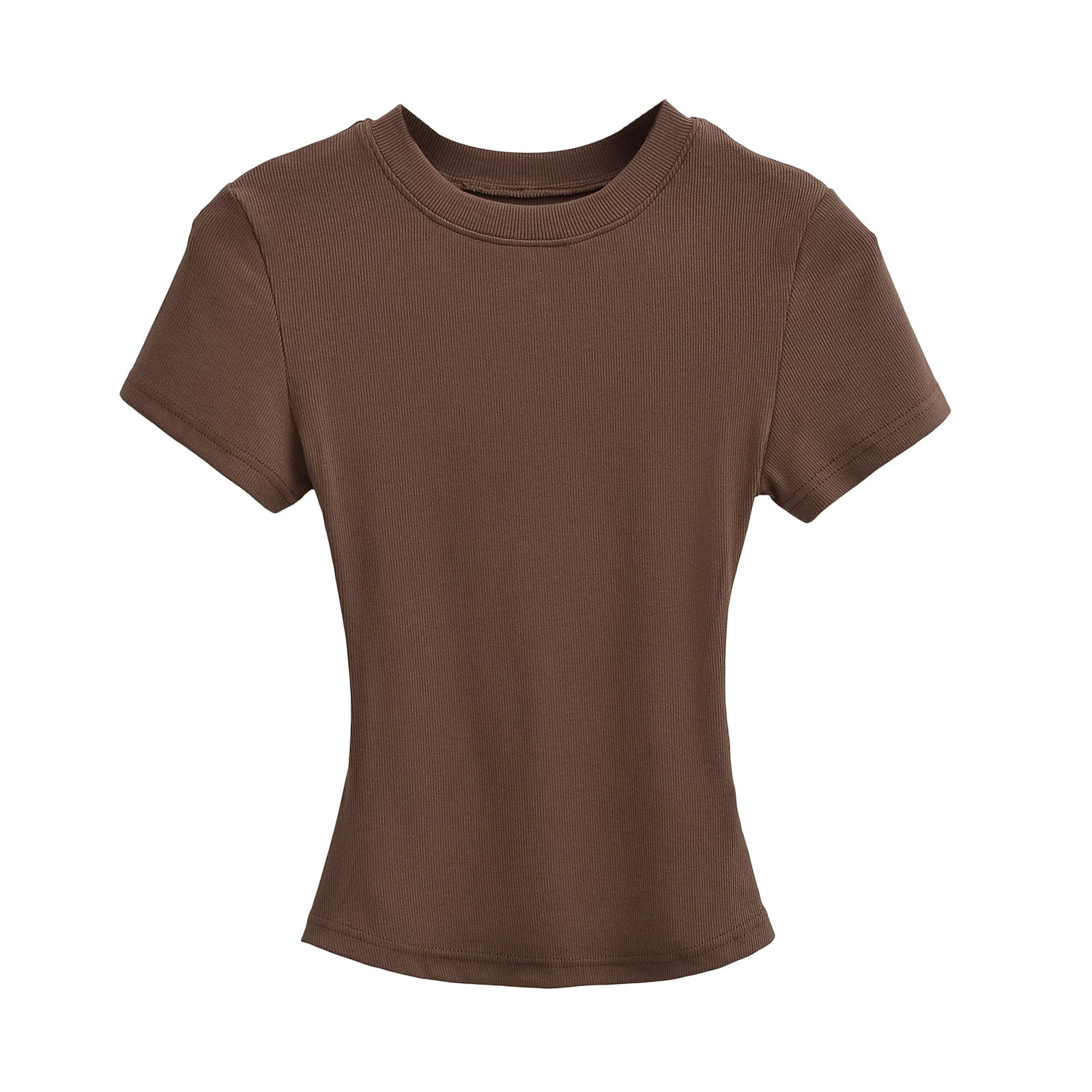 유럽과 미국의 카다시안 스타일 섹시한 작은 둥근 목 반팔 티셔츠 여성의 2024 여름 스킴 단색 기본 스레드 탑스토어 가기