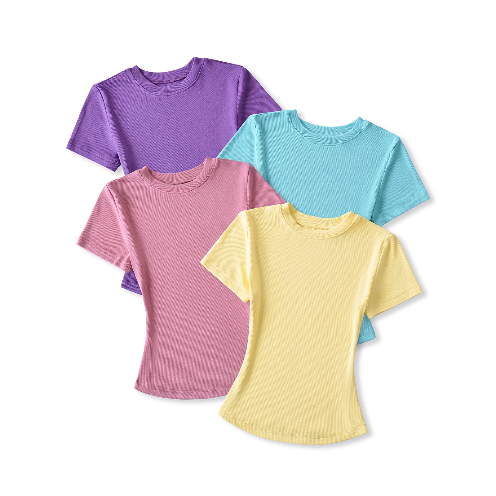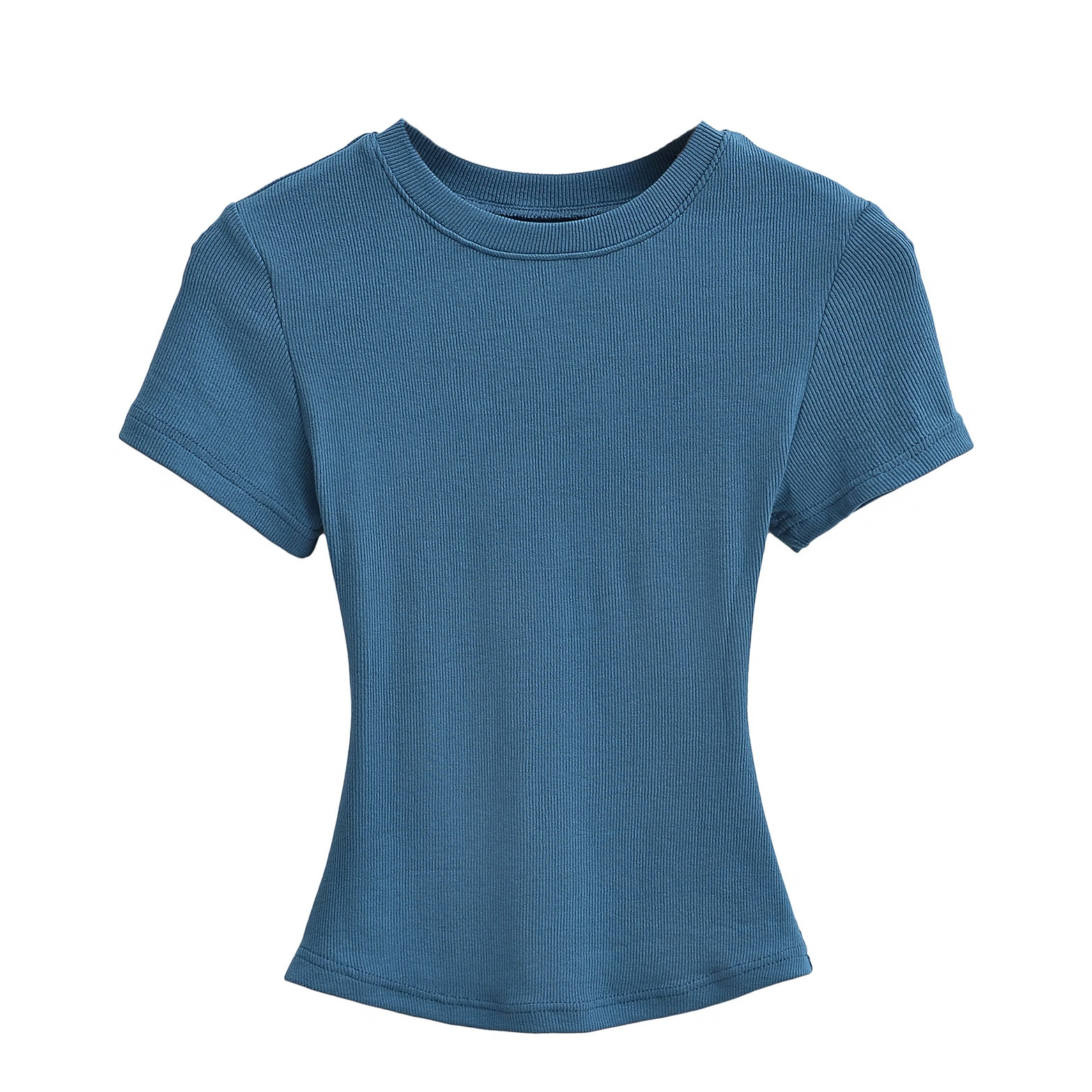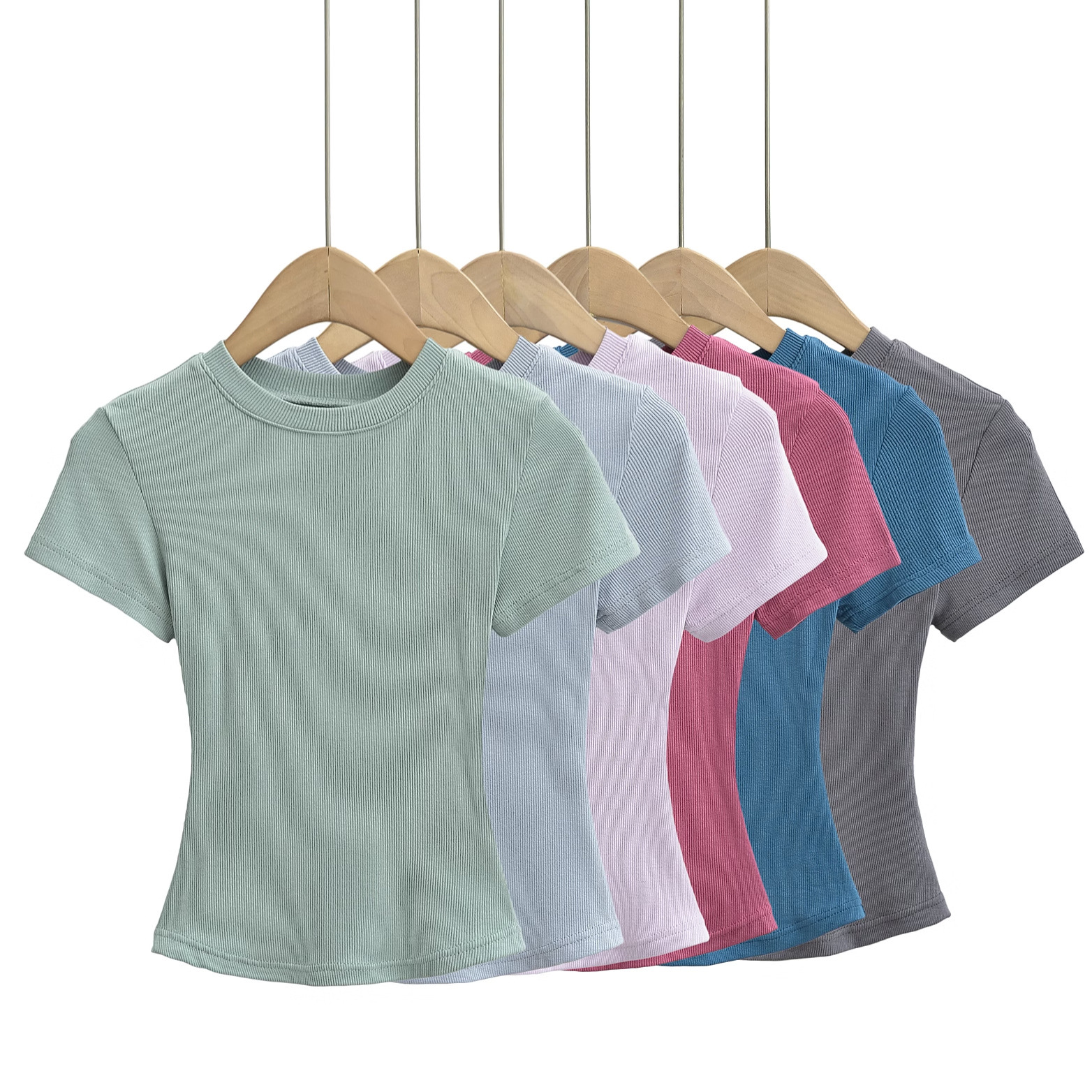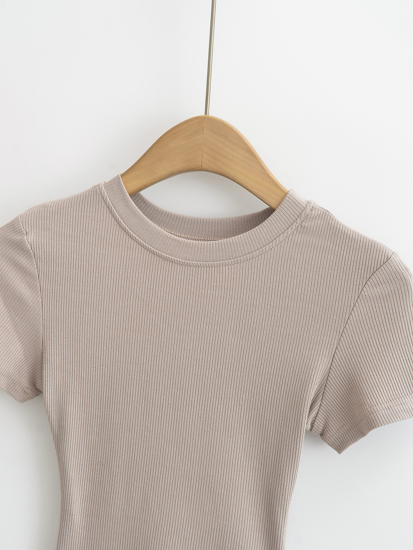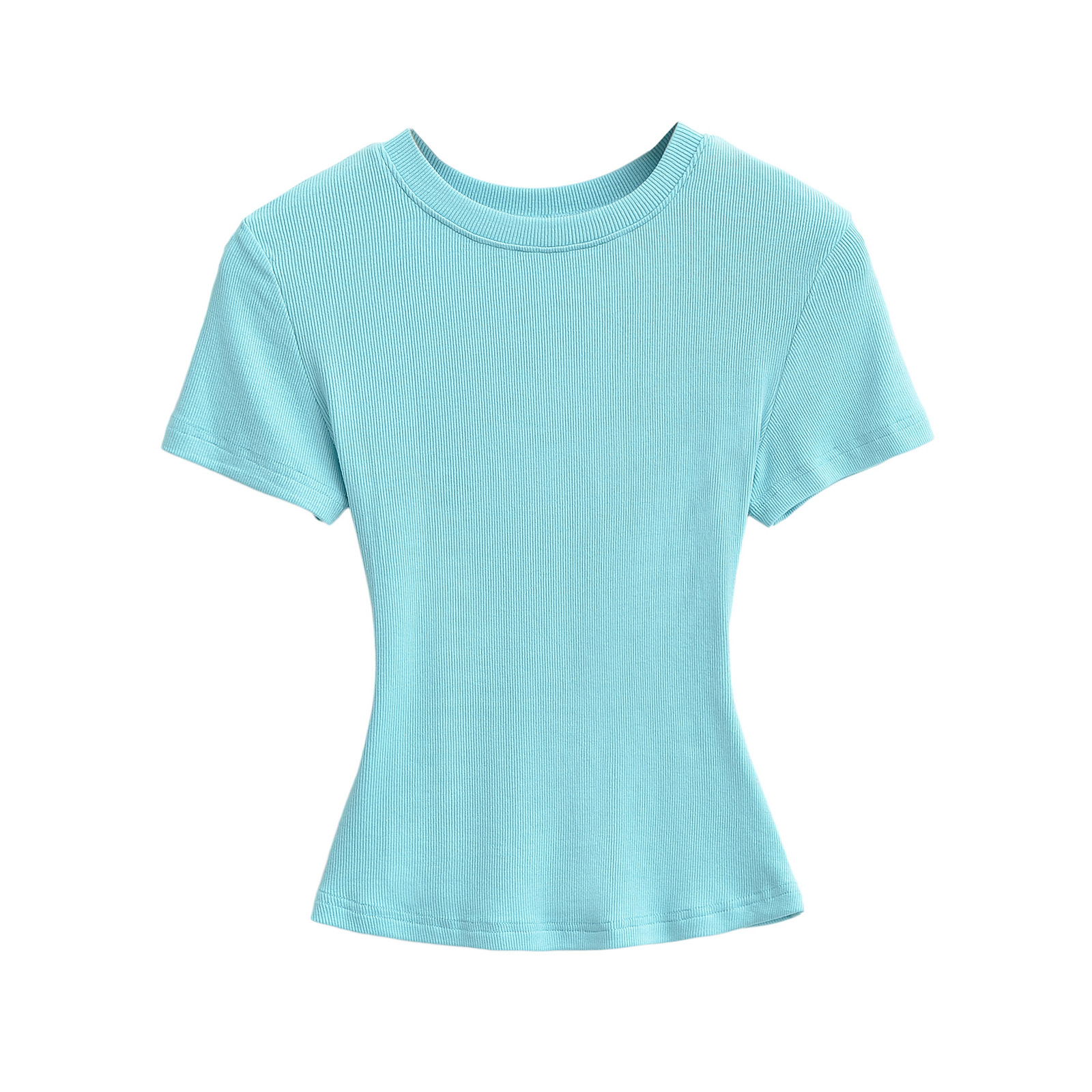 유럽과 미국의 카다시안 스타일 섹시한 작은 둥근 목 반팔 티셔츠 여성의 2024 여름 스킴 단색 기본 스레드 탑스토어 가기