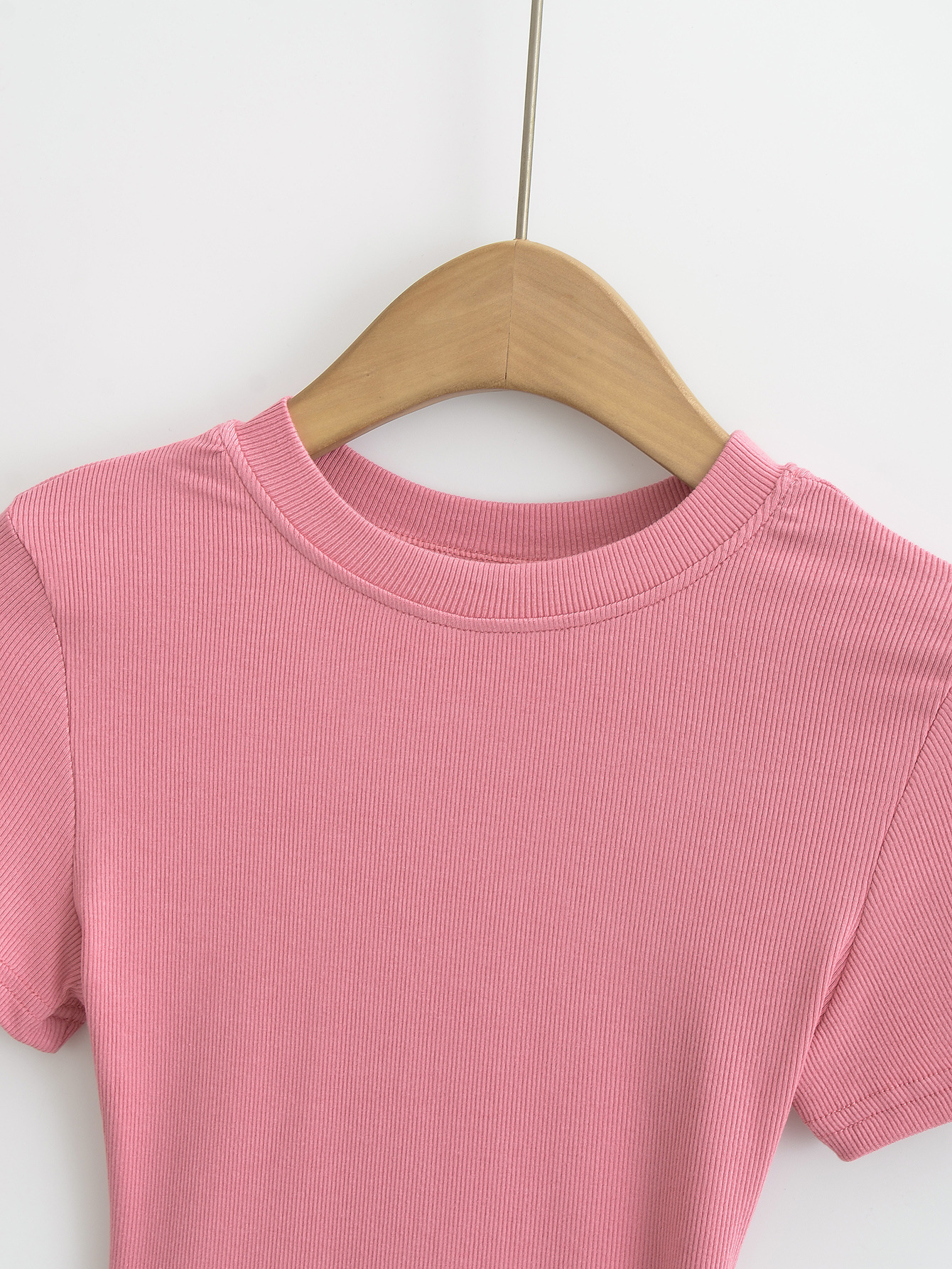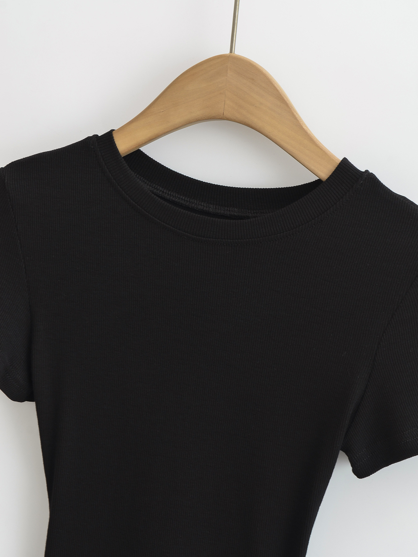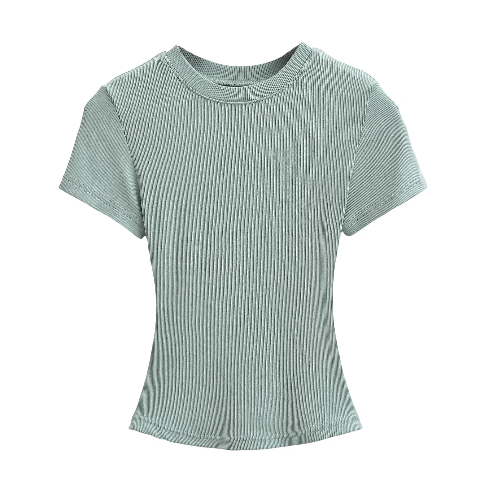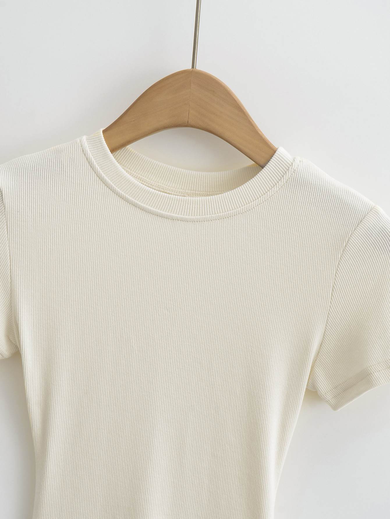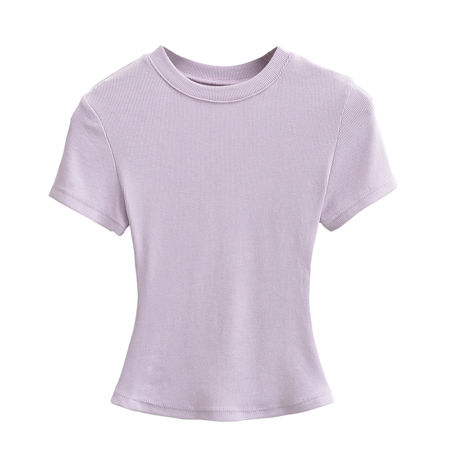유럽과 미국의 카다시안 스타일 섹시한 작은 둥근 목 반팔 티셔츠 여성의 2024 여름 스킴 단색 기본 스레드 탑
